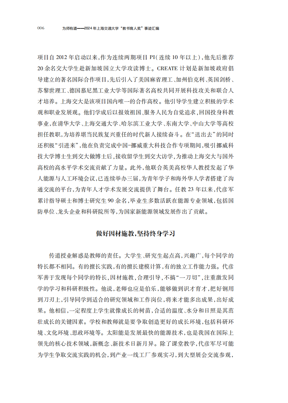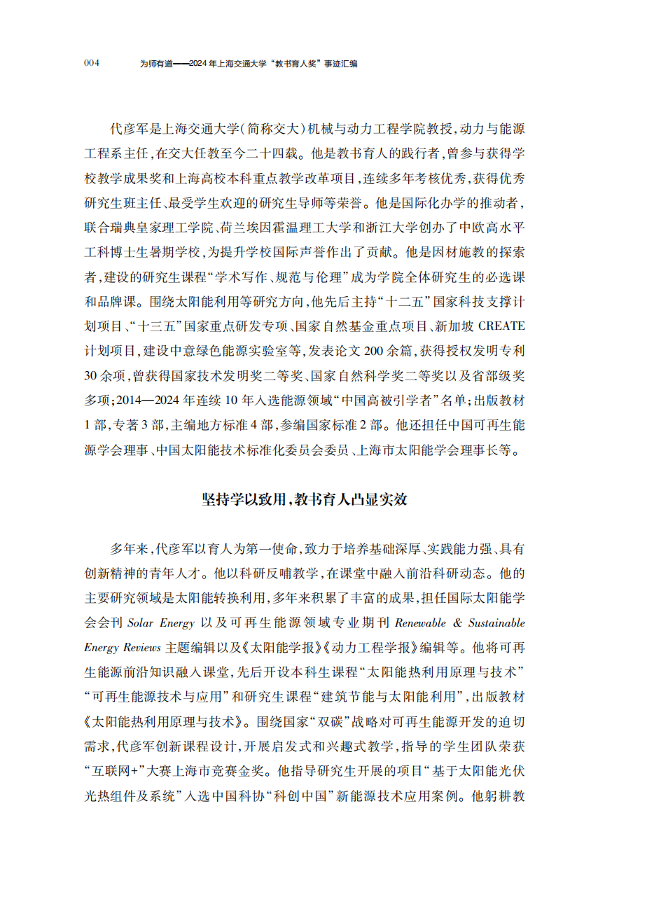 为师有道——2024年上海交通大学“教书育人奖”事迹汇编