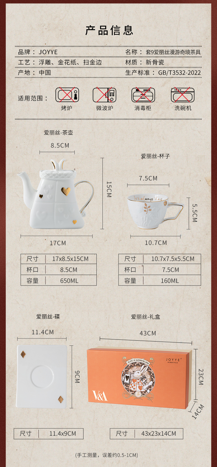 JOYYE爱丽丝-网红茶具套装家用客厅女办公室杯壶陶瓷高档轻奢礼盒