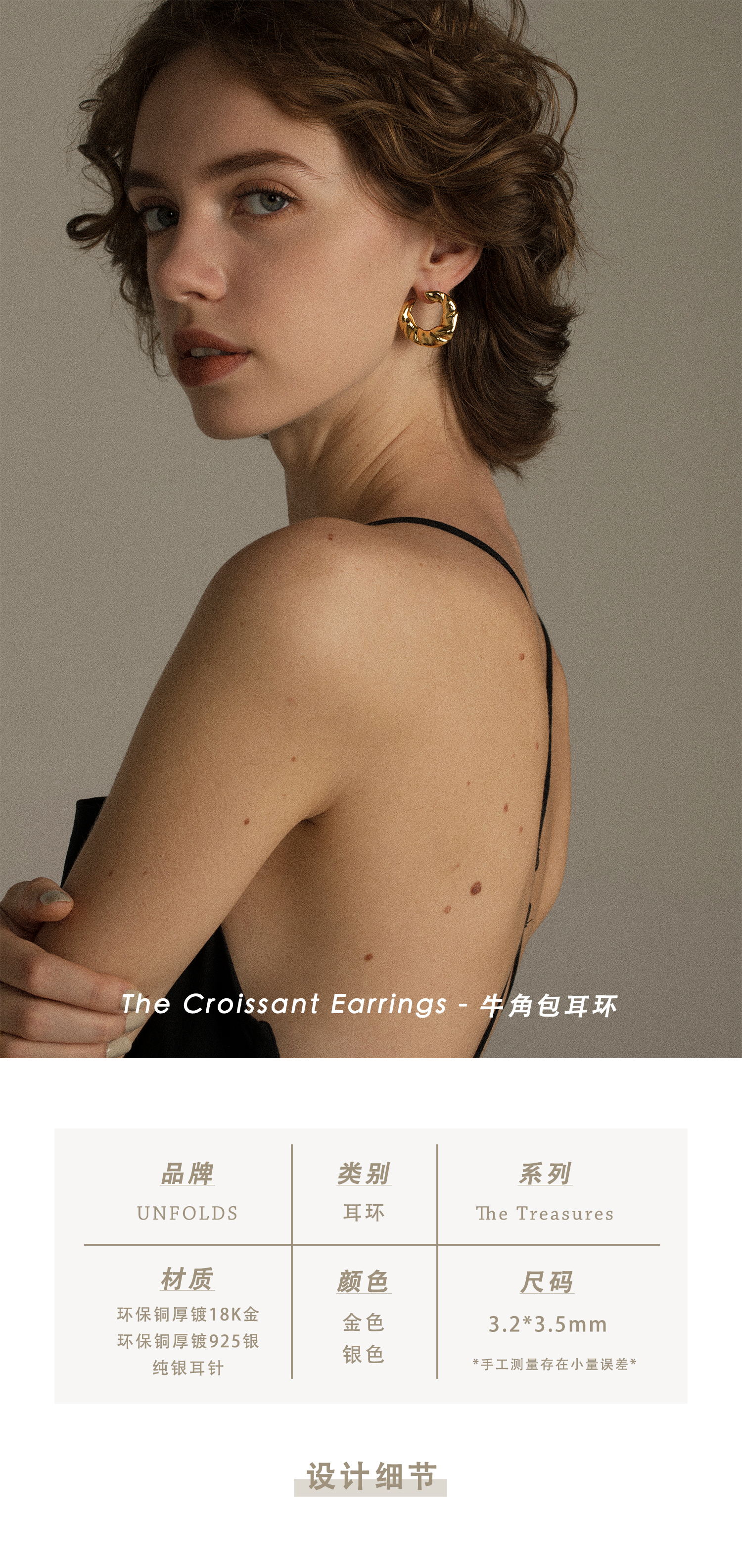 牛角包耳环 UNFOLDSThe Croissant Earrings Gold 牛角包耳环金色/银色
