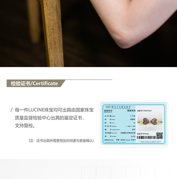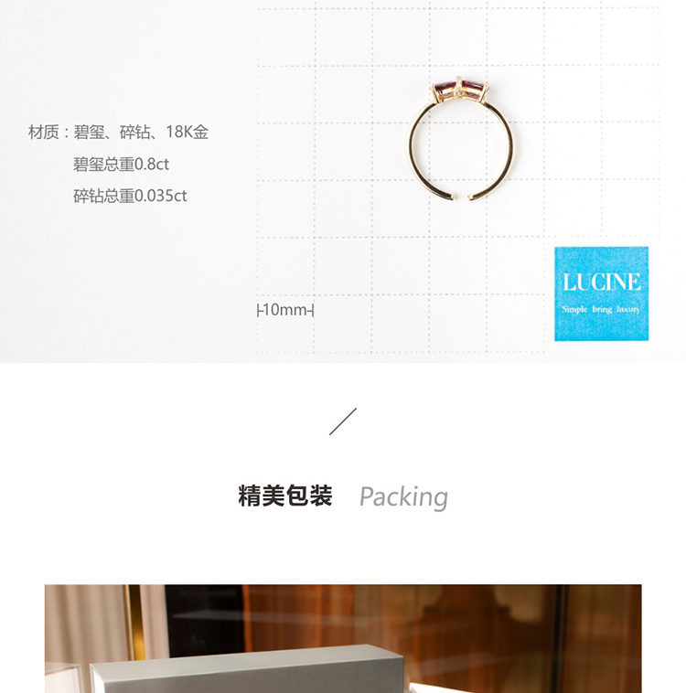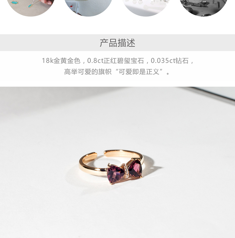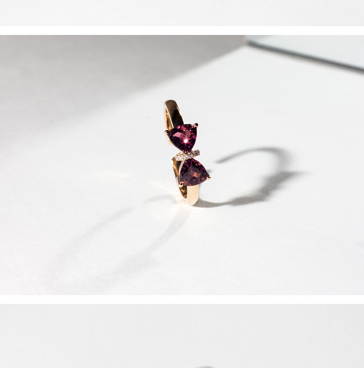 LUCINE 小领结18K黄金戒指碧玺设计师原创品牌女百搭520礼物