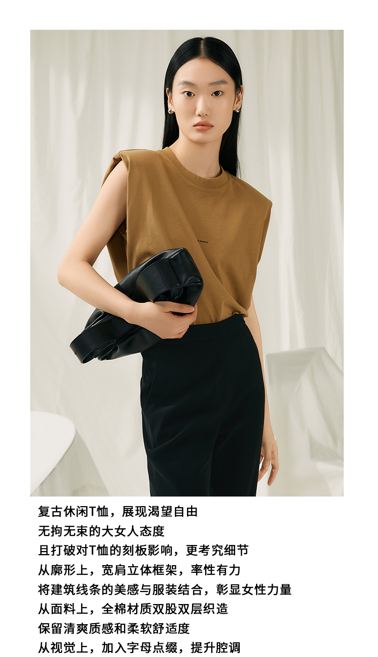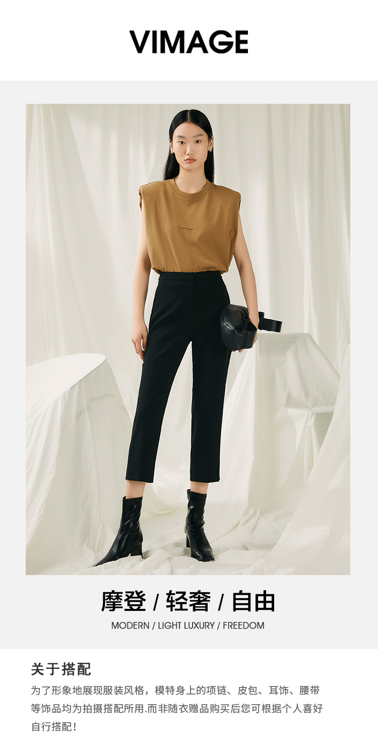VIMAGE纬漫纪秋季新款圆领休闲自然宽松小上衣女T恤V2002606