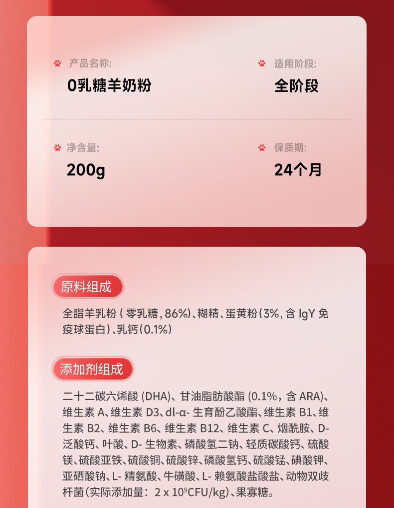 【2罐加送赠品 需要奶瓶下单备注】谷登0乳糖羊奶粉(猫用)200g