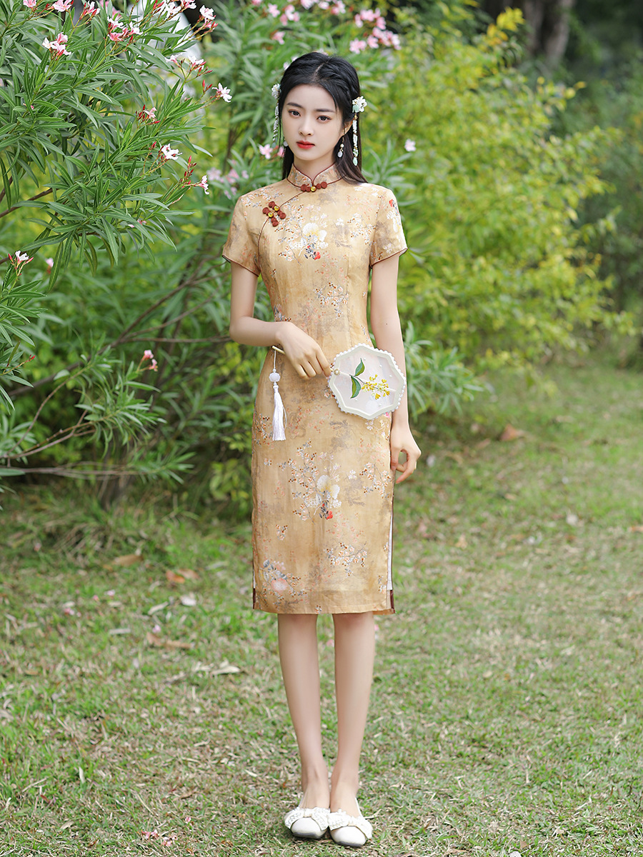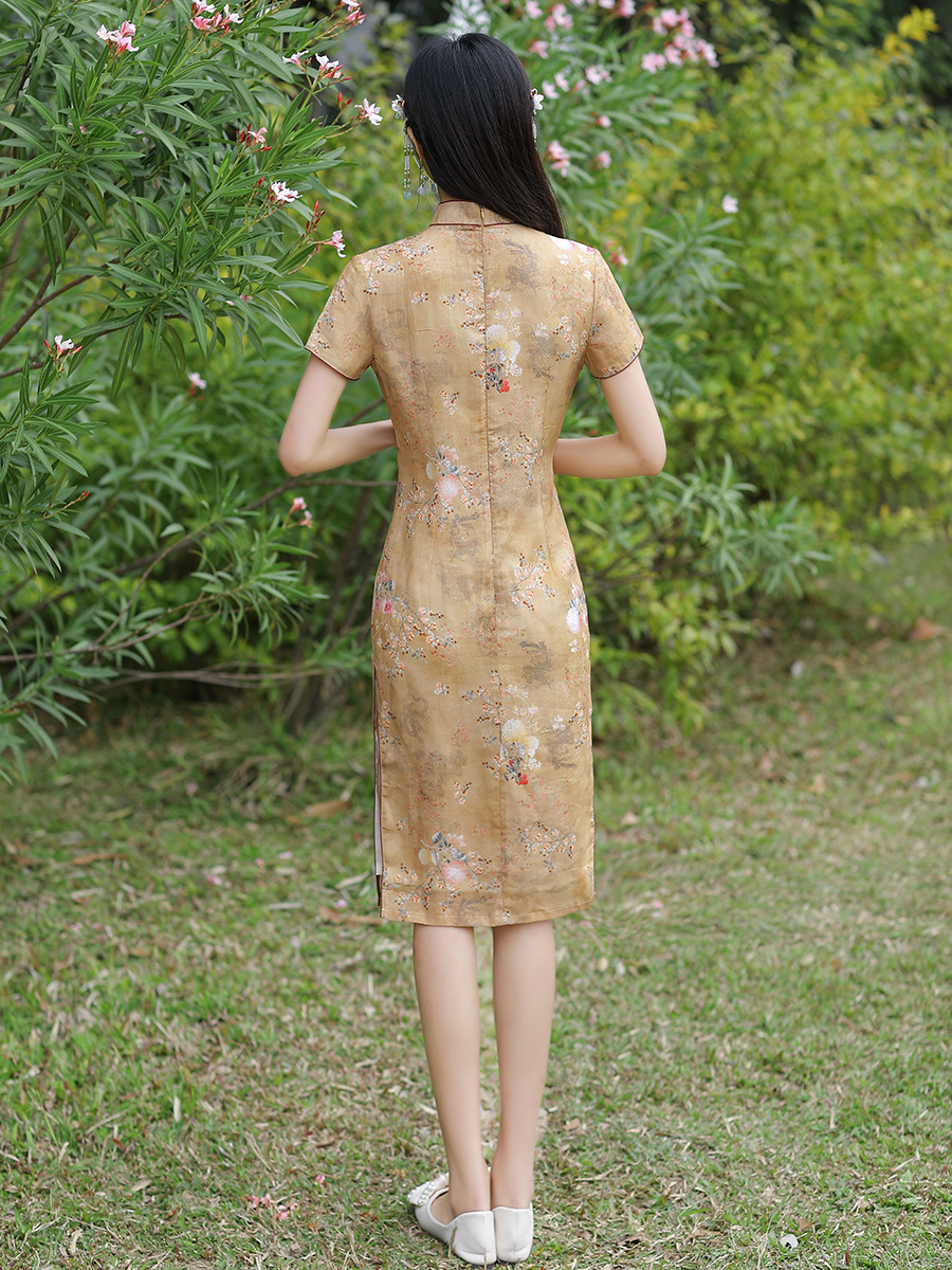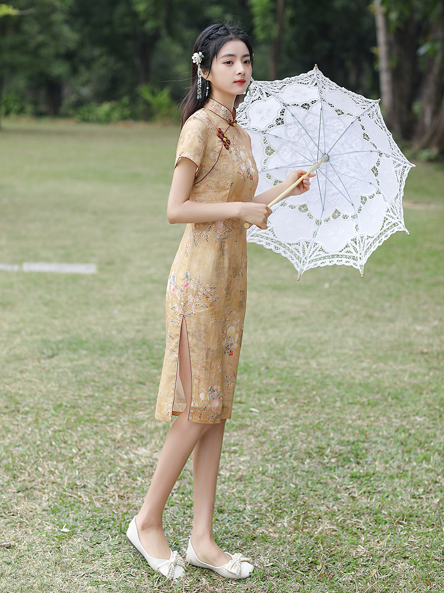 改良时尚,中长款双层苎麻旗袍TMY-6621