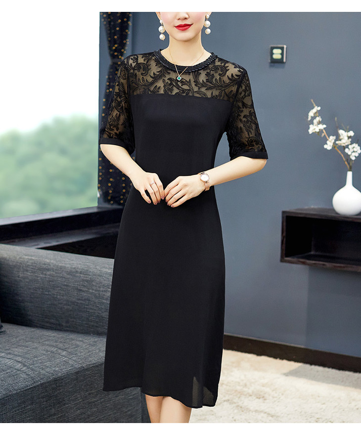 QY MY13064大码纯色百搭桑蚕丝连衣裙
