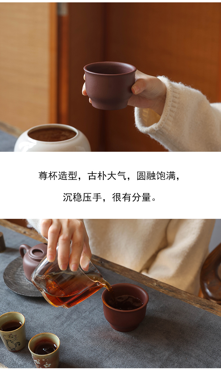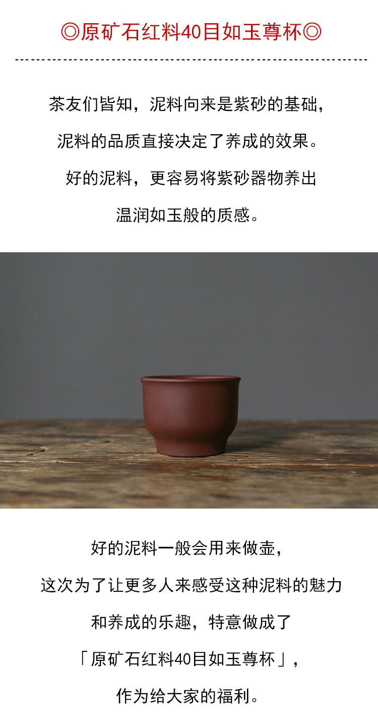 茶香记 原矿石红料40目如玉尊杯100ml紫砂茶杯主人杯小众泥料