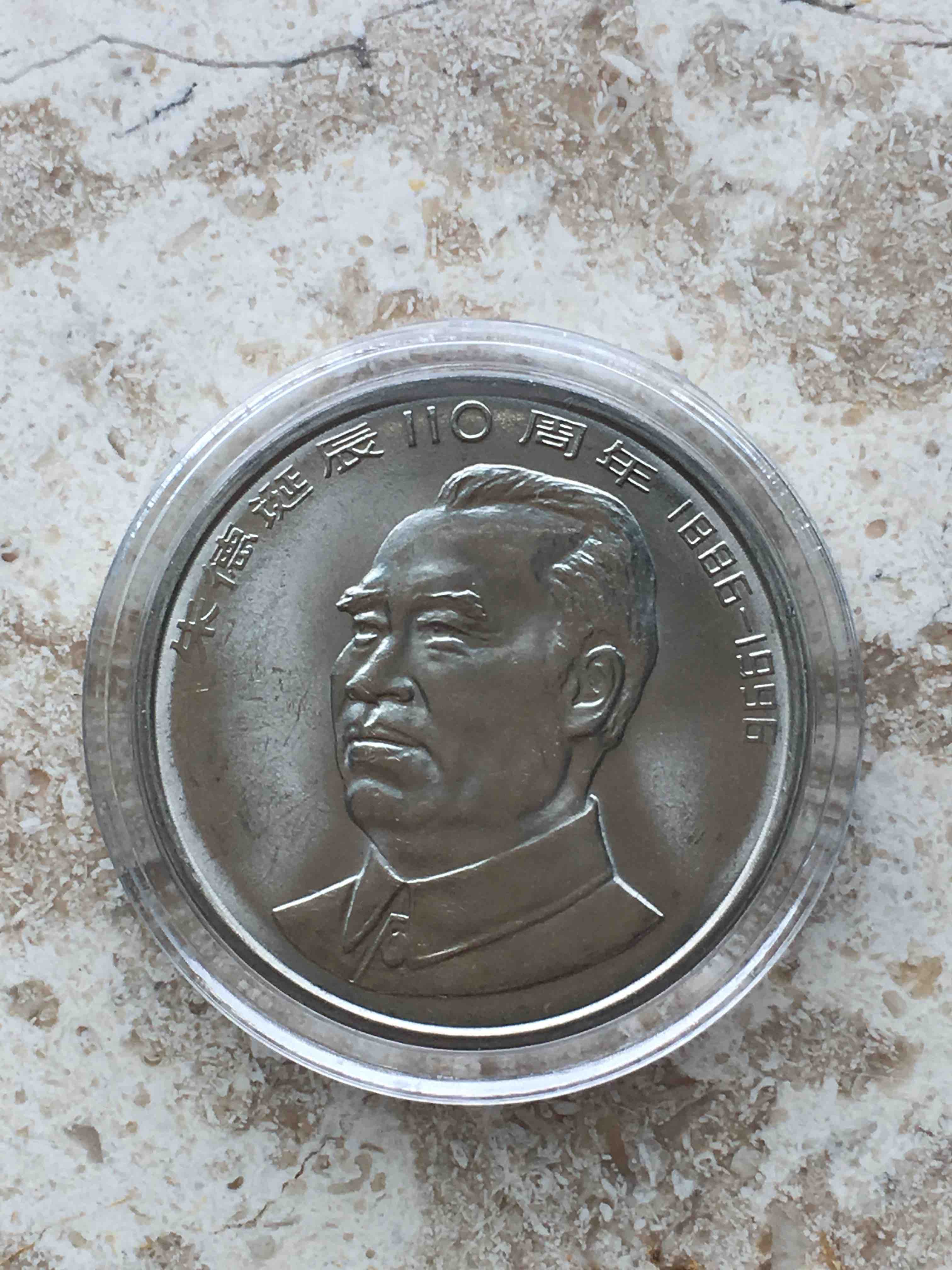 该枚纪念币背面图案为朱德肖像、“朱德诞辰110周年”中文字样及“1886-1996”的主题纪念文字。该枚纪念币直径25毫米,重量6.05克,品质为普制,发行量1000万枚。