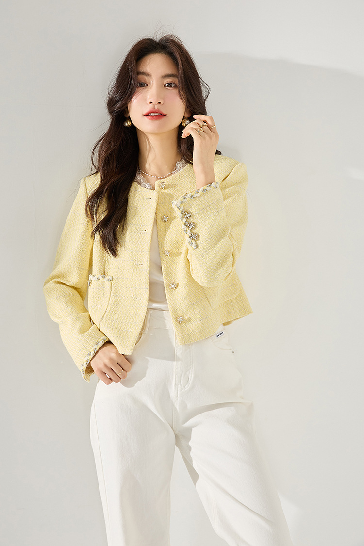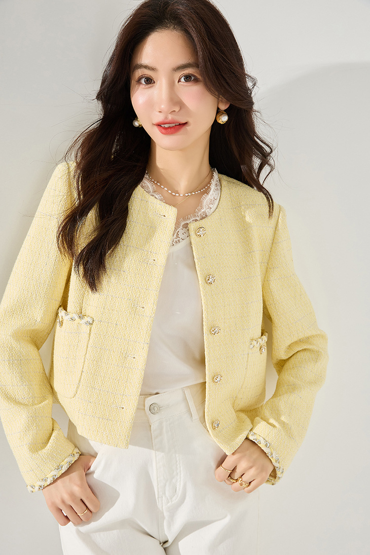 【高货sh】全新升级【铂金会员367/天猫499/差价132】(62322) 洛诗琳小香风短款外套2025春季千金风银丝时尚箱形外套