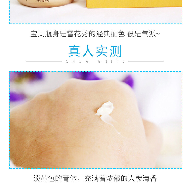 雪花秀滋盈生人参焕颜修护霜60ml#滋养型👍乳黄色的膏体可以用挖勺取用,很好吸收不厚重🌬,使用后皮肤十分饱满润滑💧,坚持使用脸部泛黄和暗沉状况改善许多🤩,肌肤从内而外透出来的好气色😘😘~