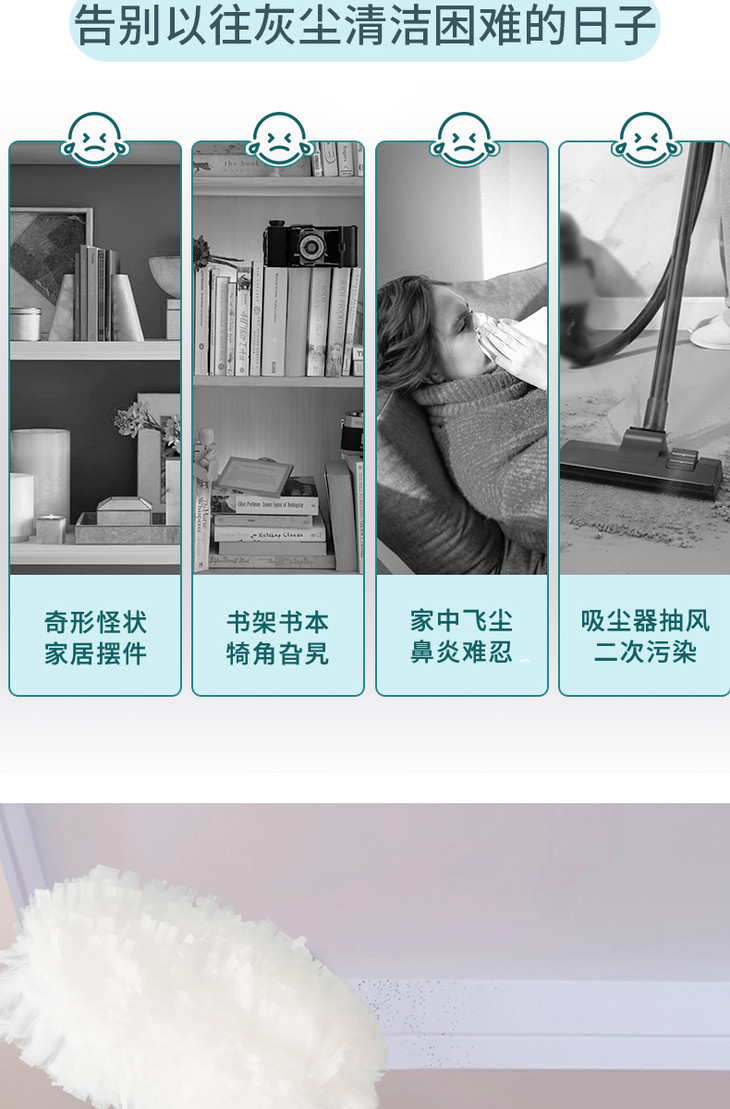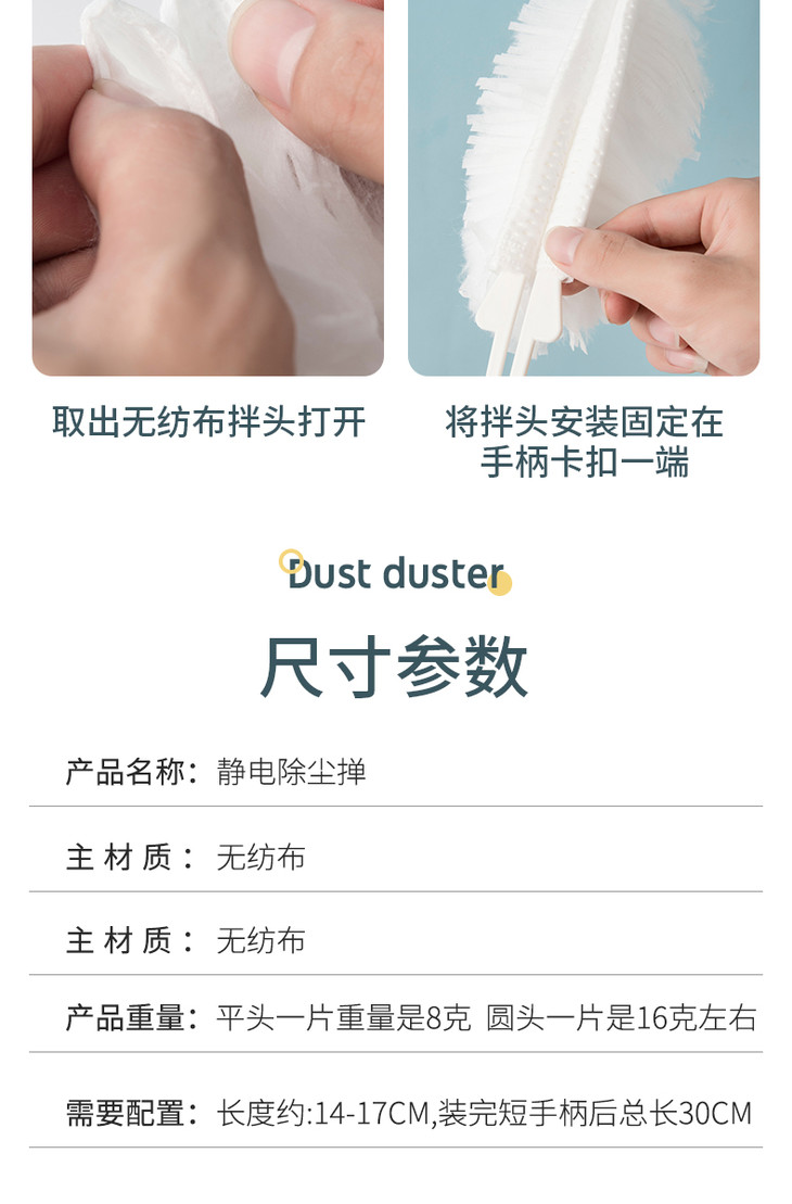【短款手柄+10个替换头】静电除尘掸子家用一次性便捷收纳清洁扫灰鸡毛掸子擦灰扫灰床底下
