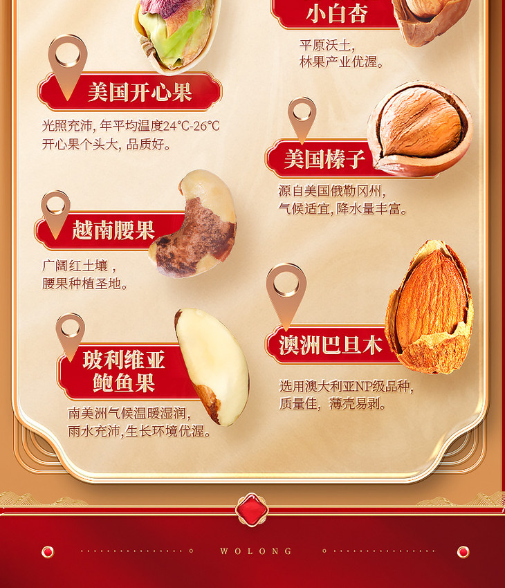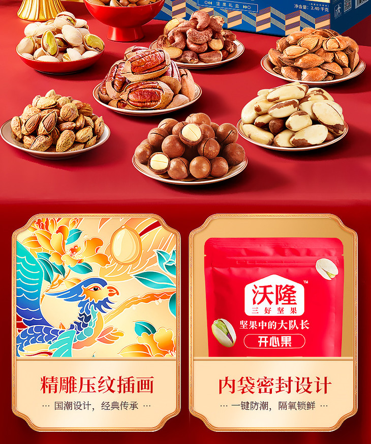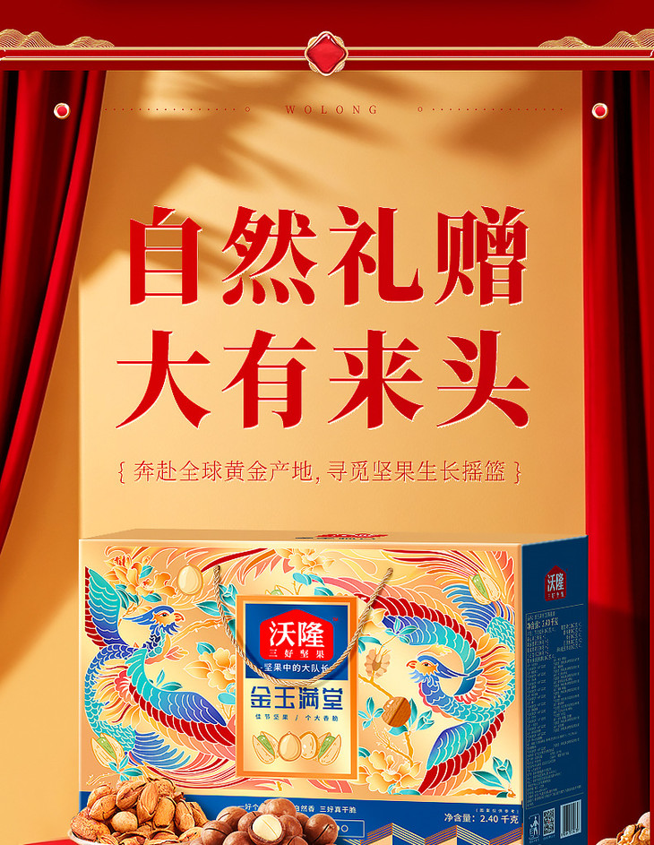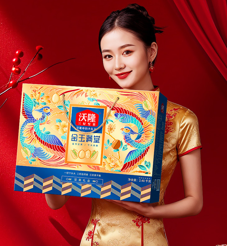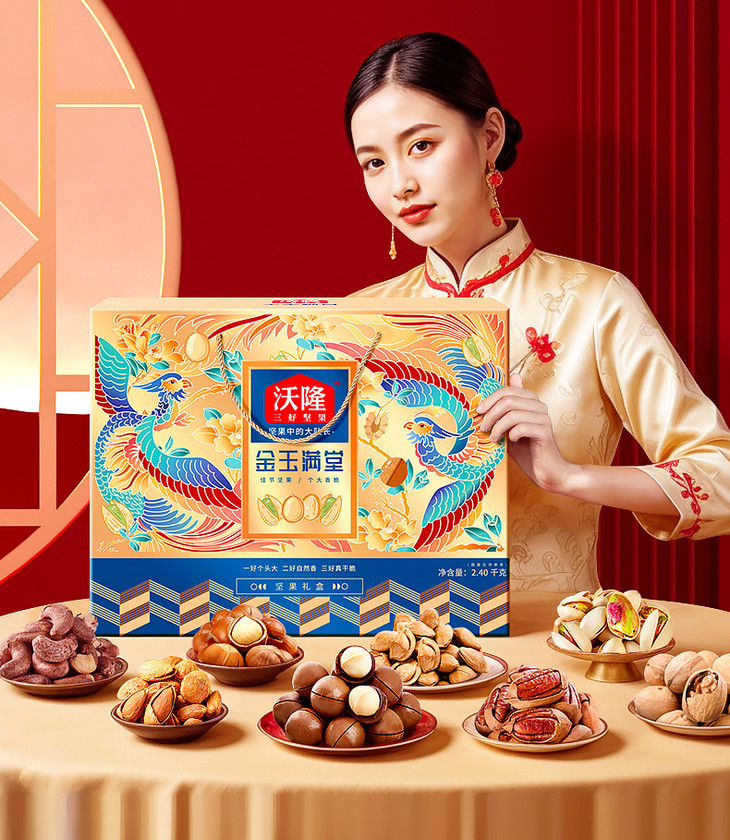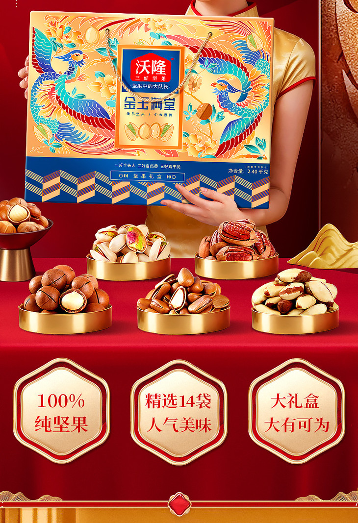 沃隆 金玉满堂2400g14袋纯坚果礼盒高档大分量干果春节礼盒