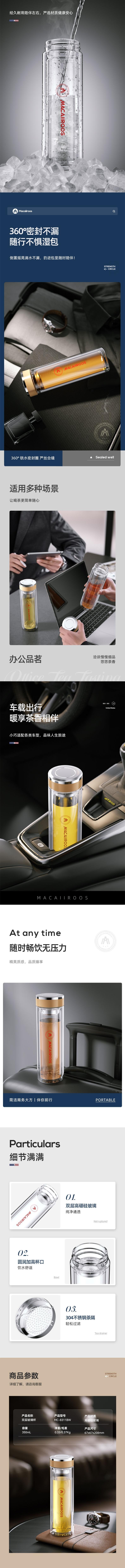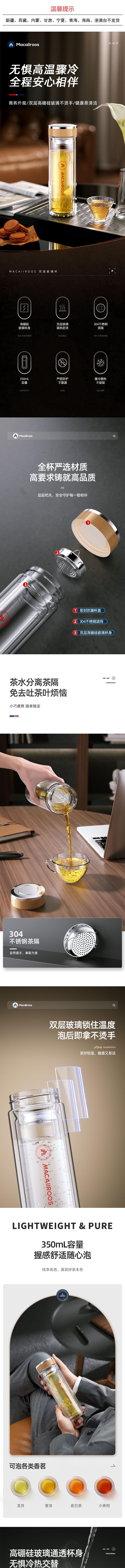 MACAIIROOS迈卡罗 双层玻璃杯350ML MC-8311BW