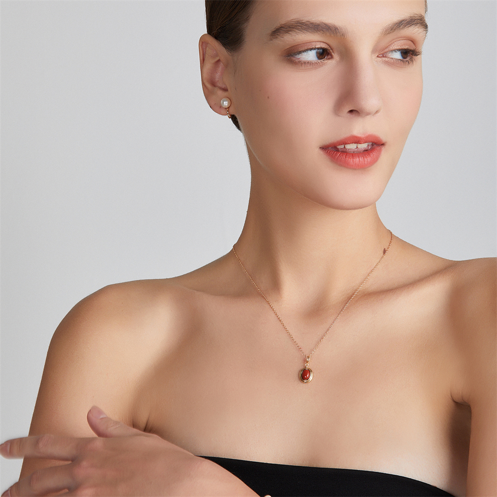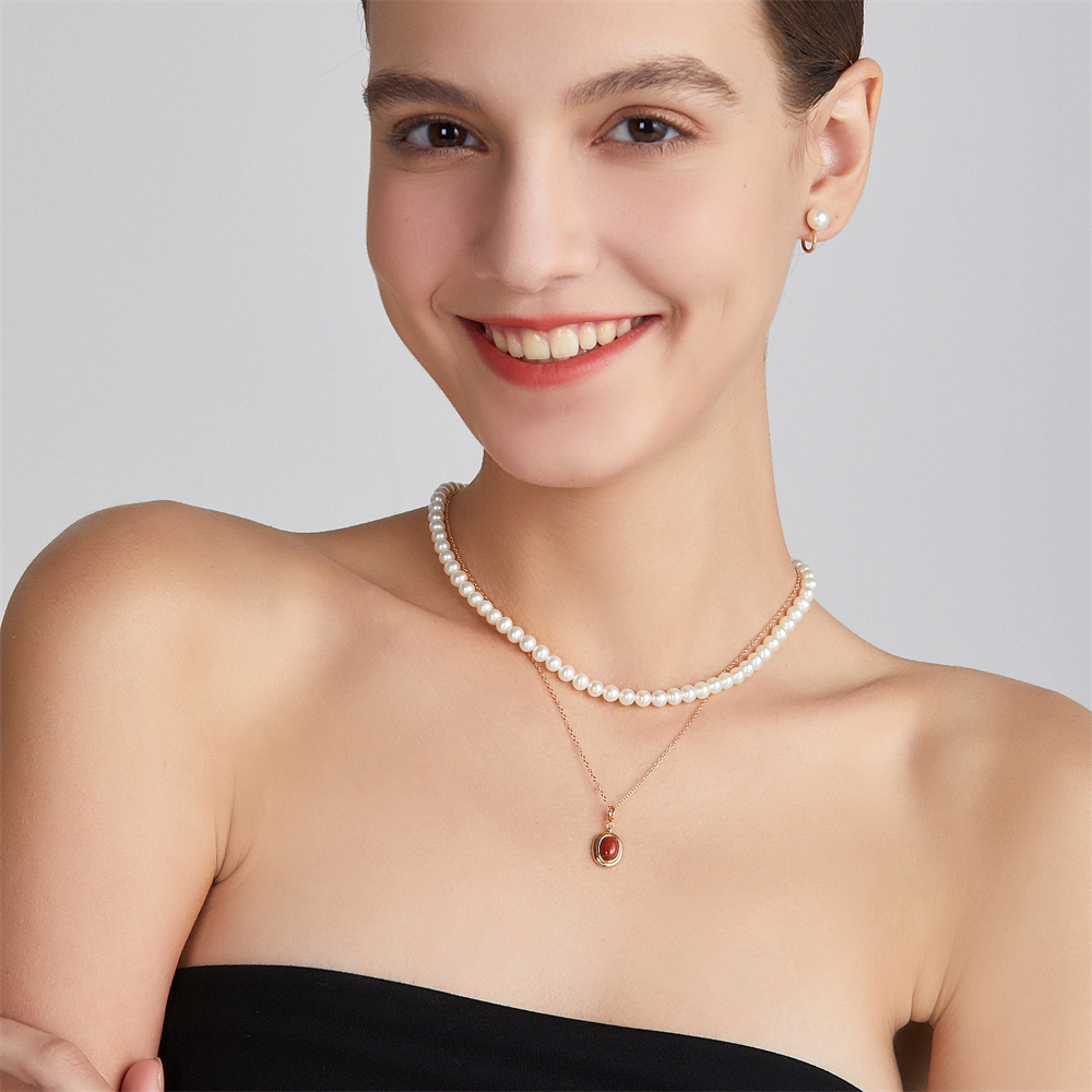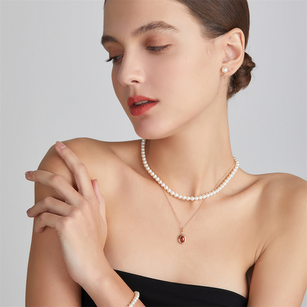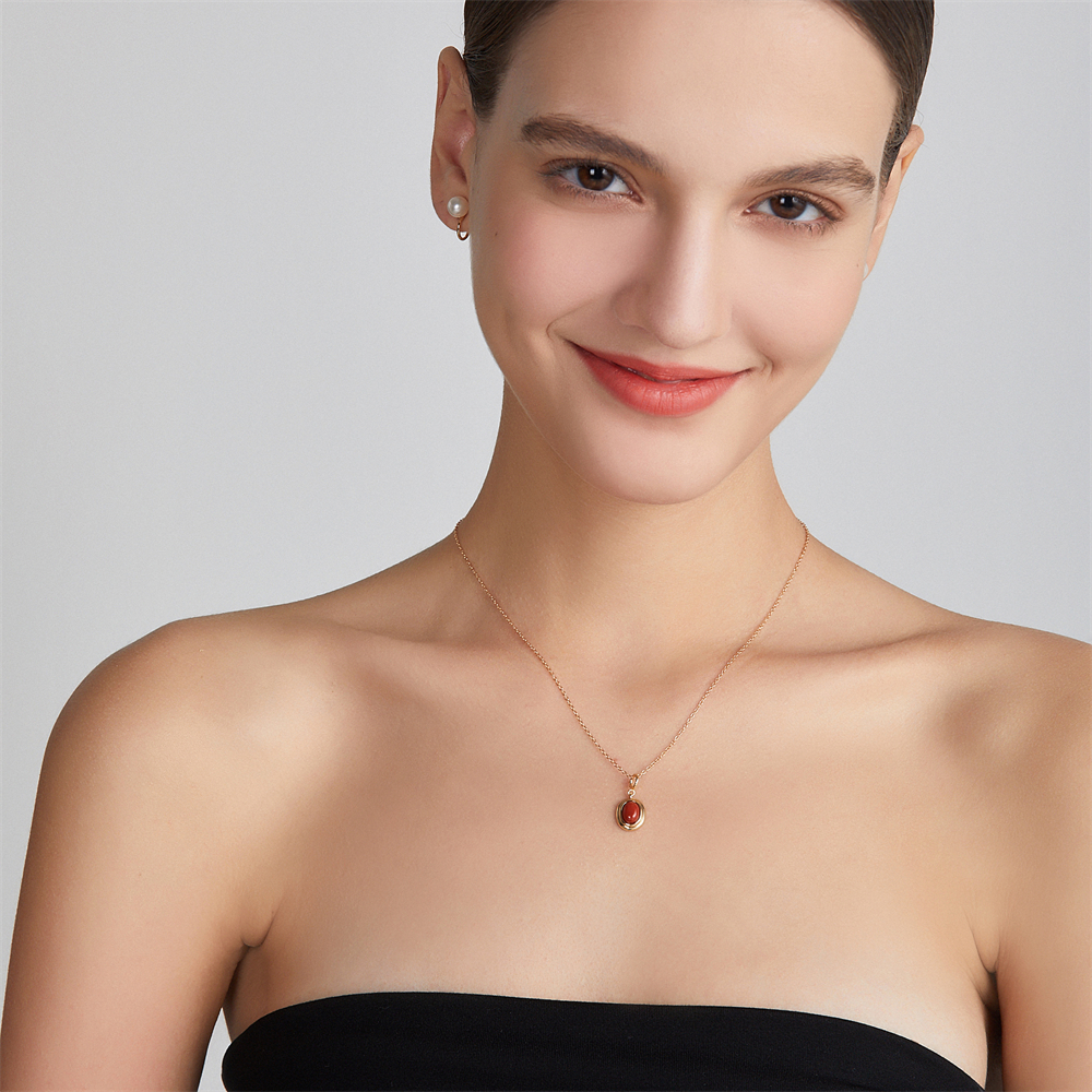 南红小团圆吊坠+经典珍珠项链3号(粒粒晶莹)