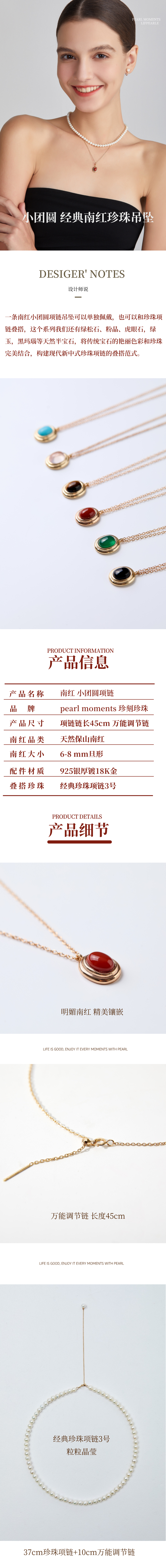 pearl moments南红小团圆吊坠+经典珍珠项链3号(粒粒晶莹)