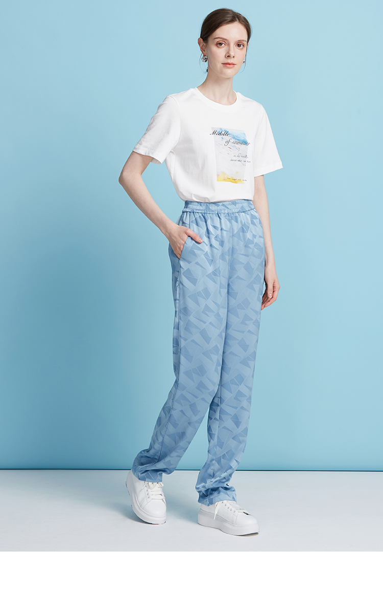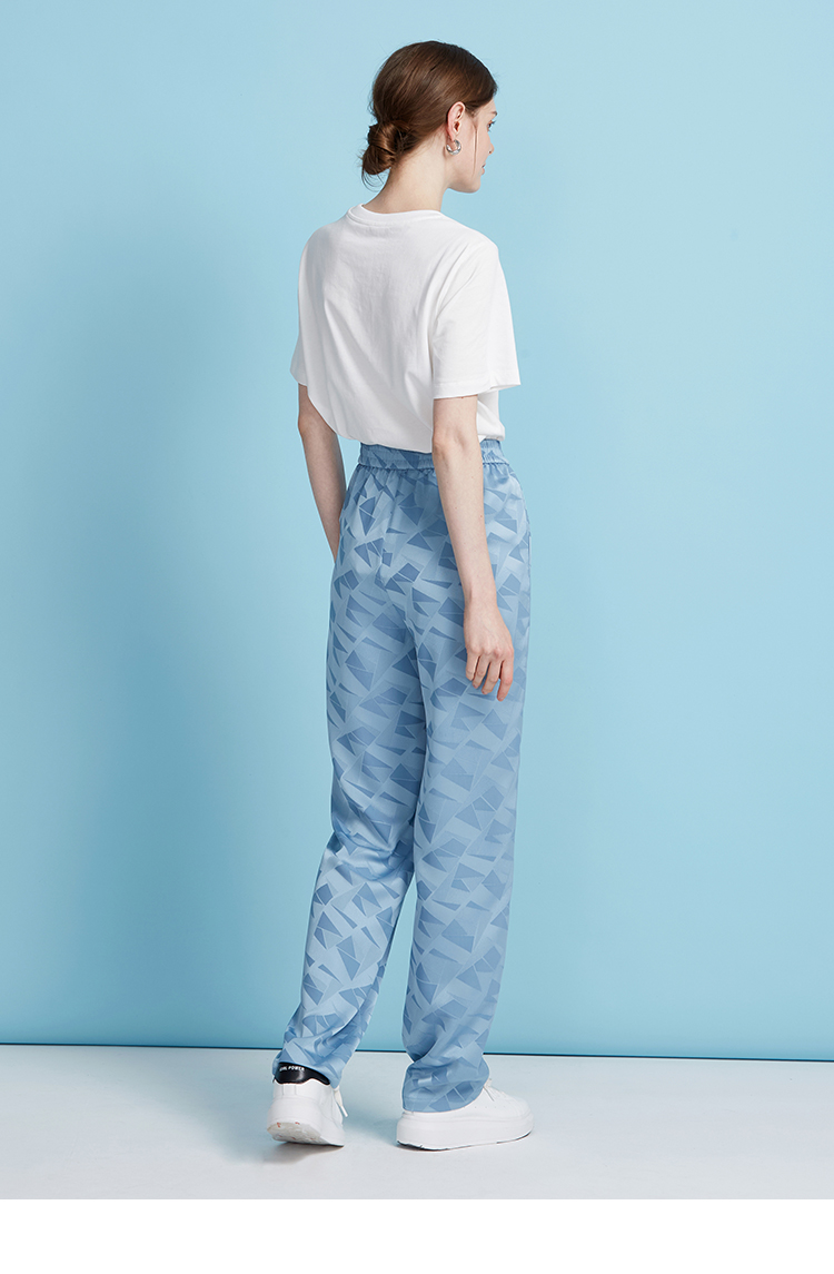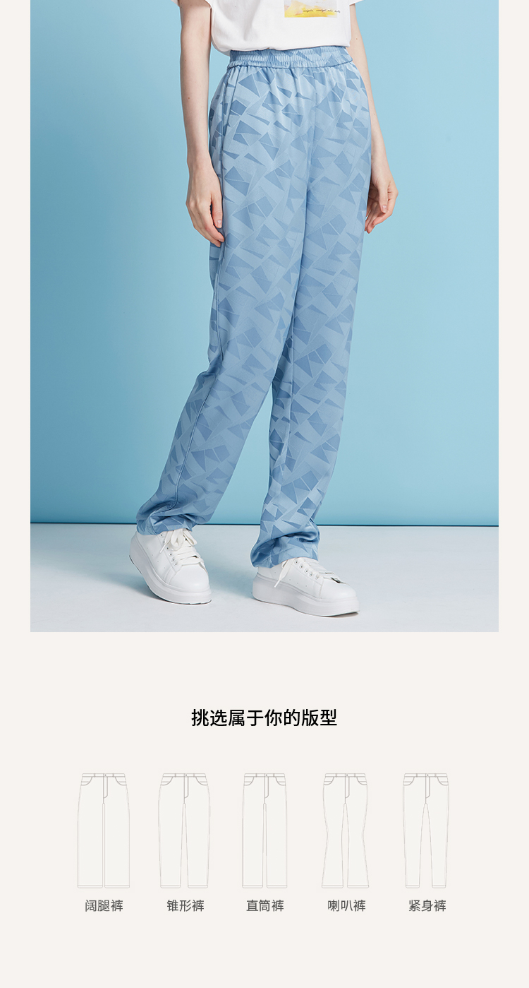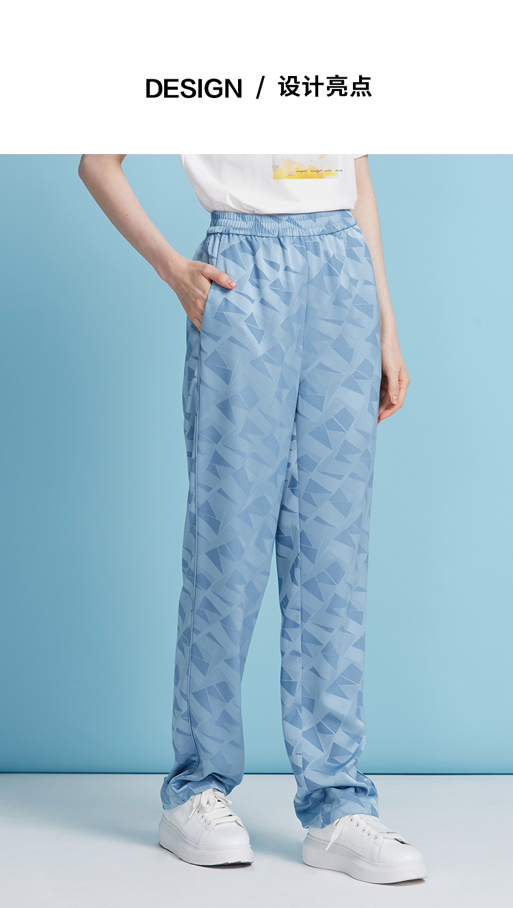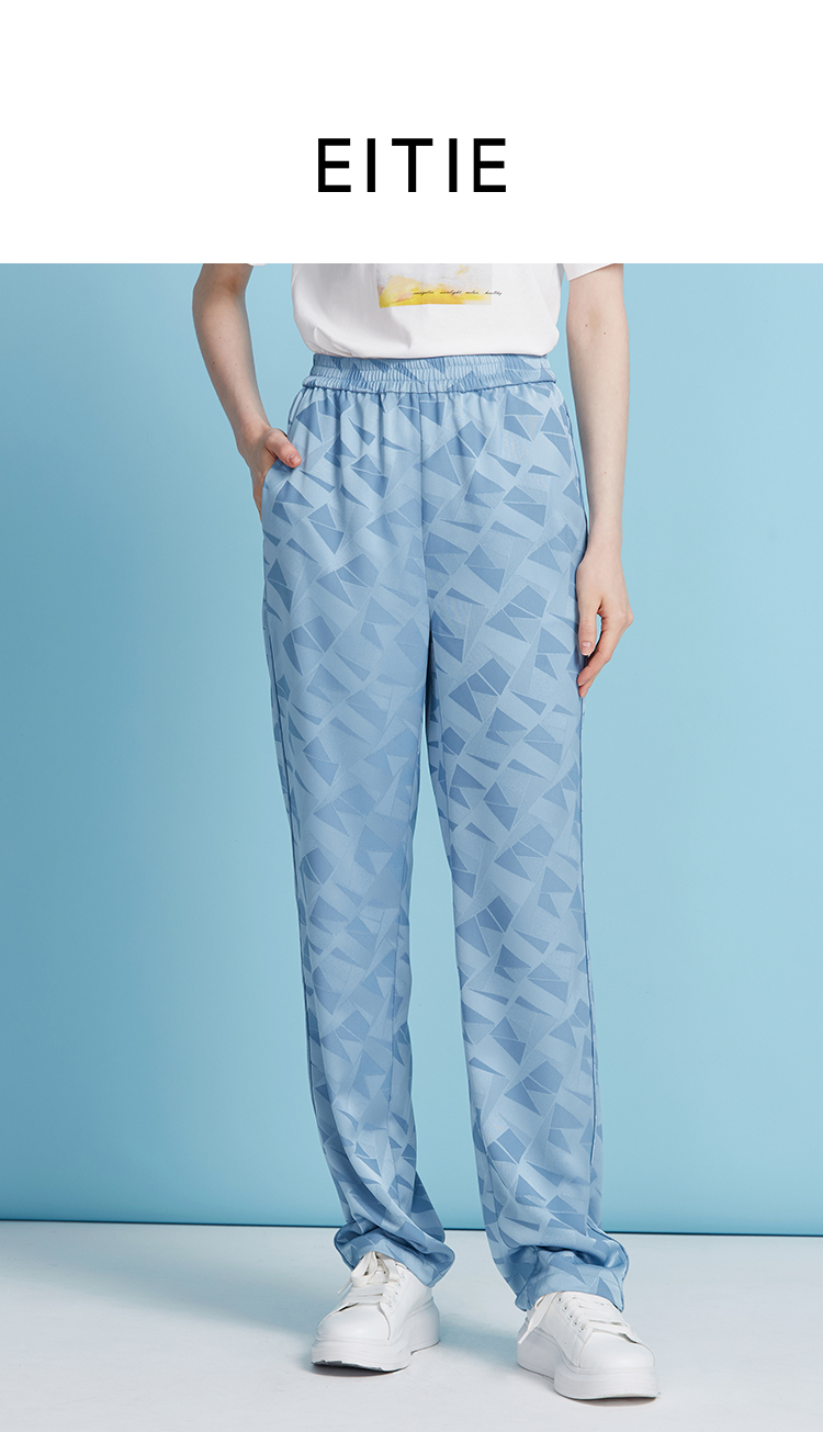 EITIE爱特爱轻运动风清爽蓝色直筒松紧腰长裤休闲裤夏季新款B2505616