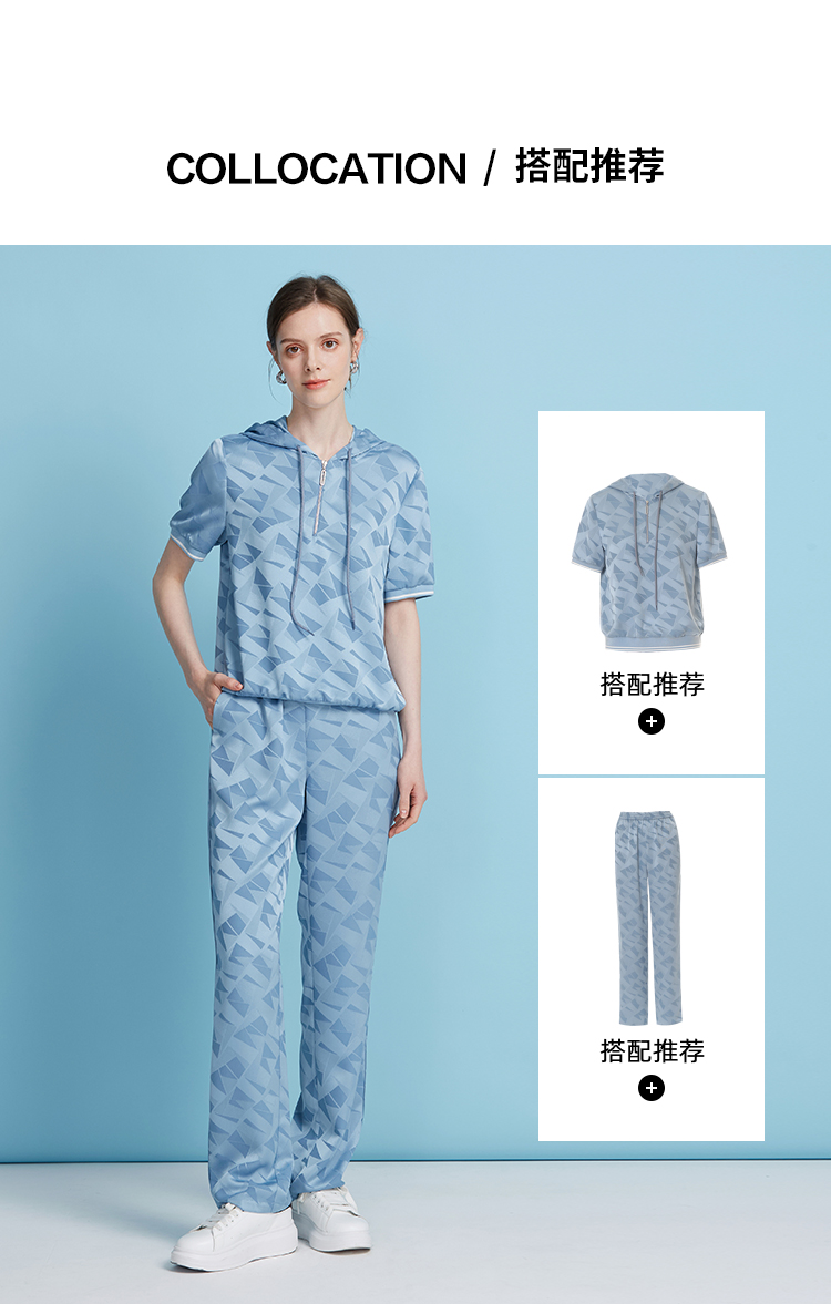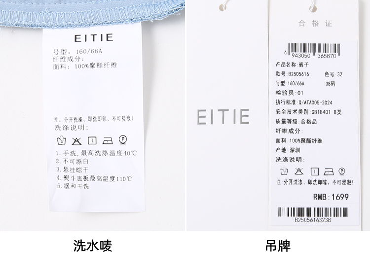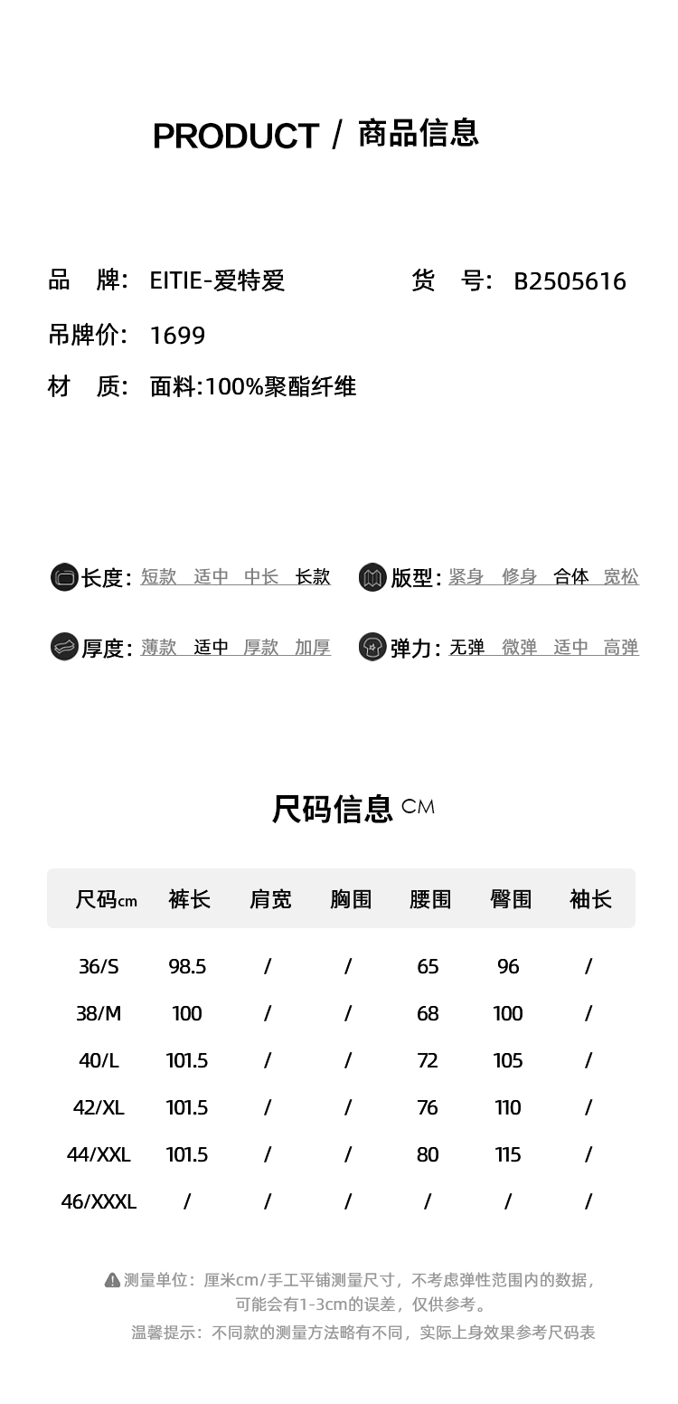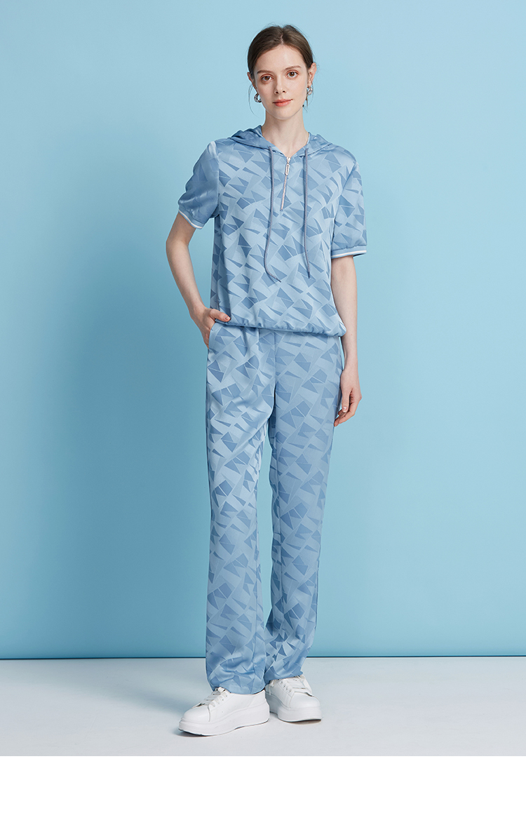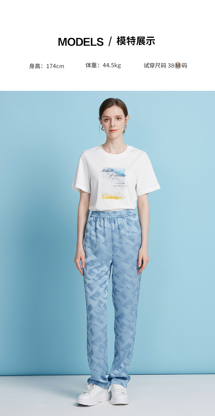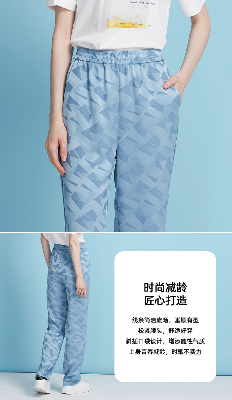 EITIE爱特爱轻运动风清爽蓝色直筒松紧腰长裤休闲裤夏季新款B2505616