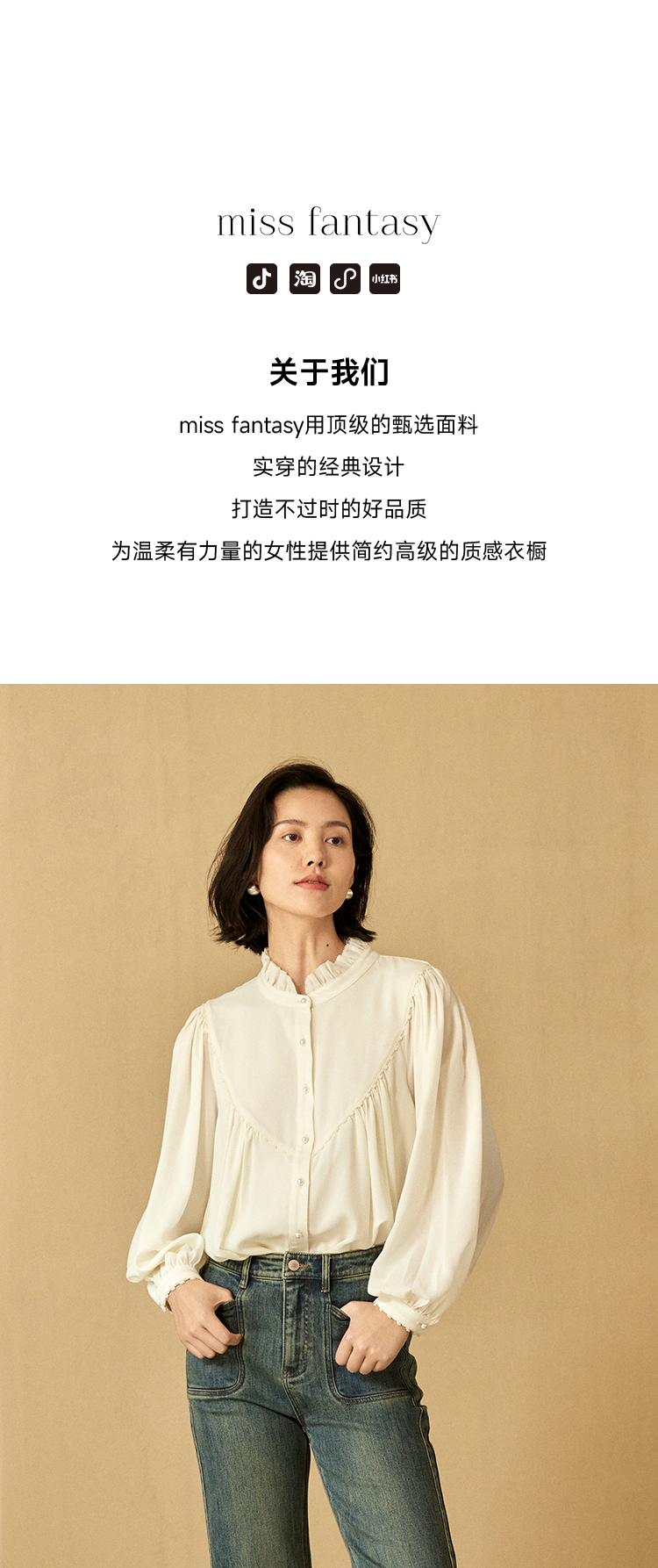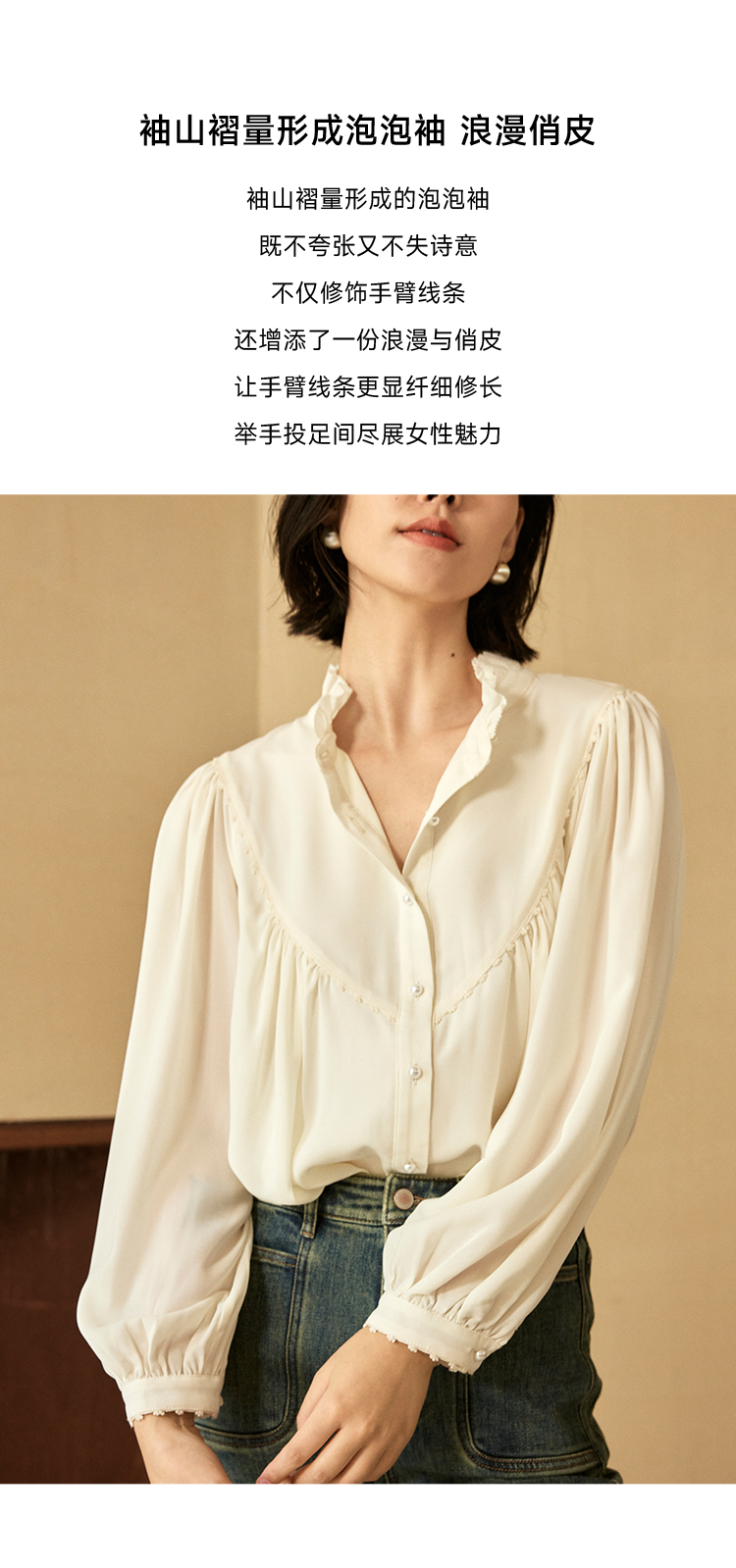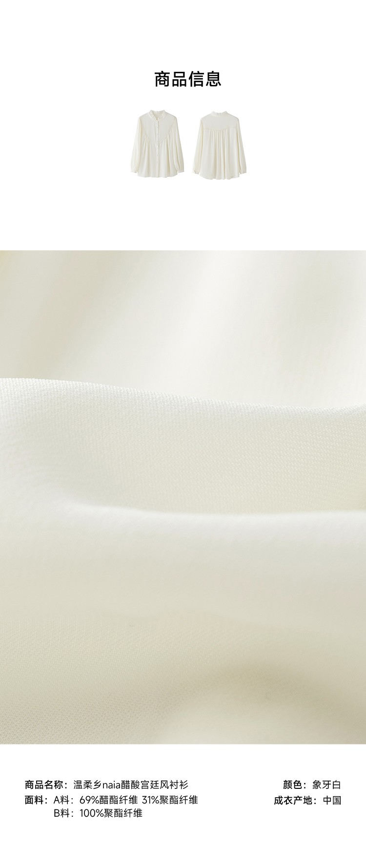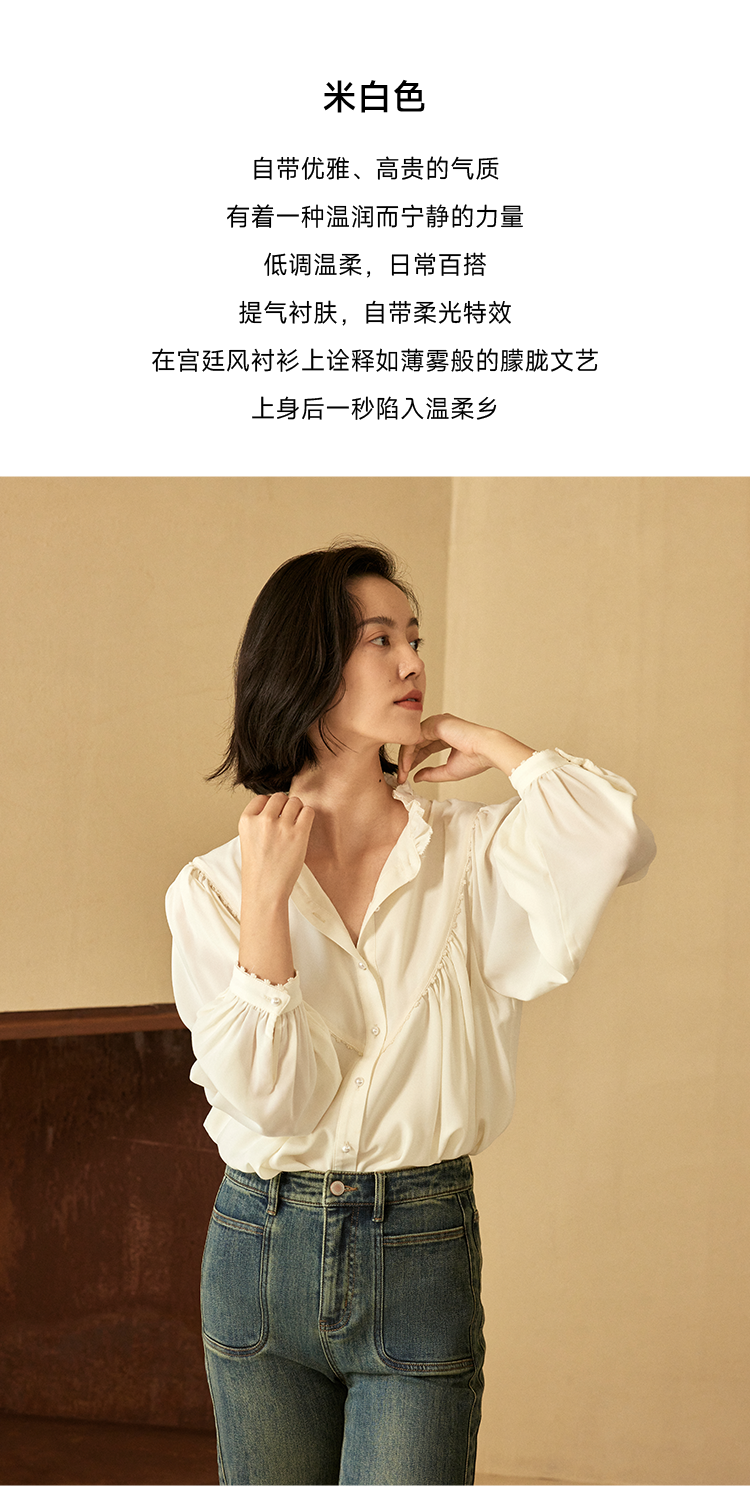 温柔乡naia醋酸宫廷风衬衫FCE3SHT008