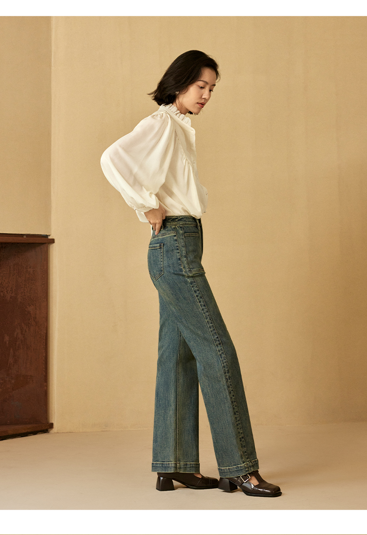 时髦两穿翻边直筒牛仔裤FCF3JEN089