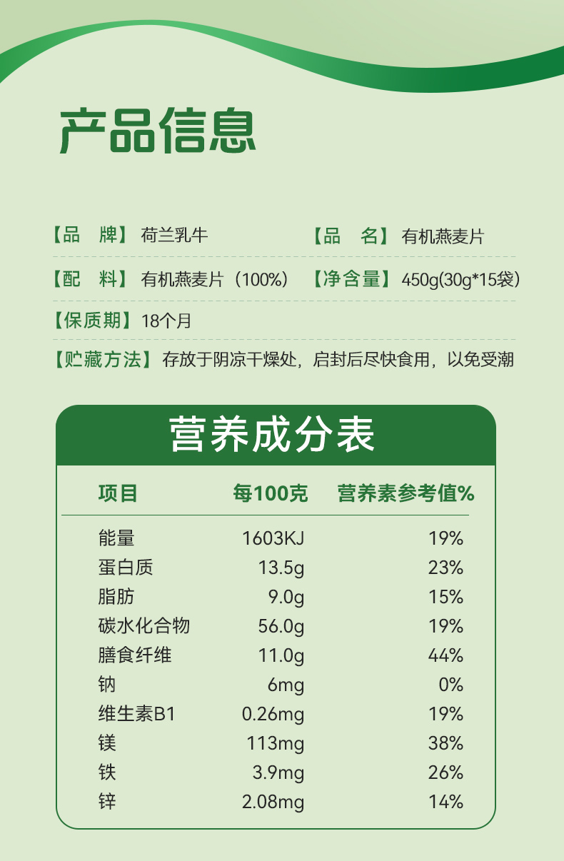 SY【限时专属赠品】荷兰乳牛有机燕麦片450g(30g*15条)*1袋 保质期18个月