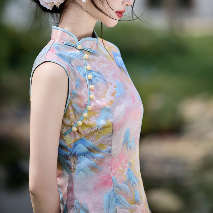 无袖国风少女复古,修身日常夏季旗袍 SC21590