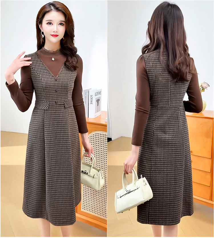 QYM 25S29-Y时尚格纹连衣裙中长款A字裙 商品图1