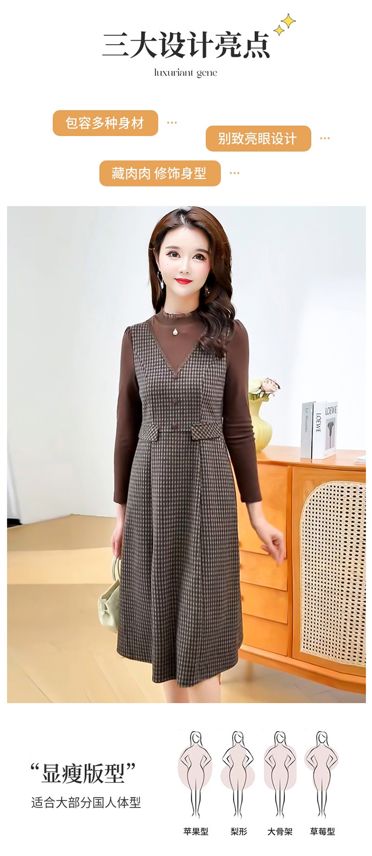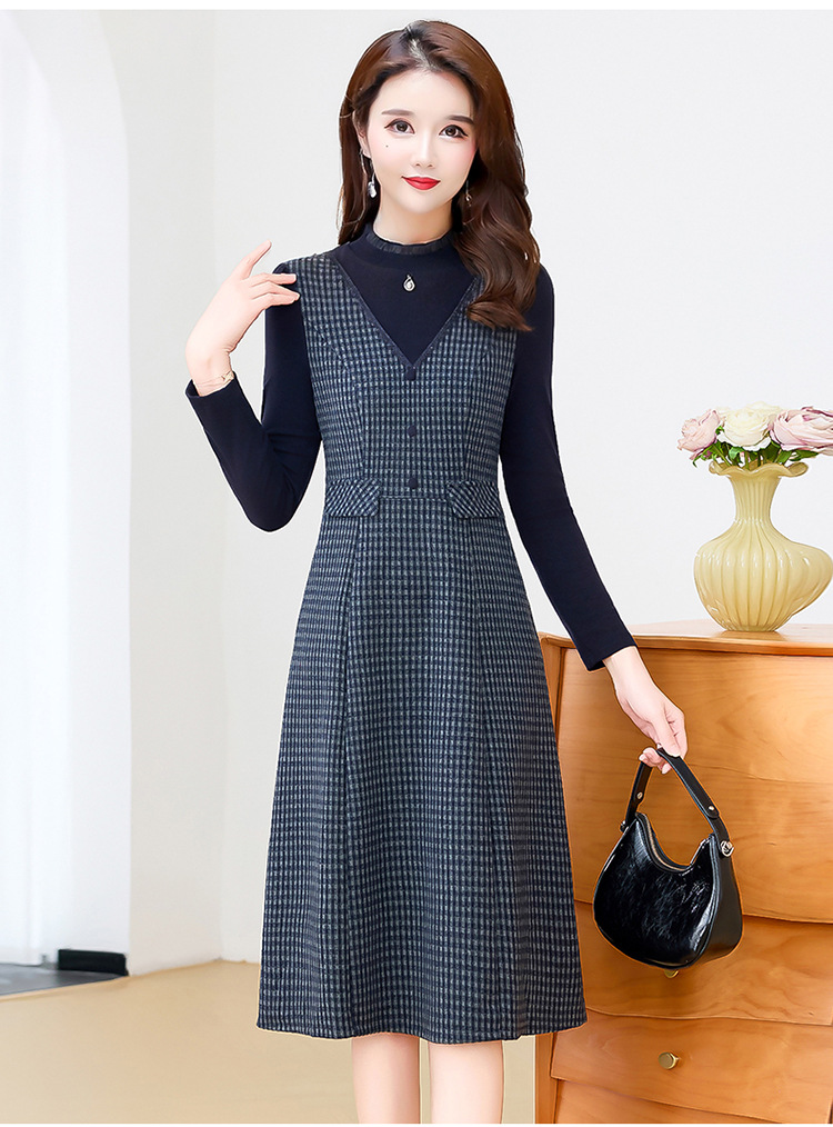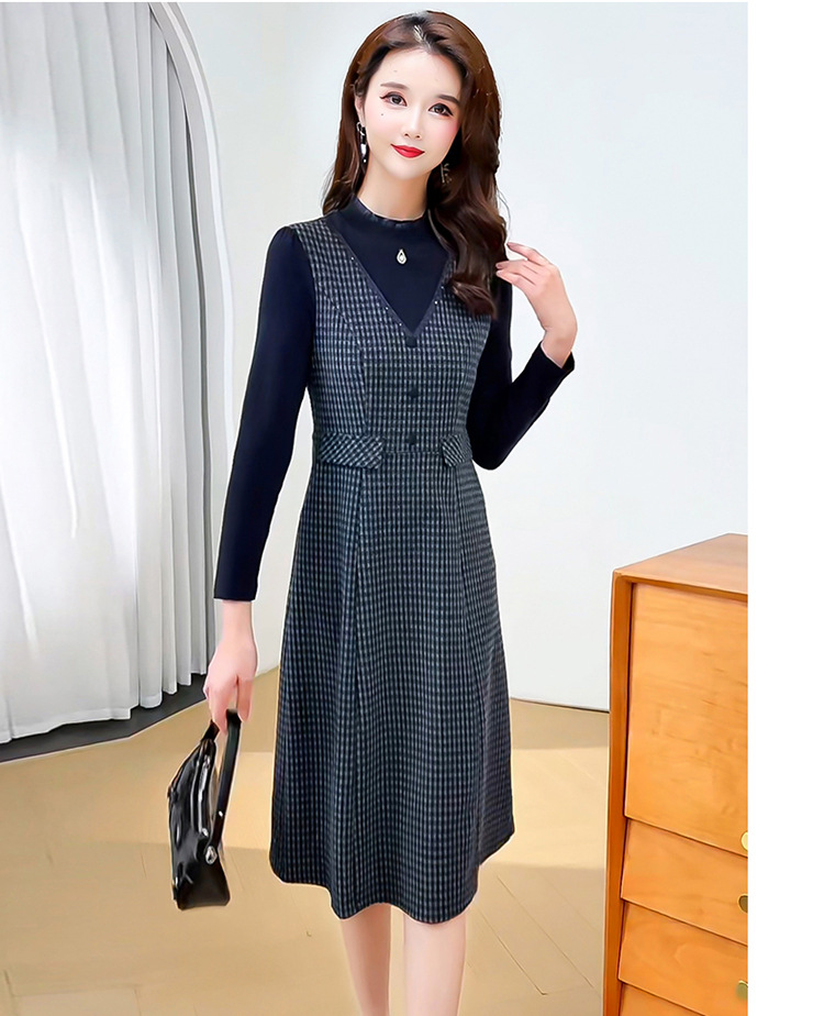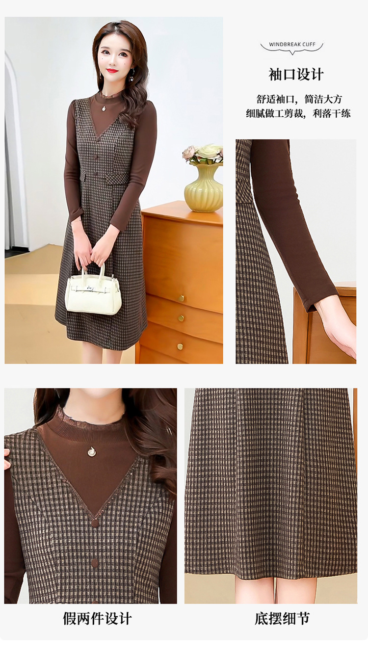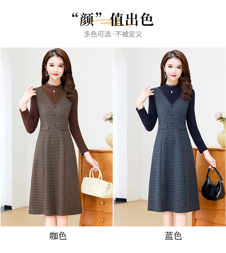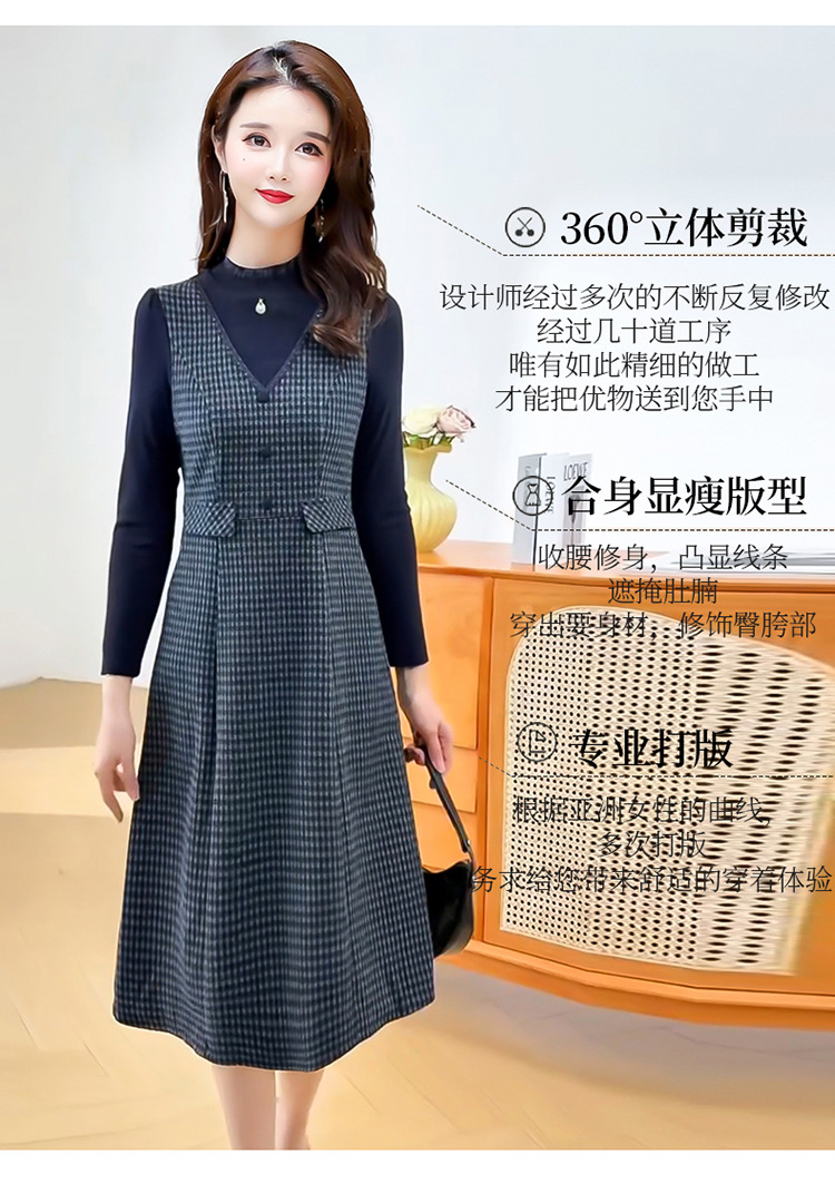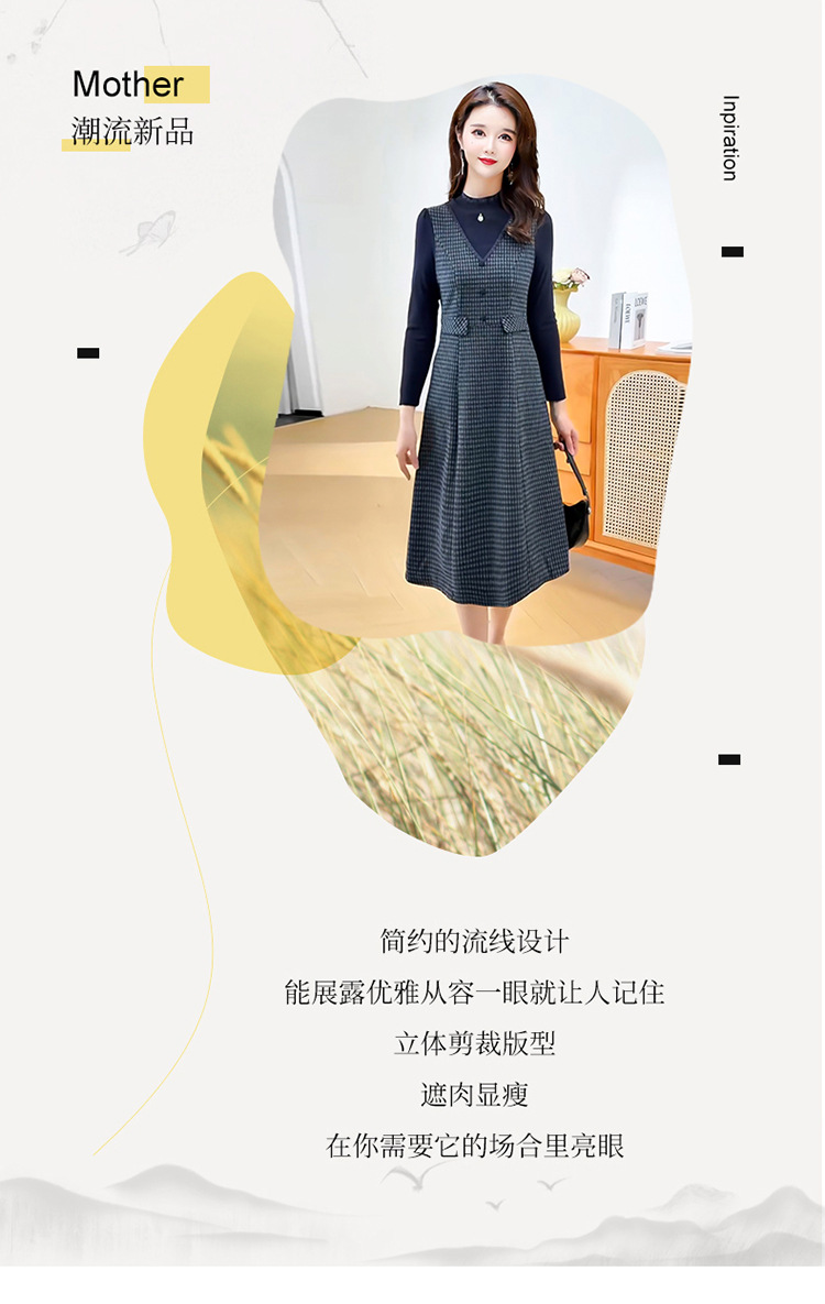 QYM 25S29-Y时尚格纹连衣裙中长款A字裙 商品图2