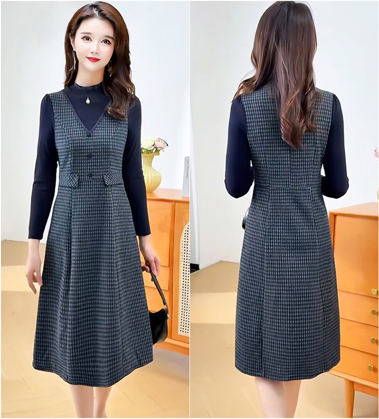 QYM 25S29-Y时尚格纹连衣裙中长款A字裙 商品图3