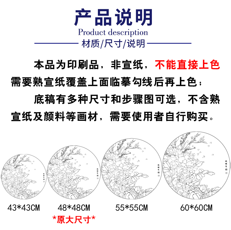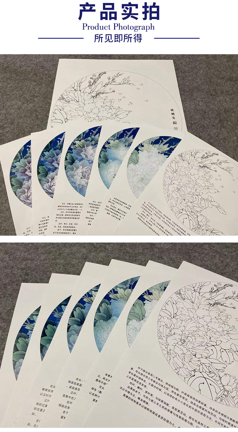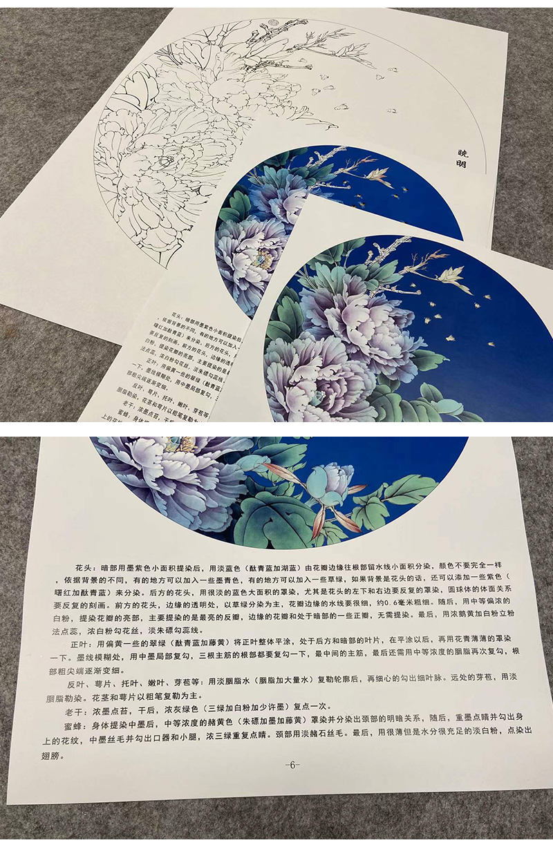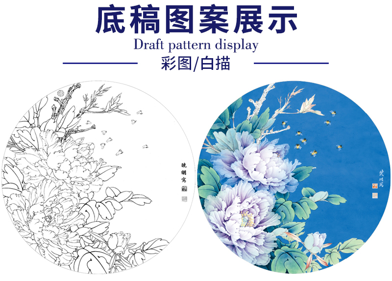 【有步骤、大彩图】李晓明工笔花鸟画白描底稿牡丹图小品《紫韵融春》KA04