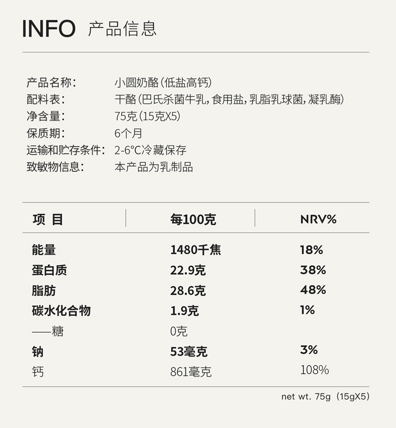 【怡禾】Dr.Cheese 奶酪博士 小圆奶酪低盐高钙奶酪75g 4袋装/6袋装