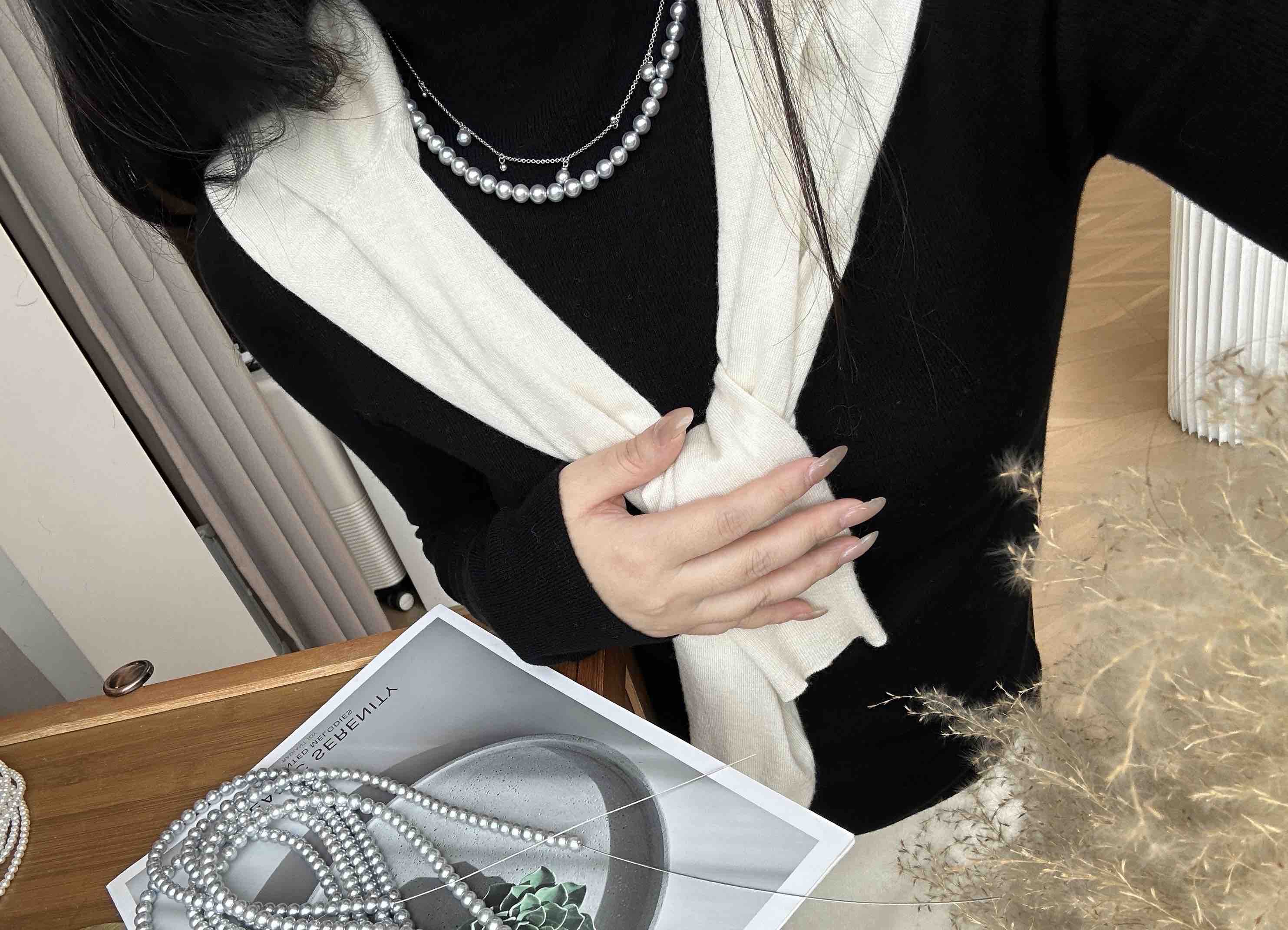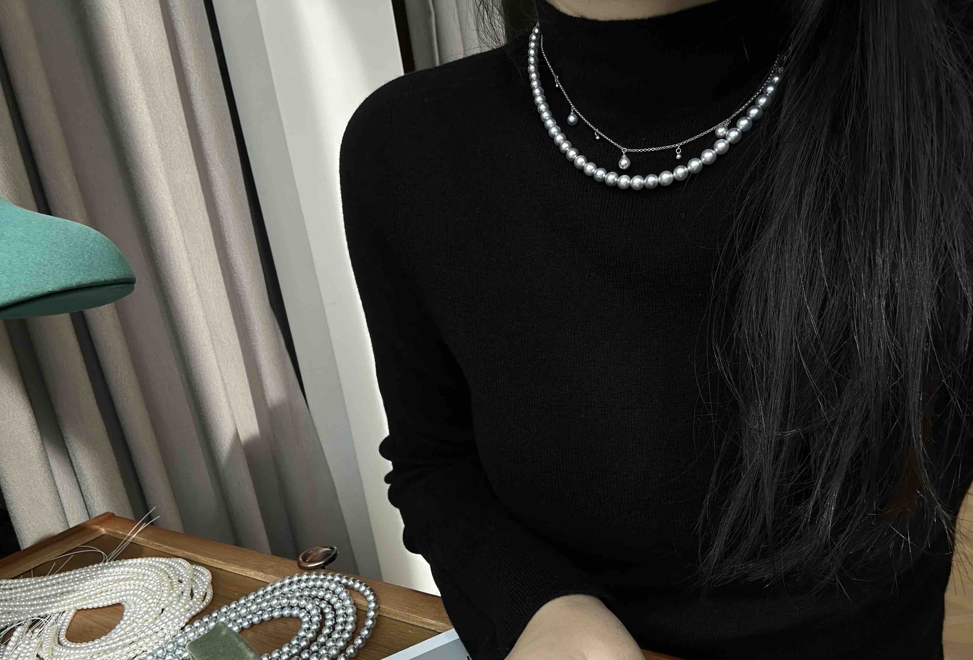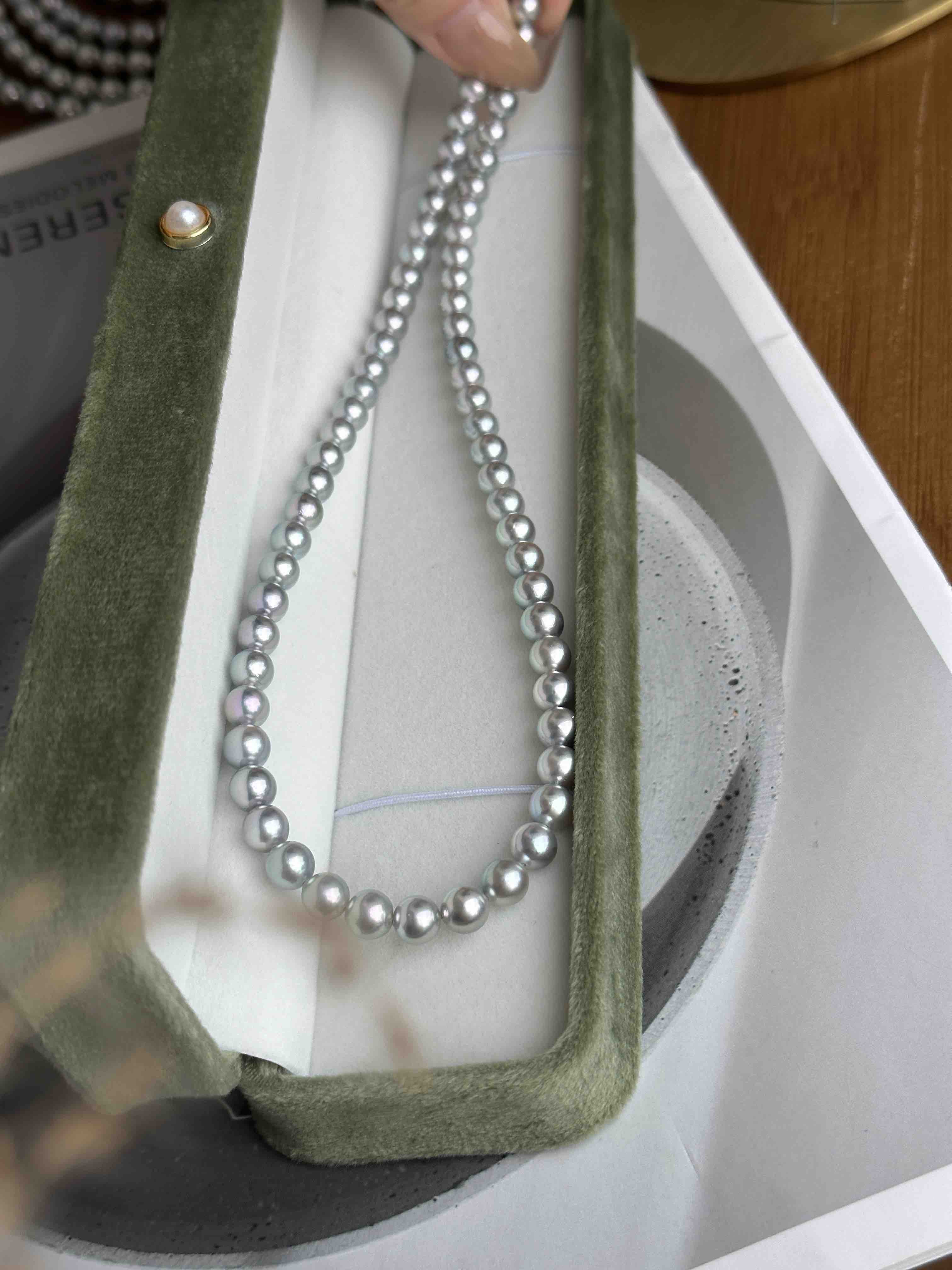 重磅!!双旦 宠粉福利 真多麻色akoya珠串 6-7mm ji光正圆细微瑕 微微生长痕迹