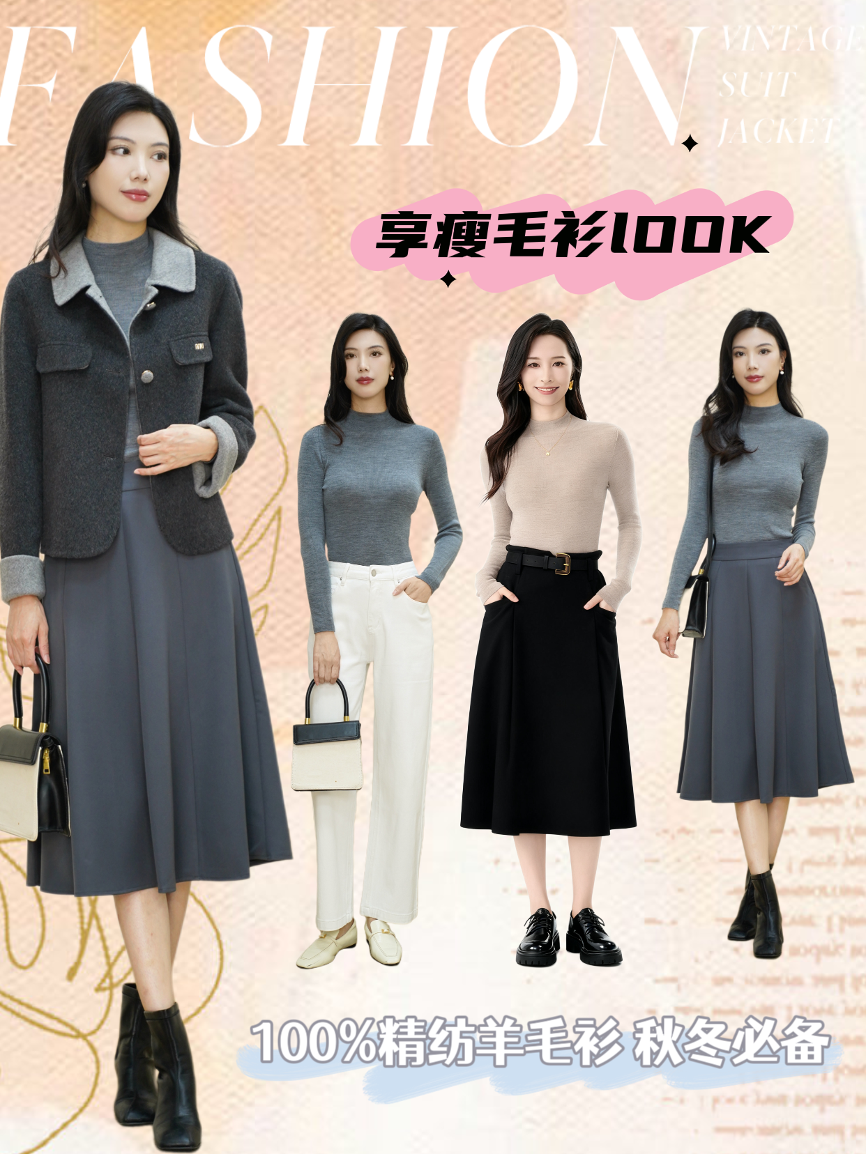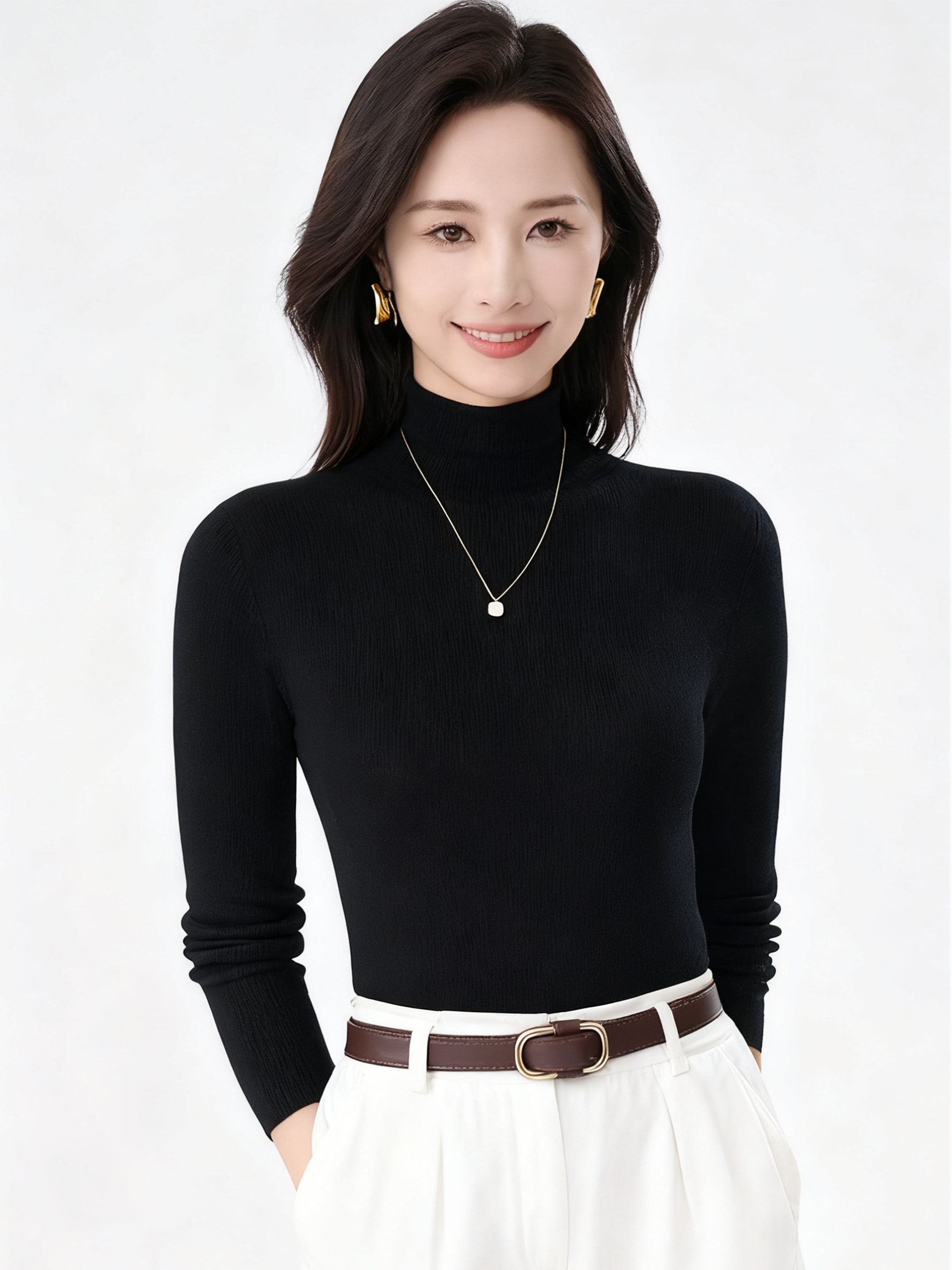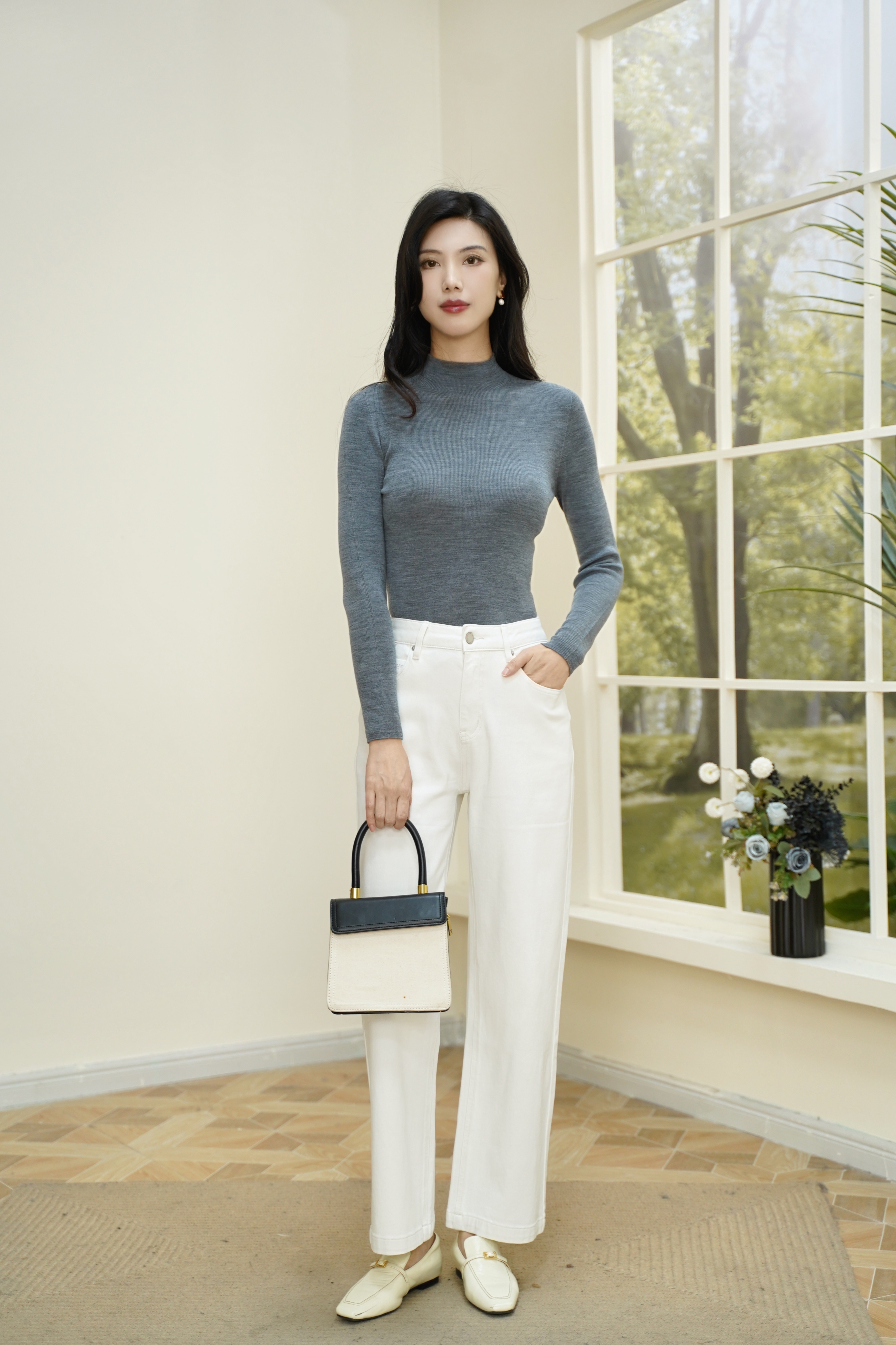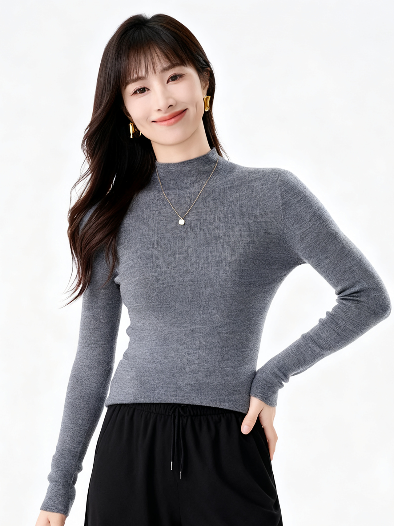 L1 臣禾【享瘦毛衫】100%精纺羊毛修身半高领打底衫套头针织衫 JZ253091175