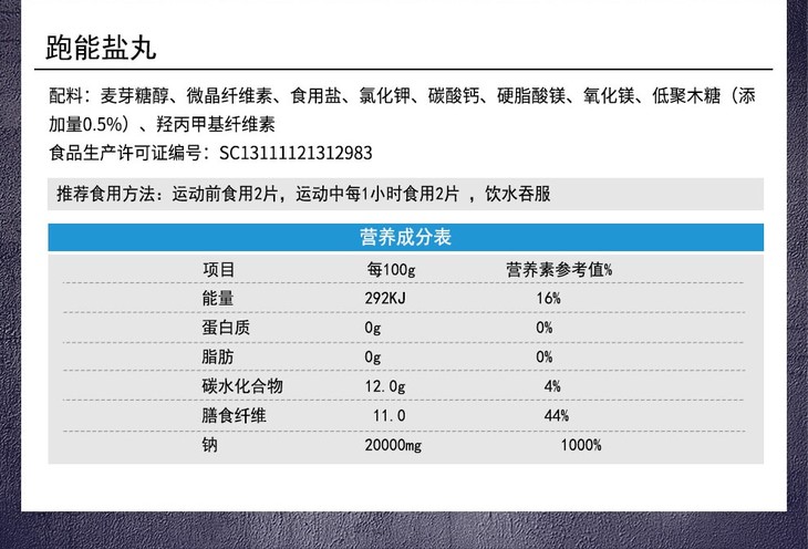 跑能专业版片剂盐丸/第3代升级配方/更大颗粒/更高含量/无防腐剂