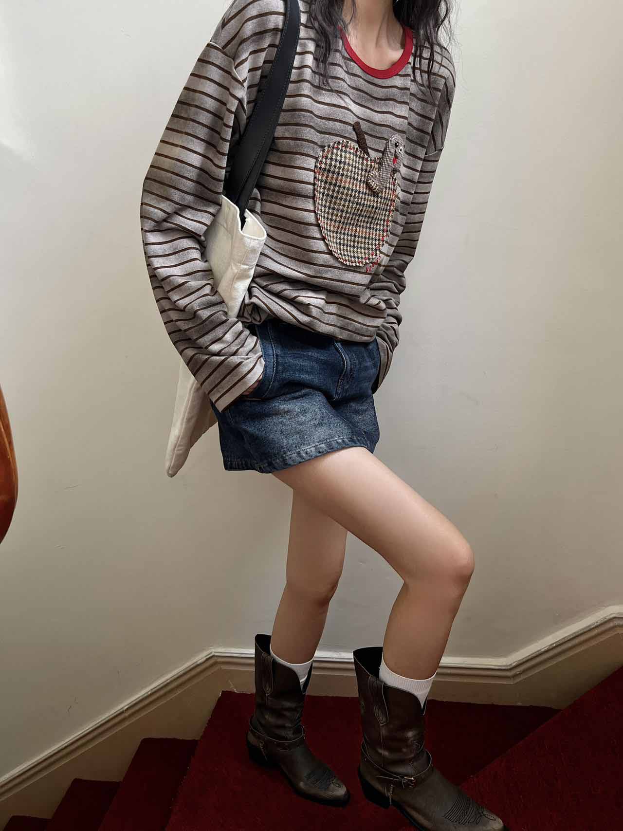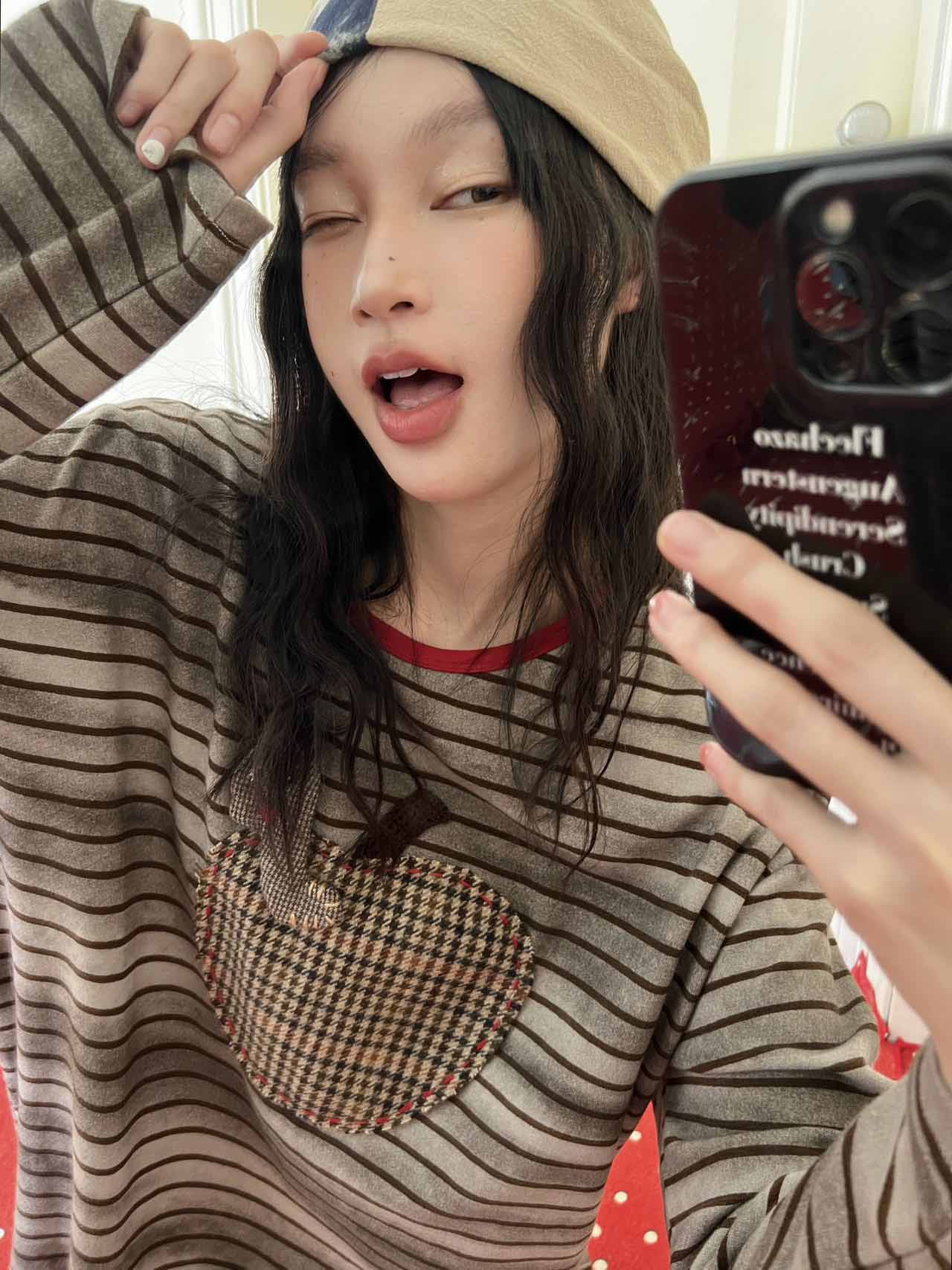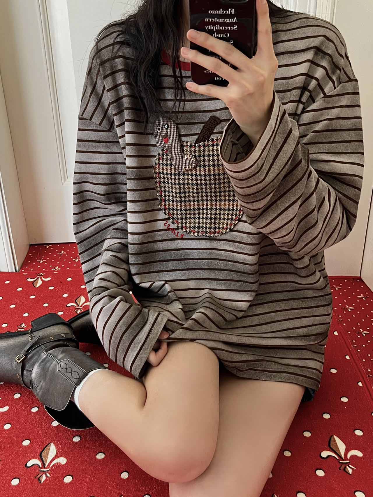 「美式复古趣味条纹长袖T」不费力de慵懒感