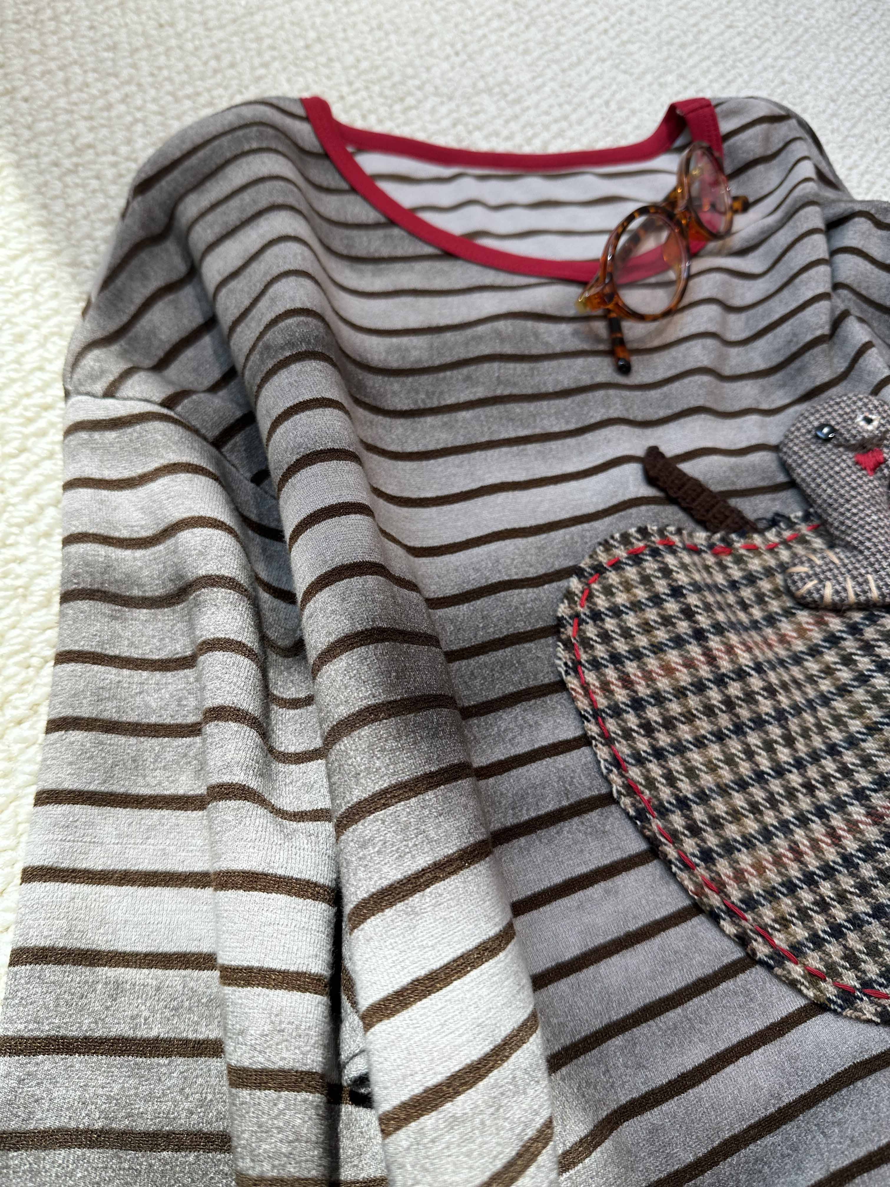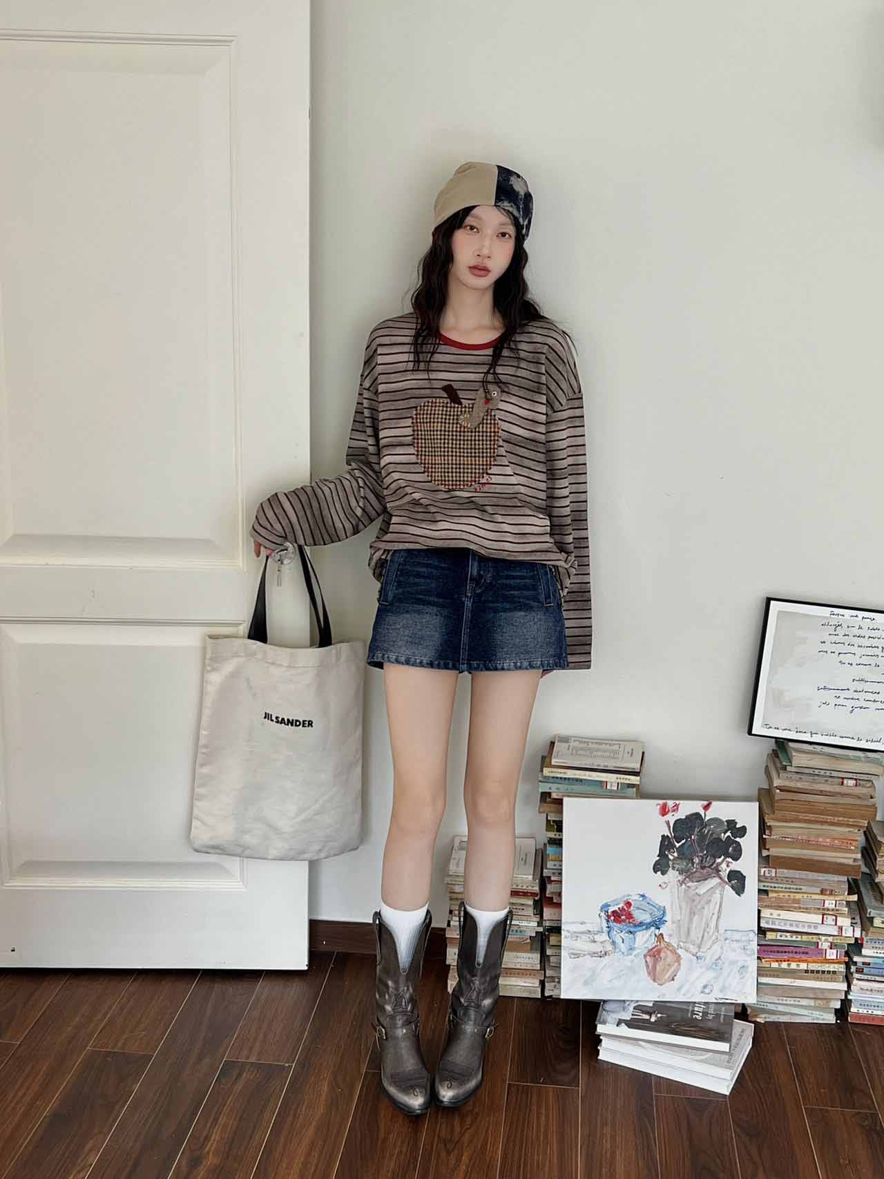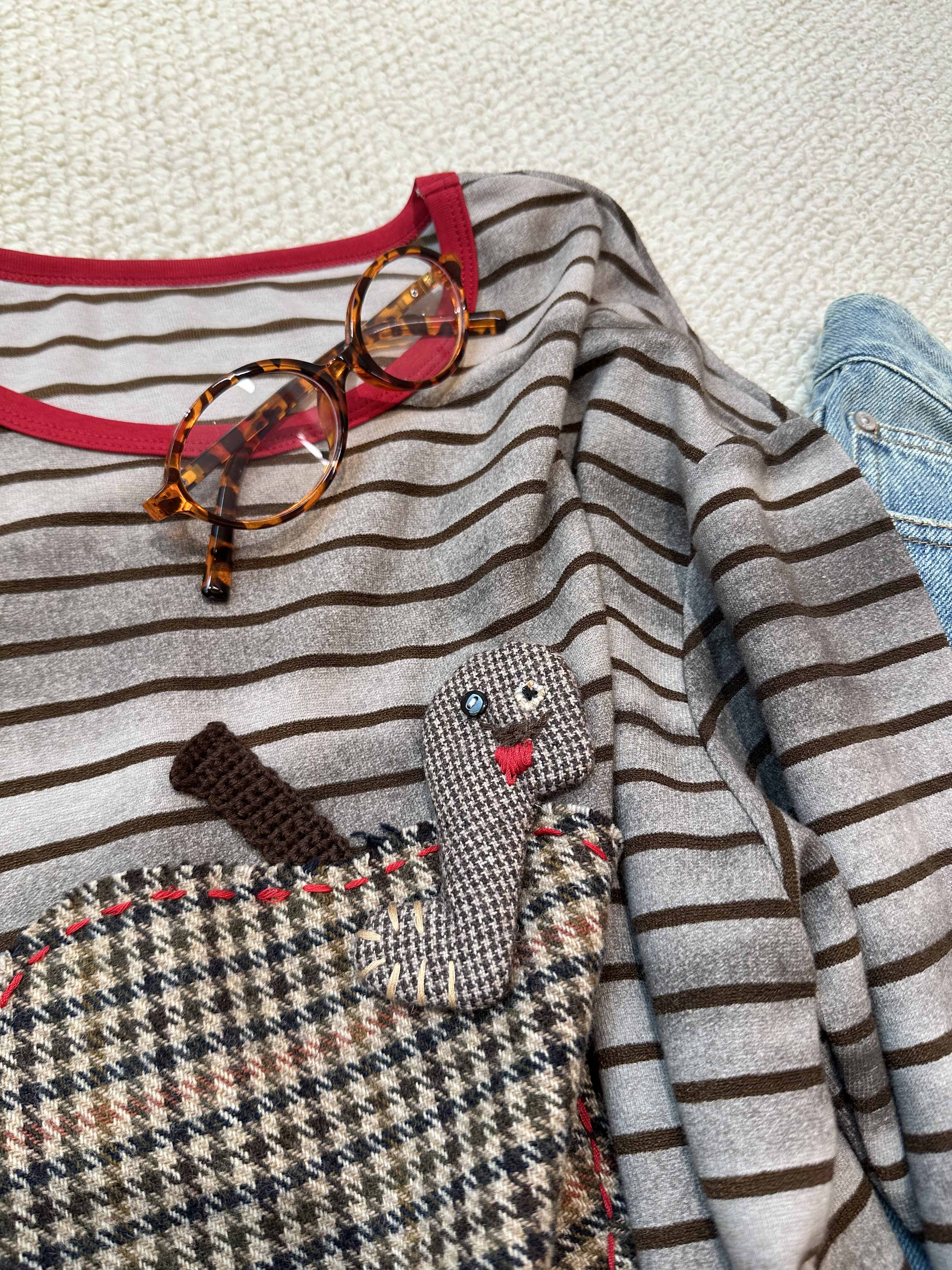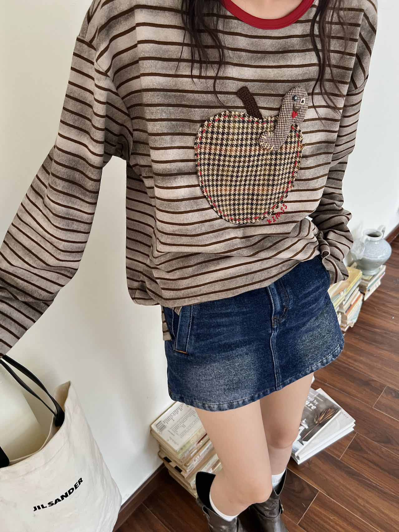 「美式复古趣味条纹长袖T」不费力de慵懒感