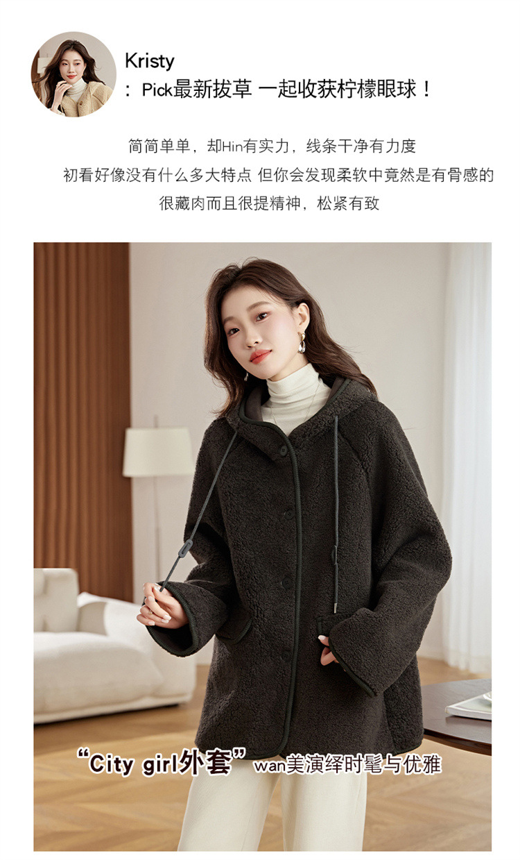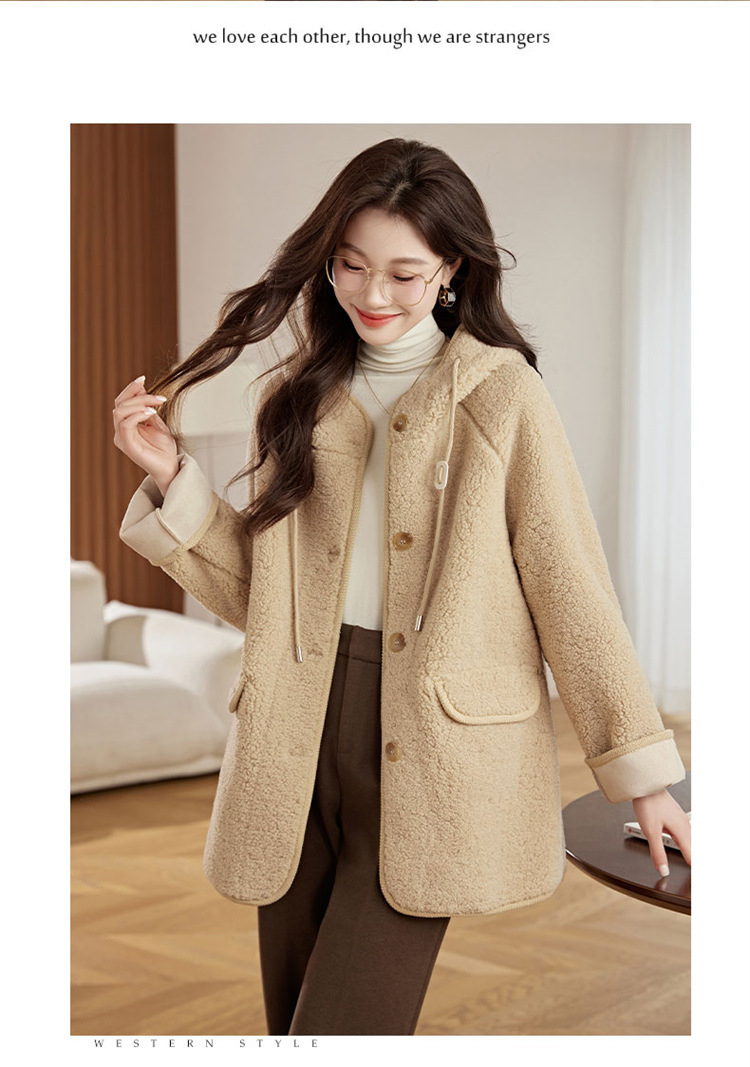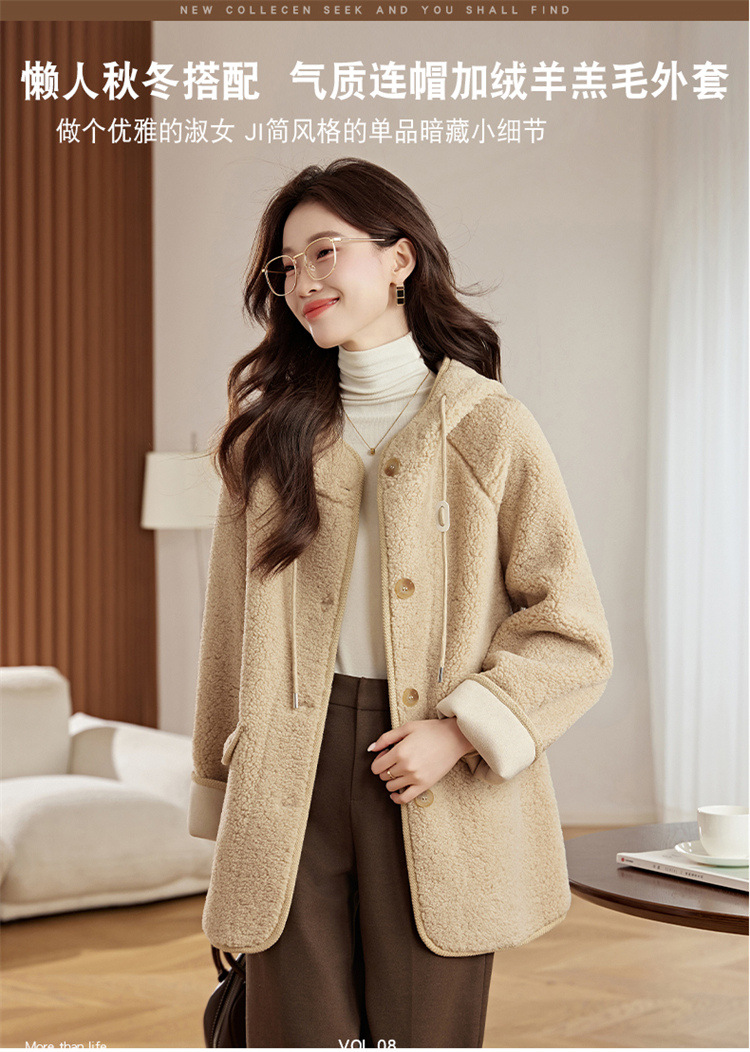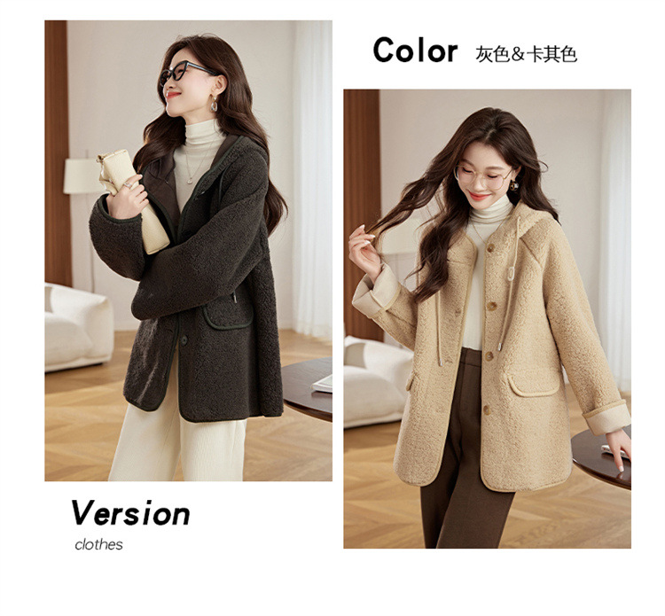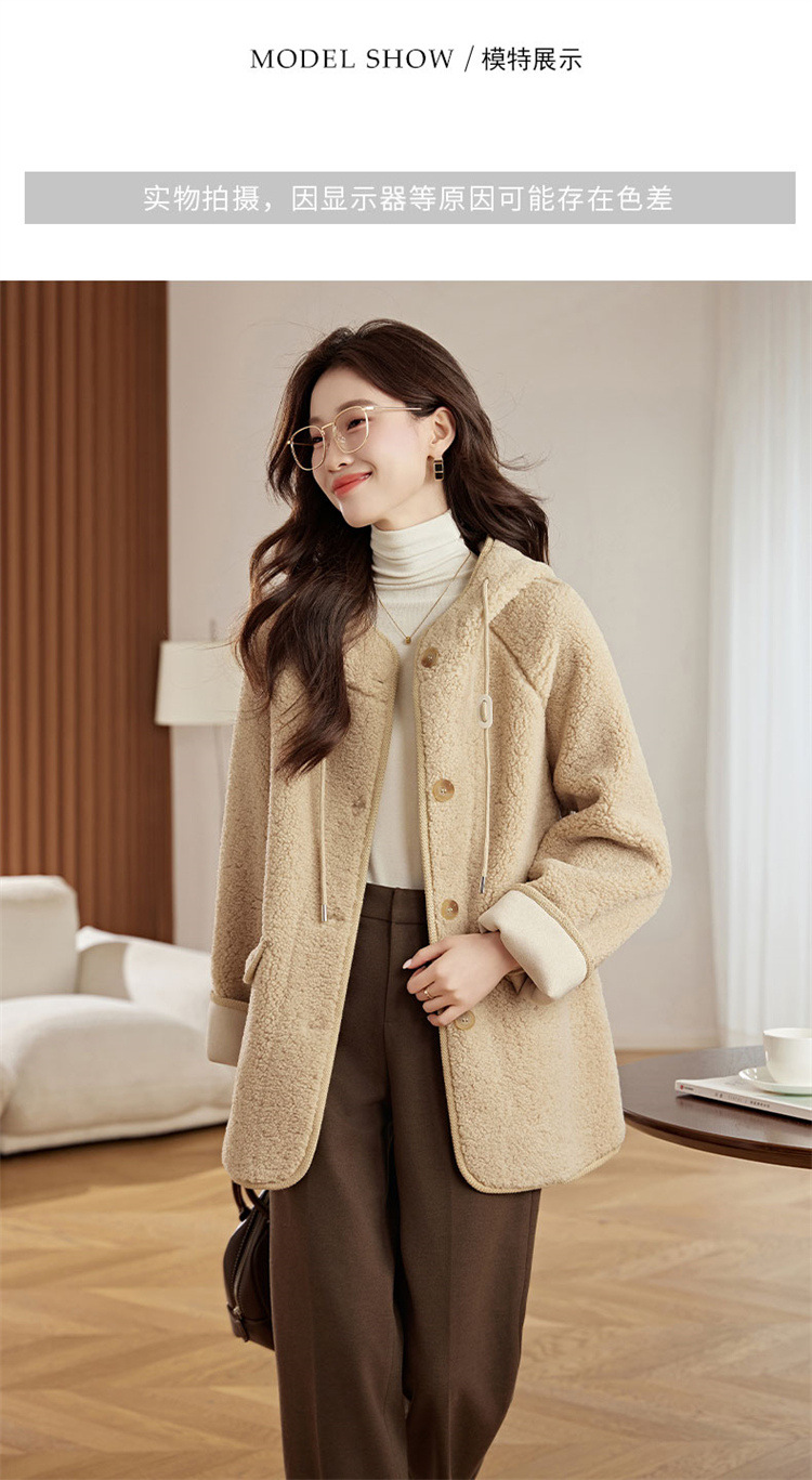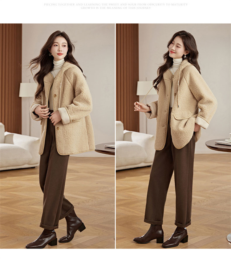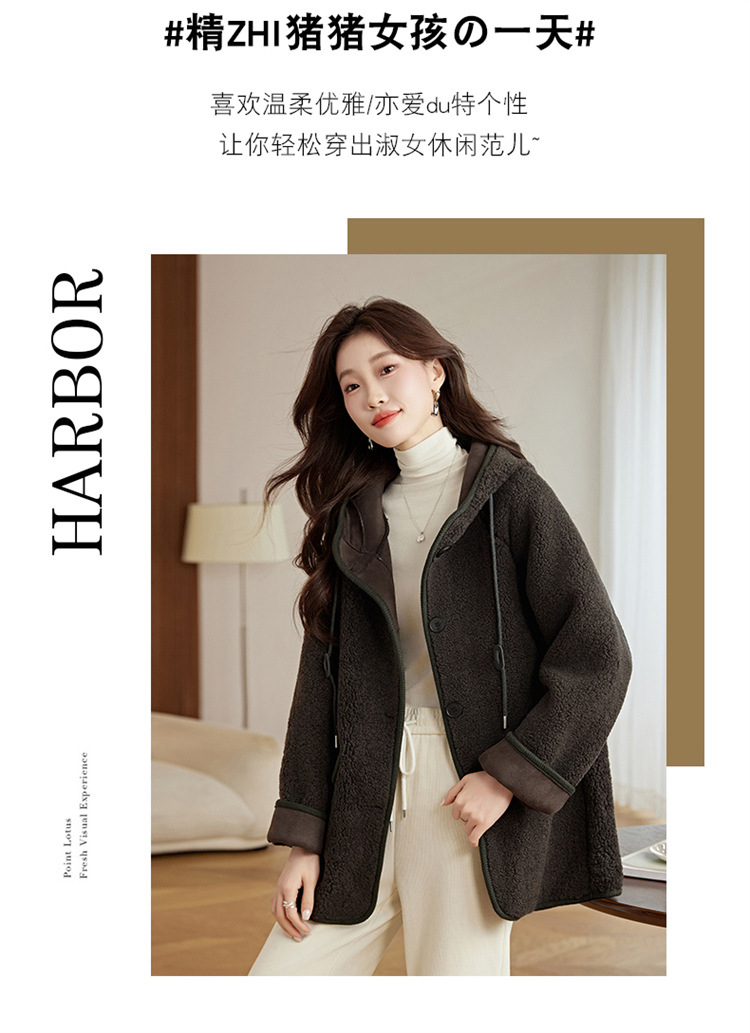 HR-LSLY2498新款!羊羔毛外套时尚休闲通勤大衣外套冬季新款妈妈洋气风衣