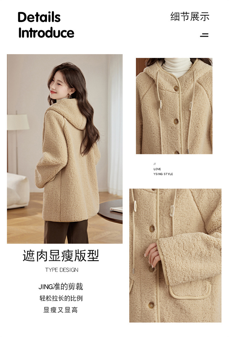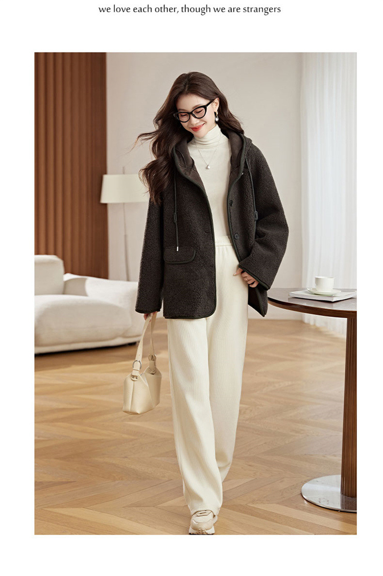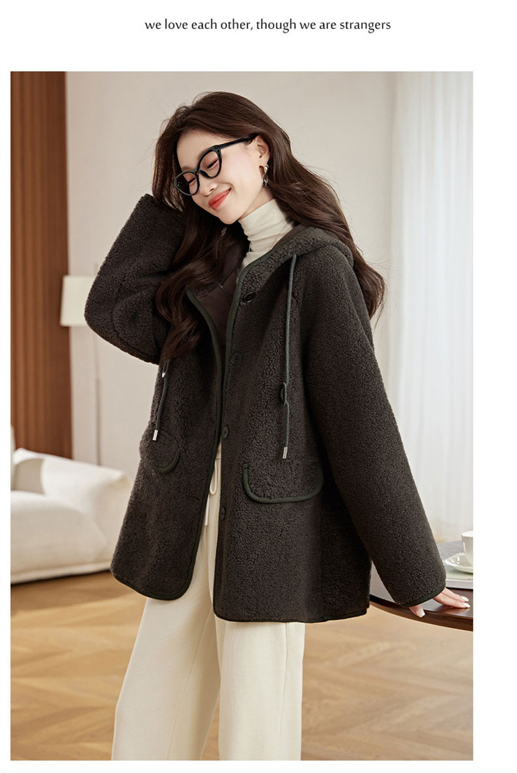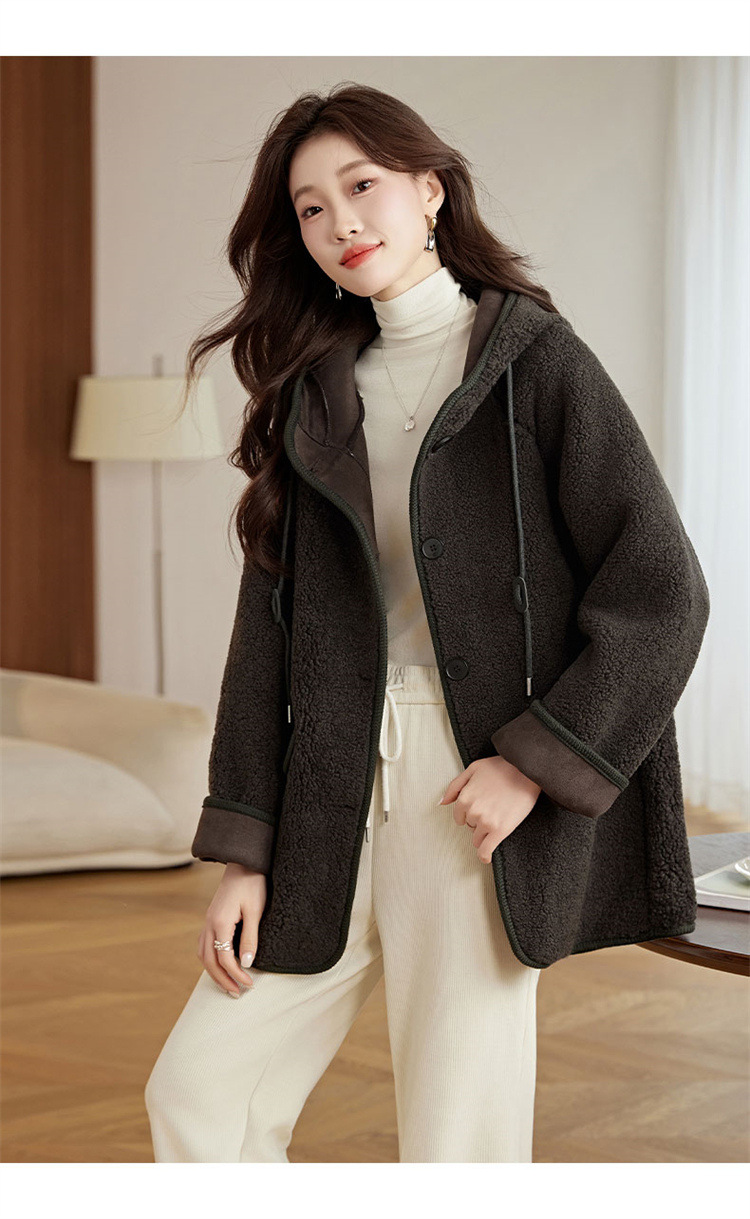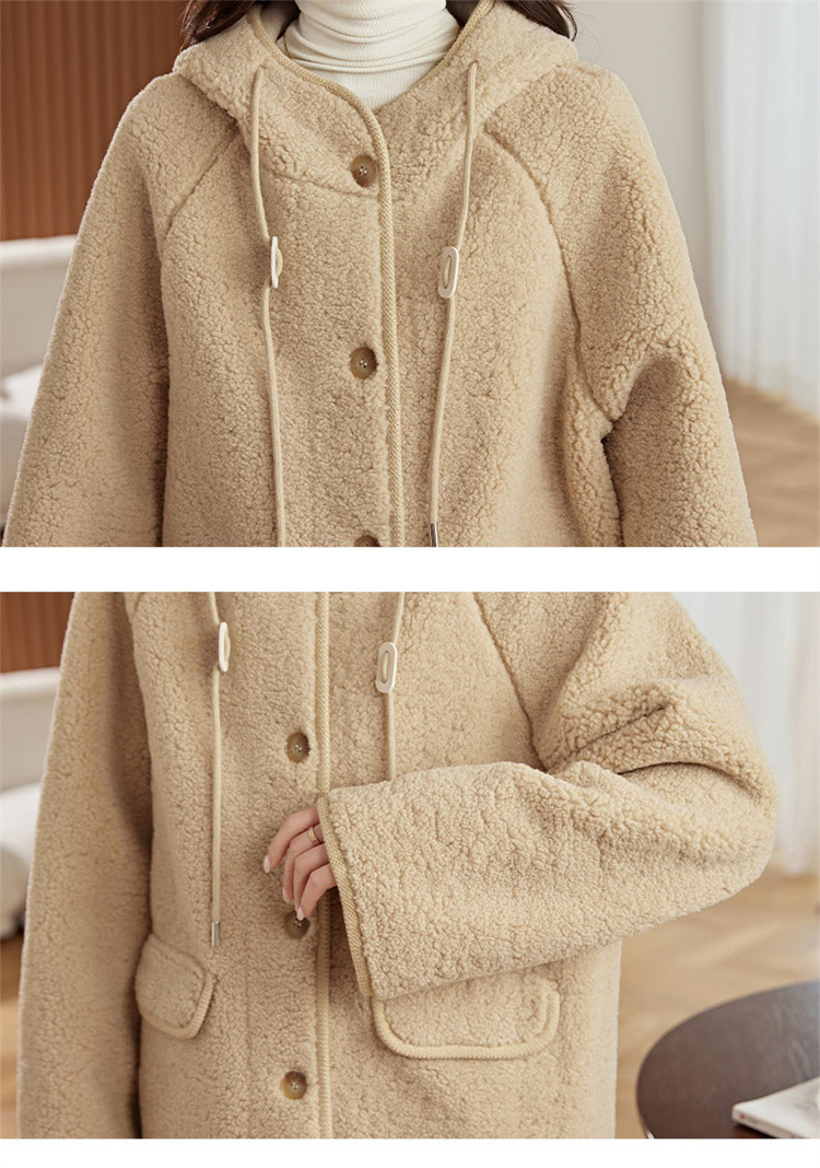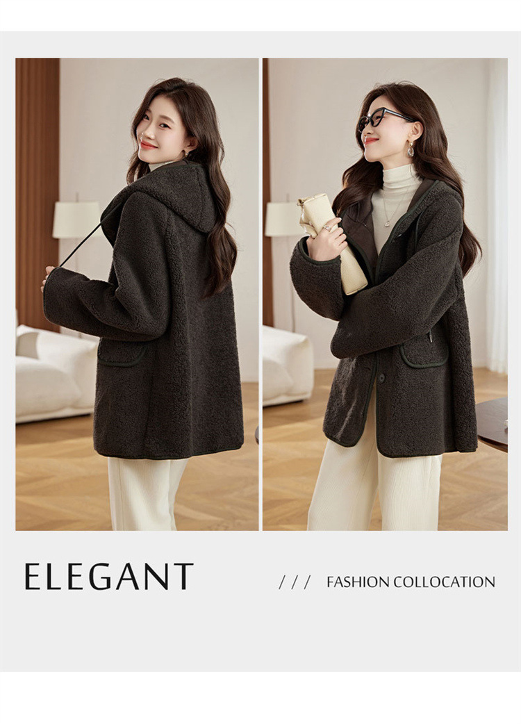 HR-LSLY2498新款!羊羔毛外套时尚休闲通勤大衣外套冬季新款妈妈洋气风衣