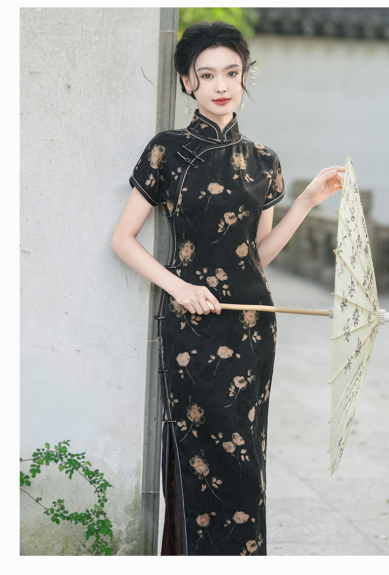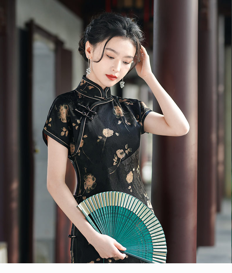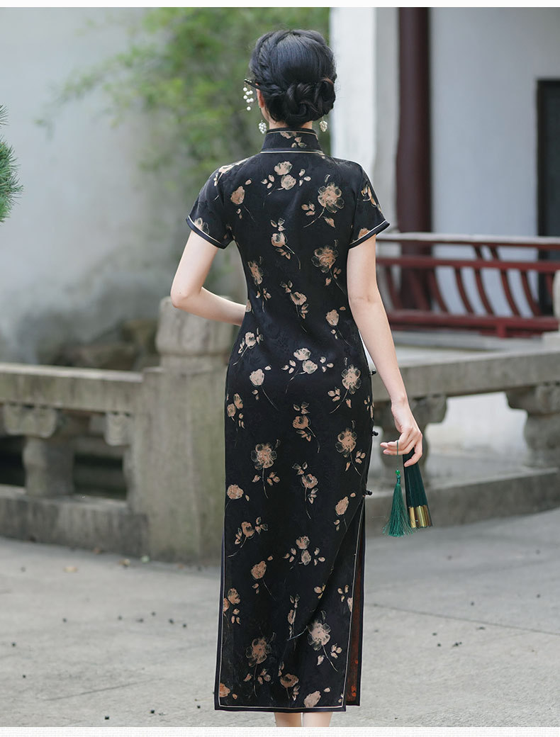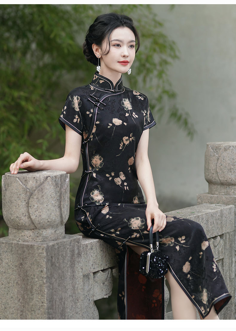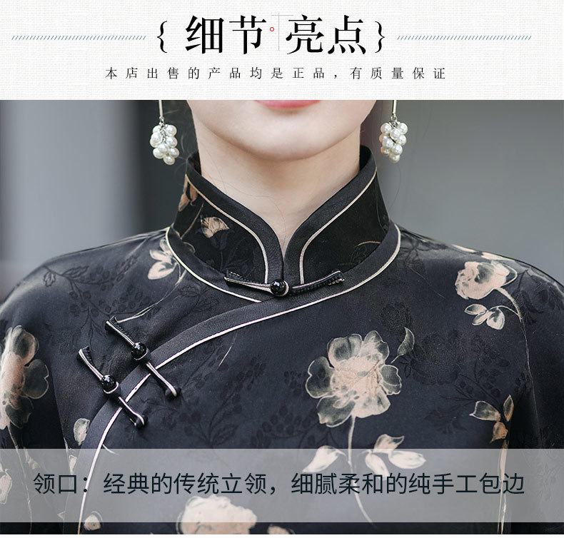 WX-春季新款100%真丝旗袍中式桑蚕丝连衣裙手工缝制送考宴席日常