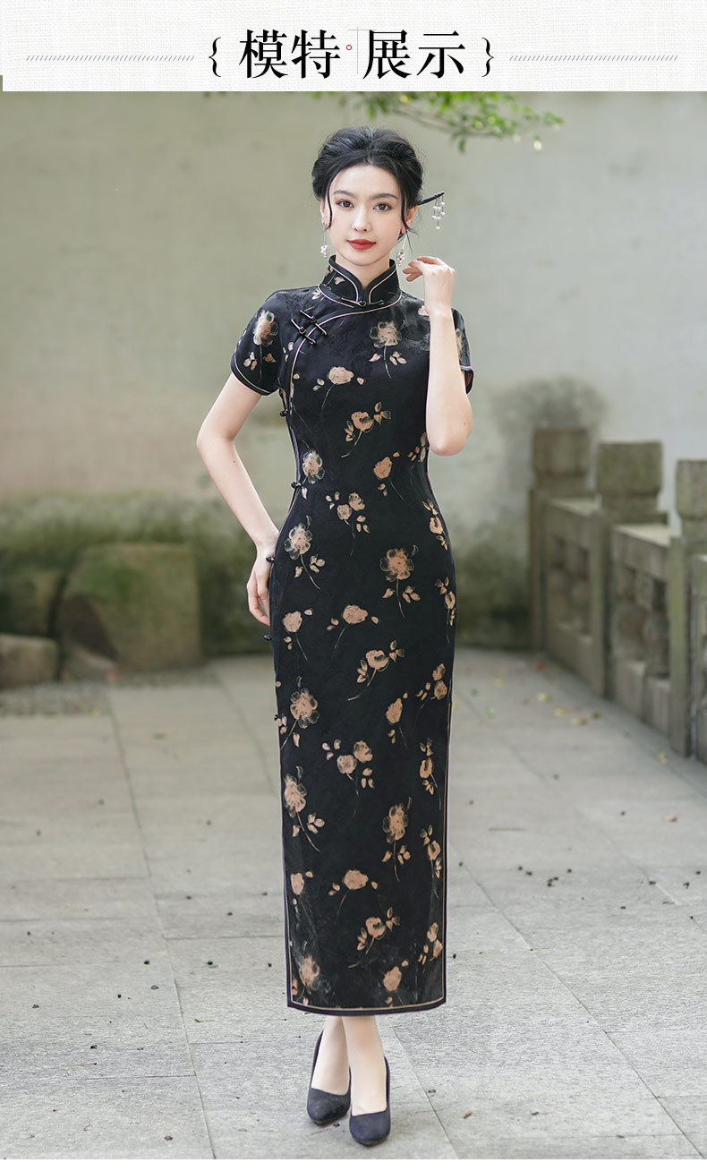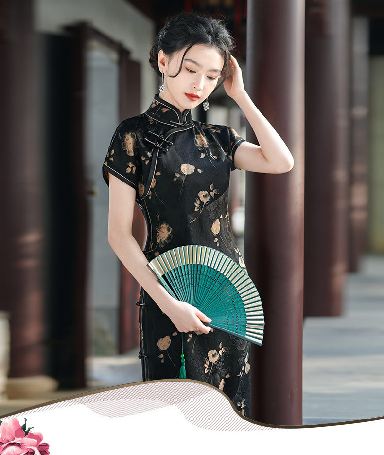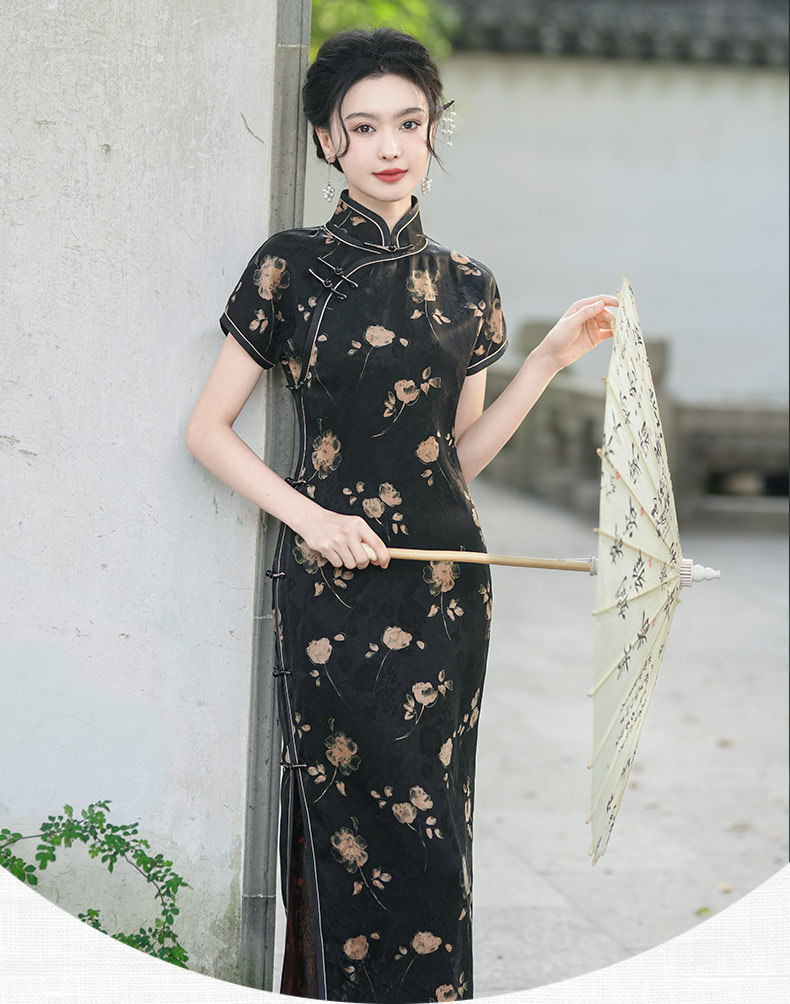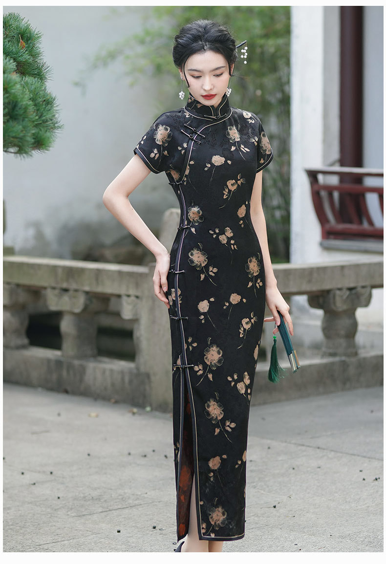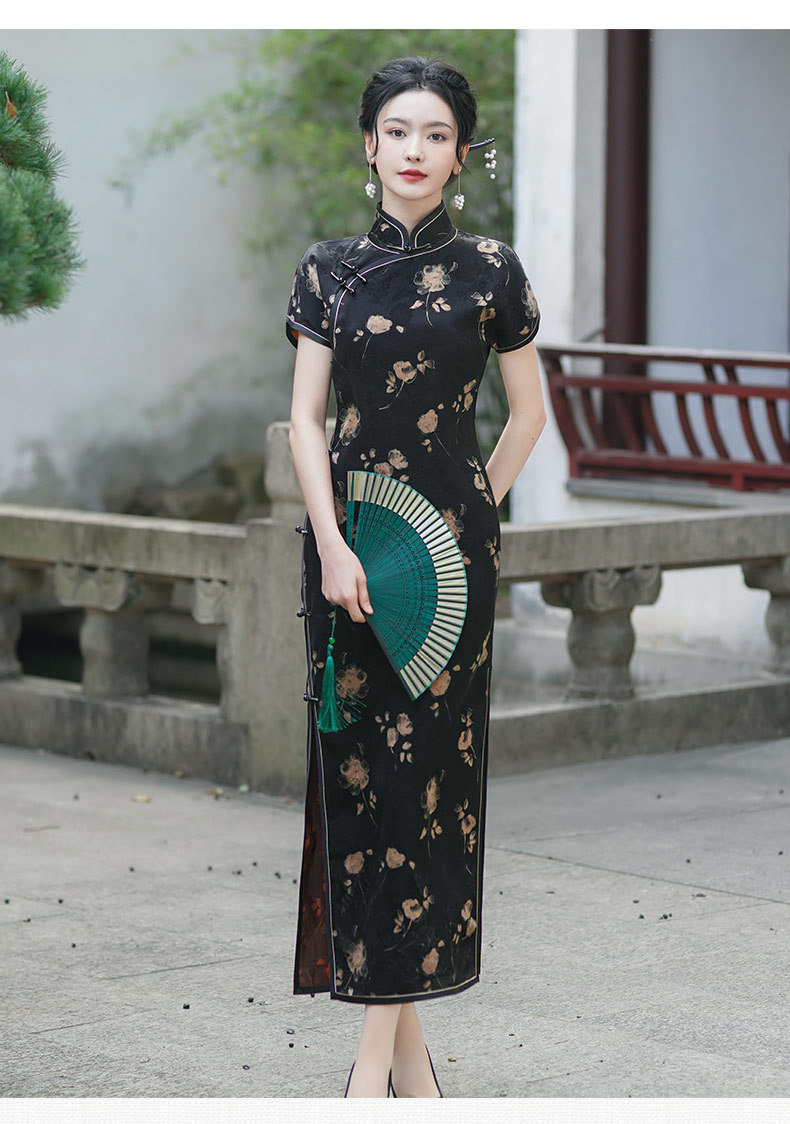 WX-春季新款100%真丝旗袍中式桑蚕丝连衣裙手工缝制送考宴席日常