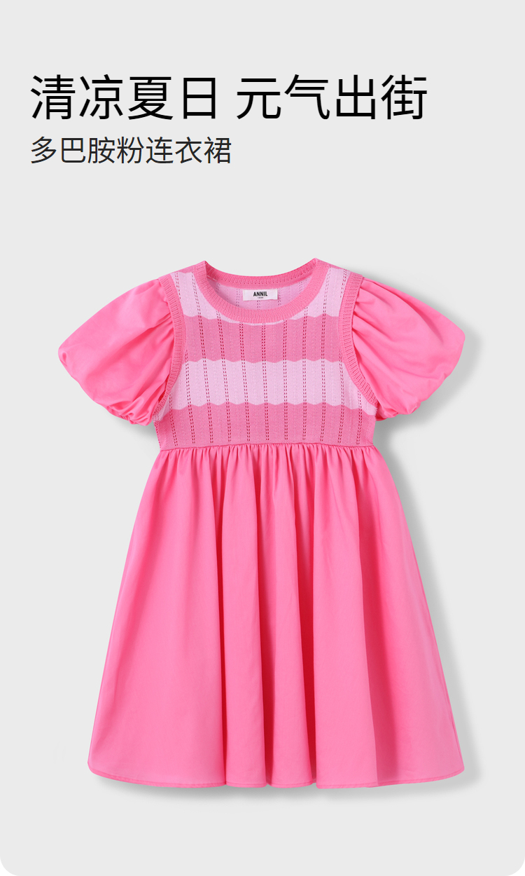 女童多巴胺粉连衣裙裙子夏季新款安奈儿童装实体店同款AG423770