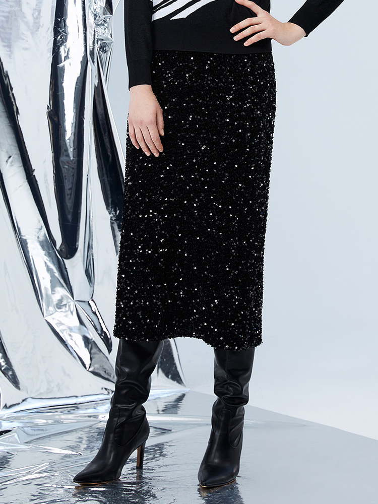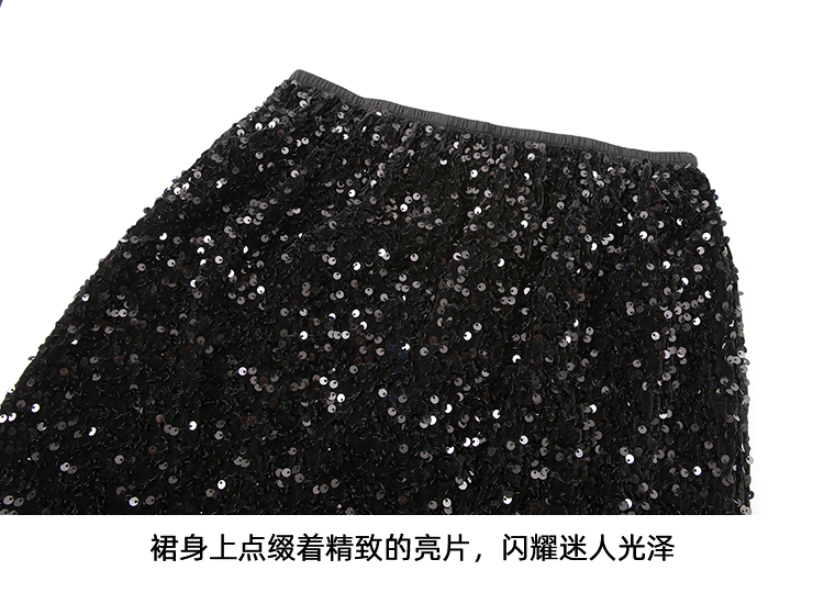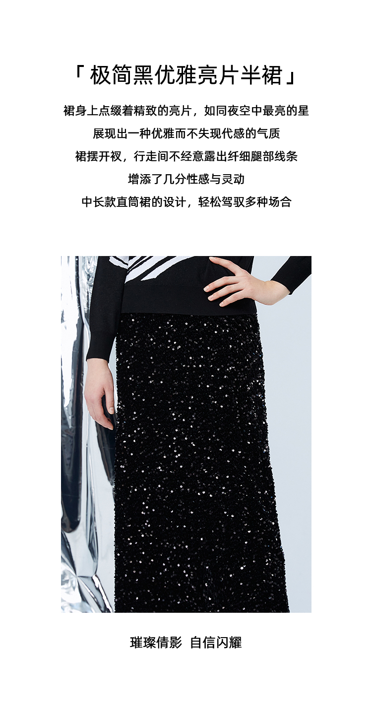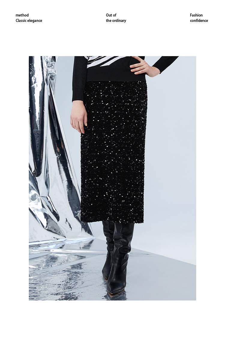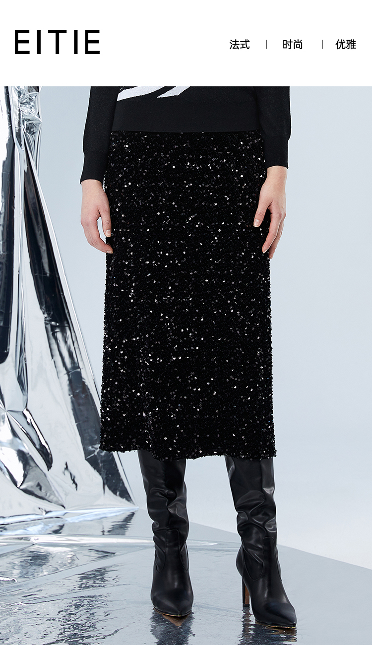 EITIE爱特爱冬季新款刺绣亮片显瘦高腰直筒裙半身裙7606302