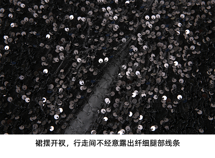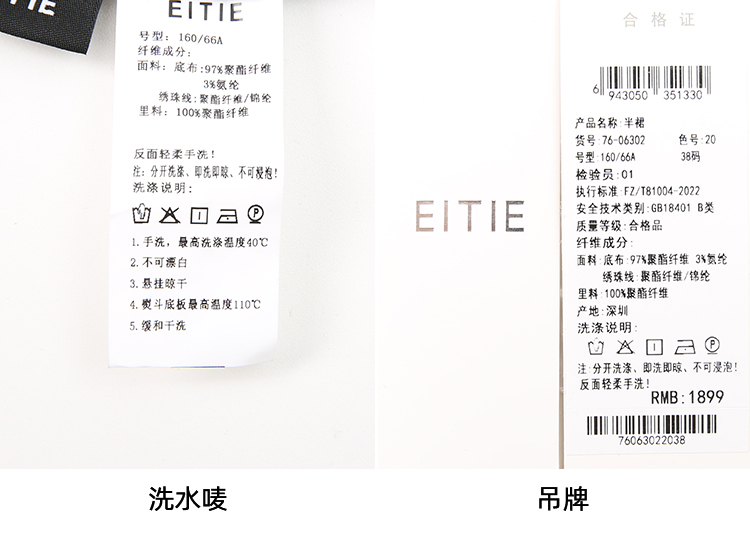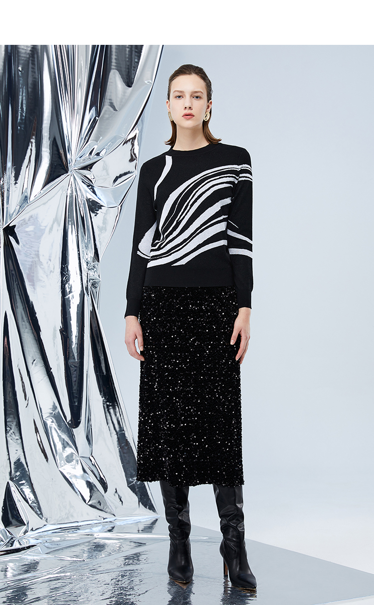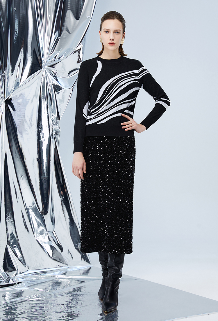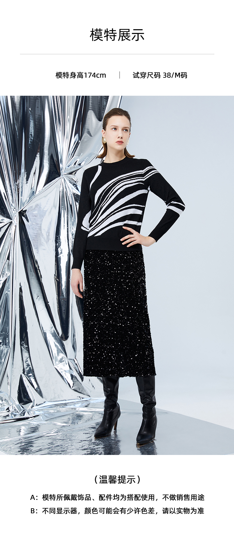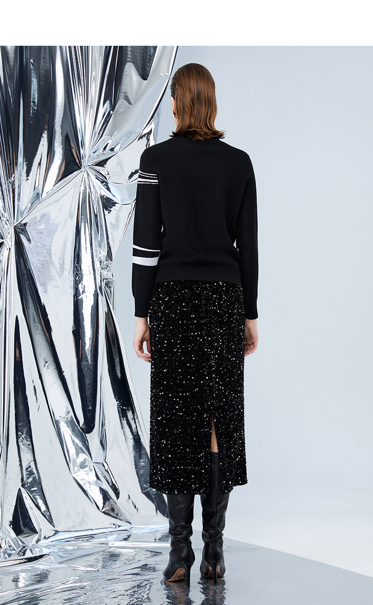 EITIE爱特爱冬季新款刺绣亮片显瘦高腰直筒裙半身裙7606302