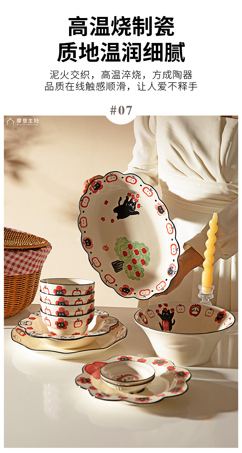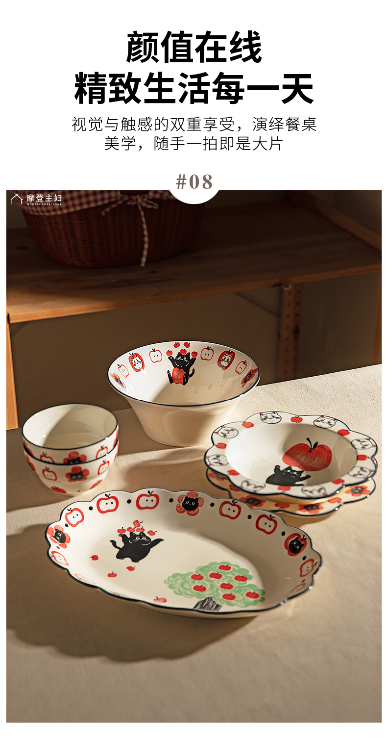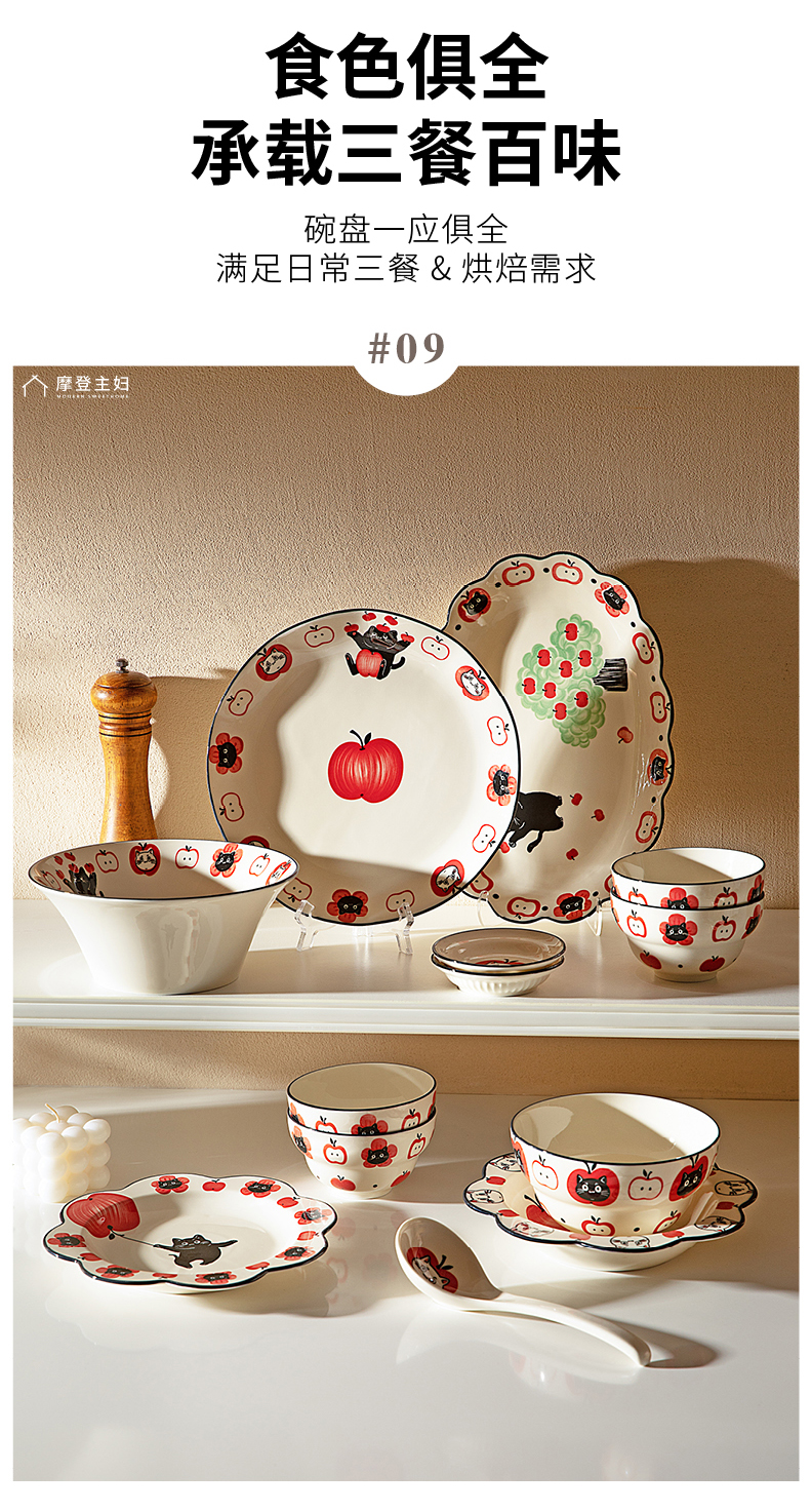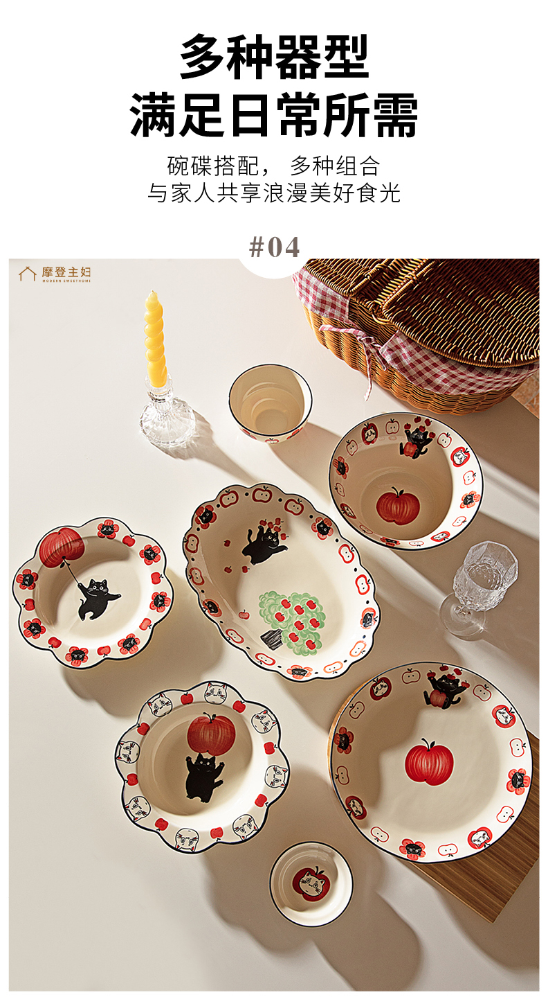 摩登主妇陶瓷碗可爱餐具碗具家用2024新款高颜值盘子儿童碗早餐盘