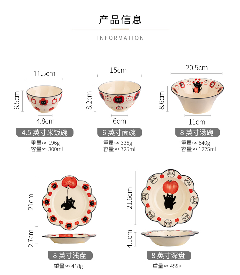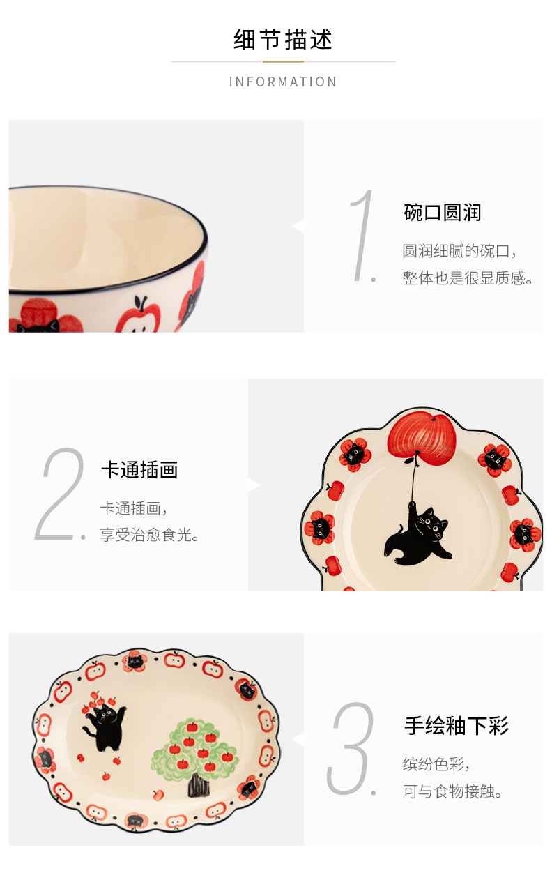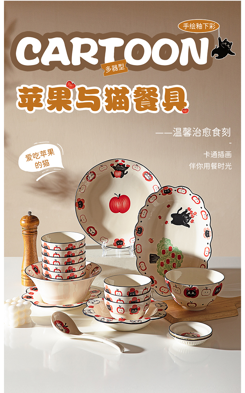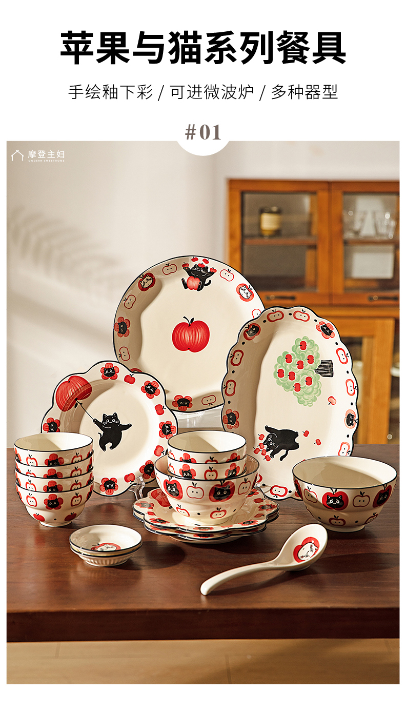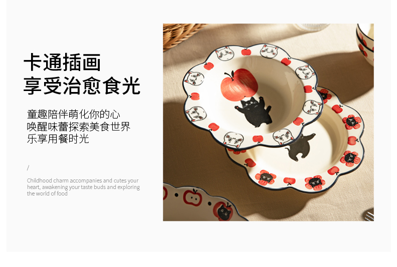 摩登主妇陶瓷碗可爱餐具碗具家用2024新款高颜值盘子儿童碗早餐盘