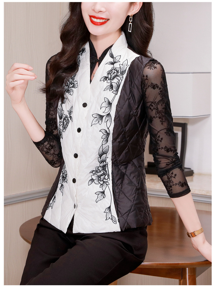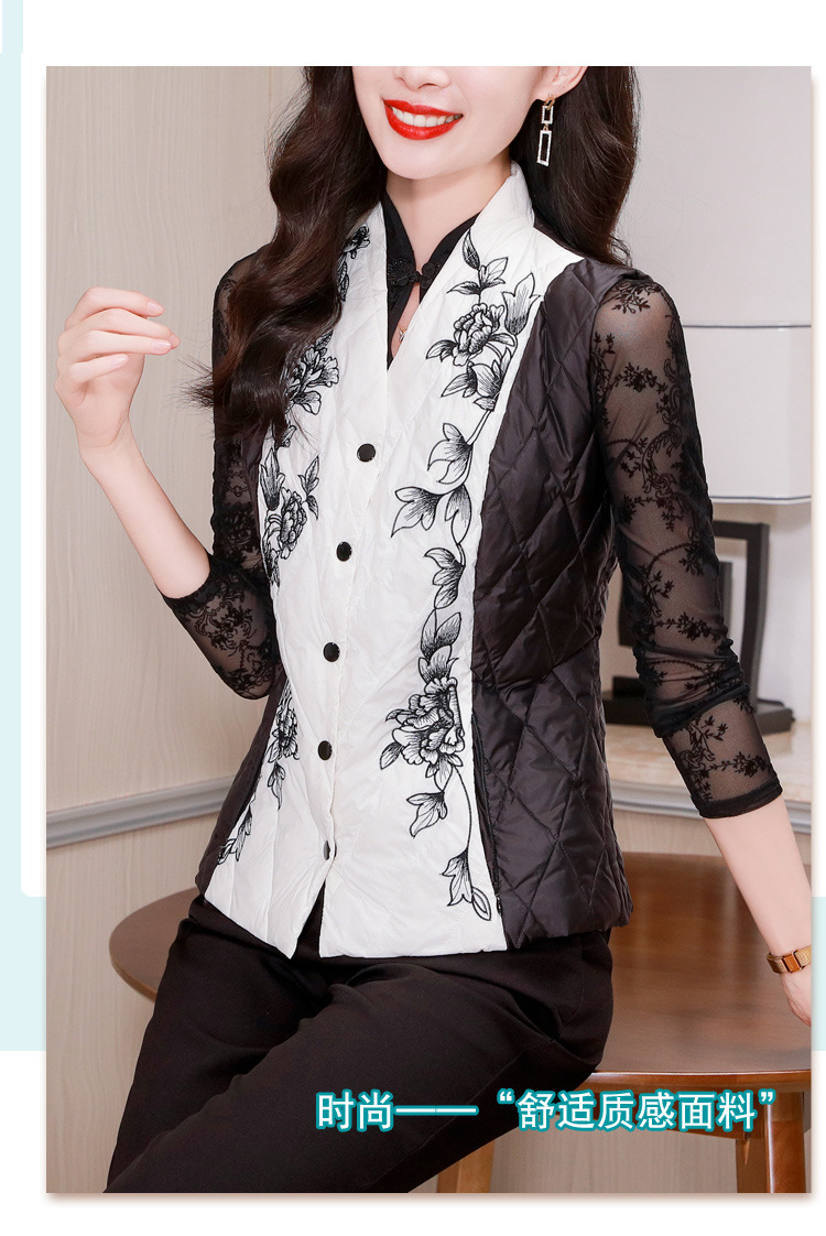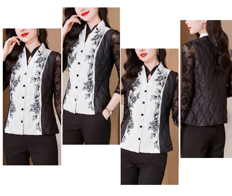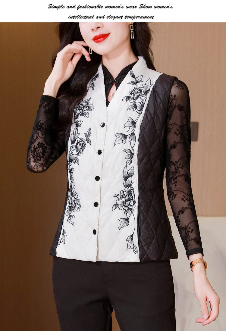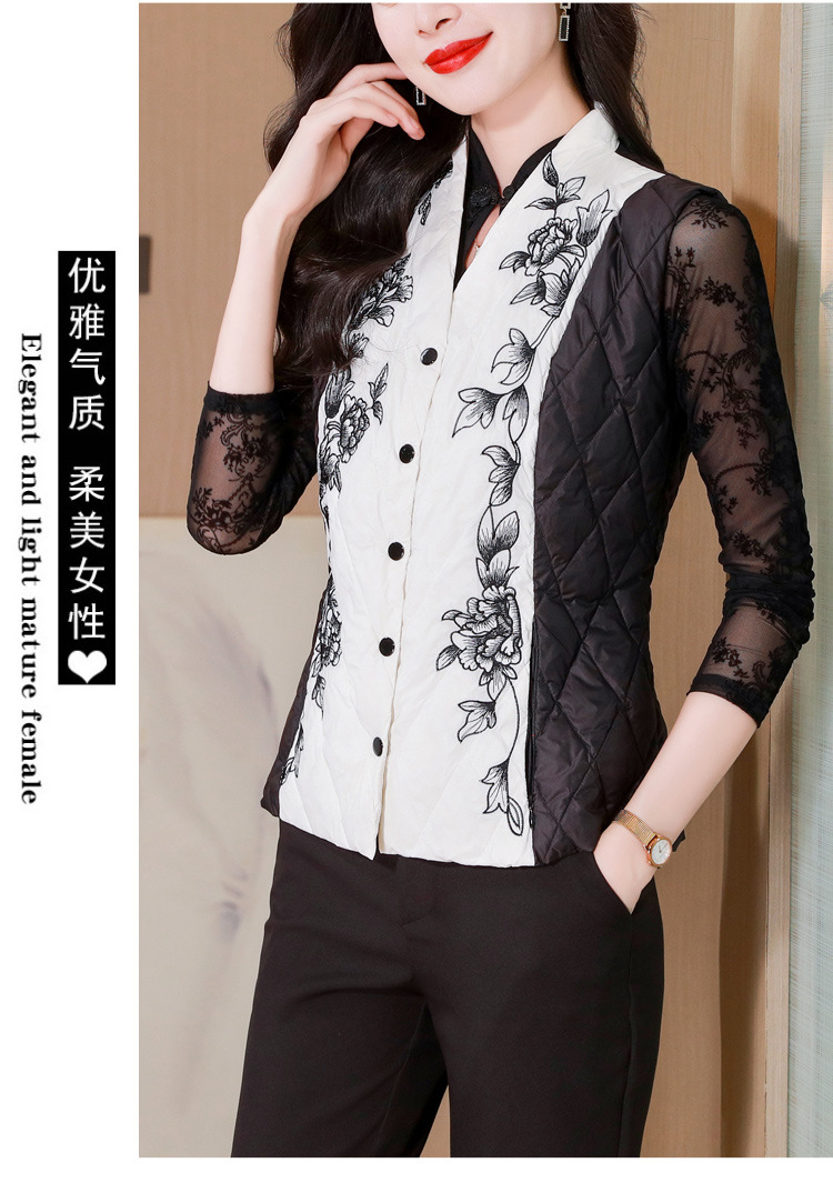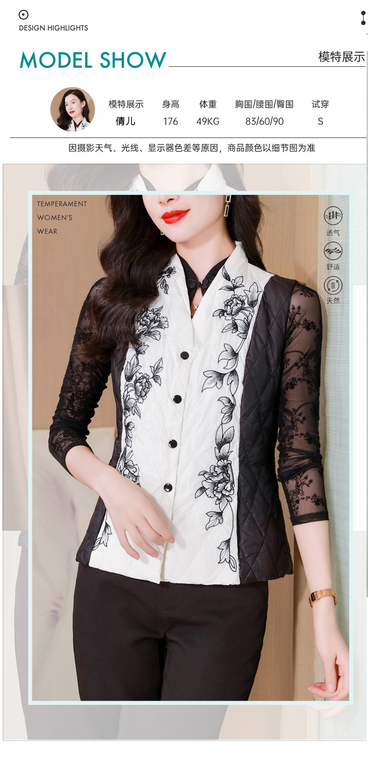 雀说刺绣羽绒棉服马甲外套女修身外穿收腰羽绒棉衣背心AL1951