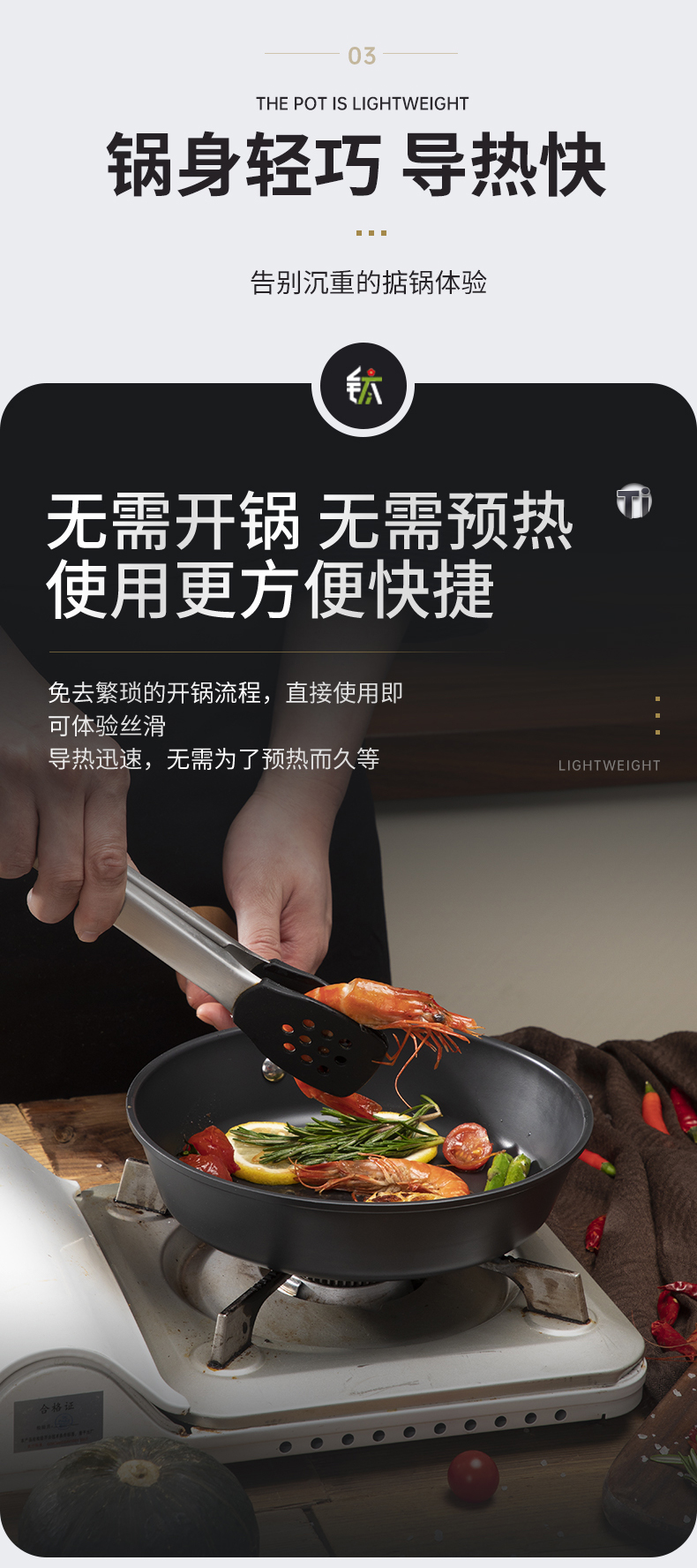 神田 云朵锅系列钛合金家用不粘炒锅30cm 玻璃盖