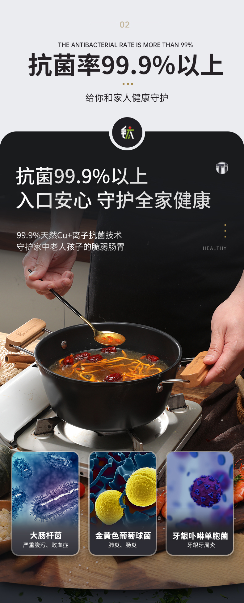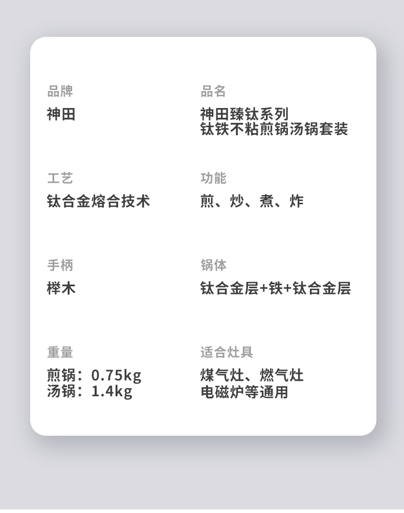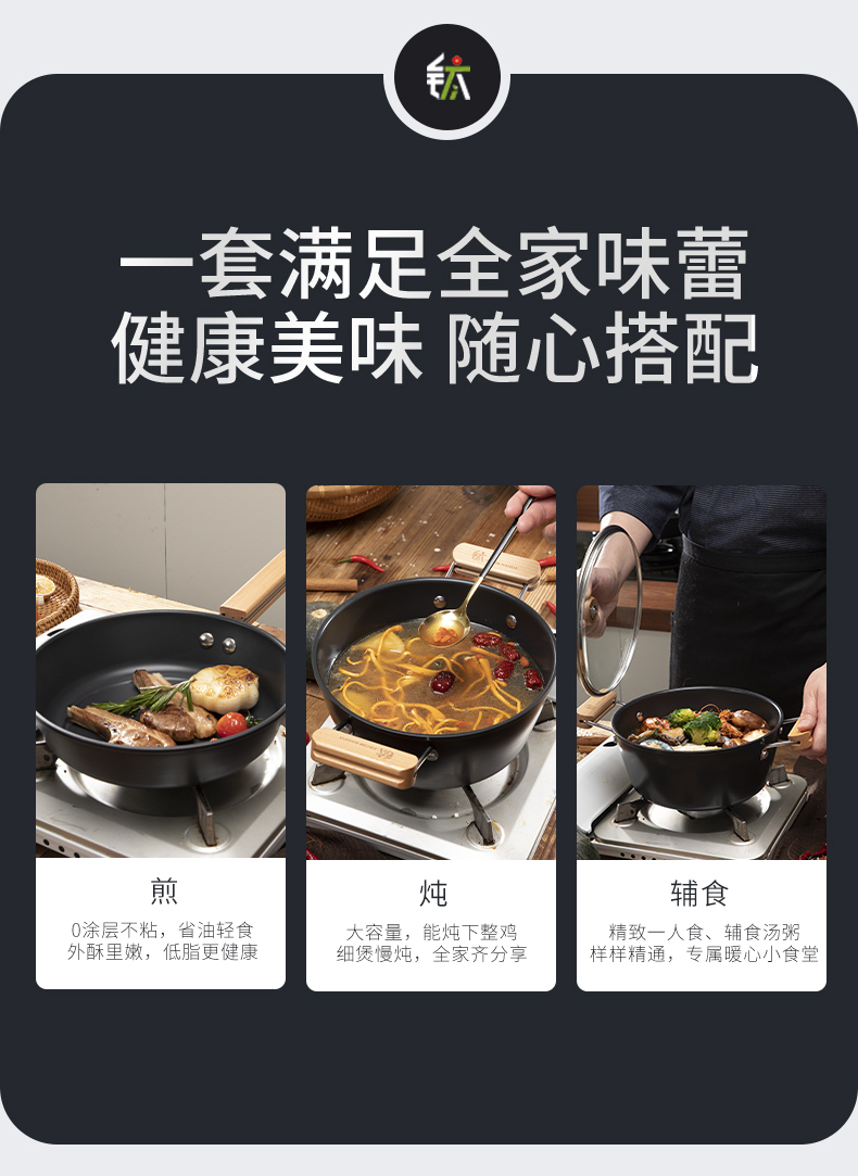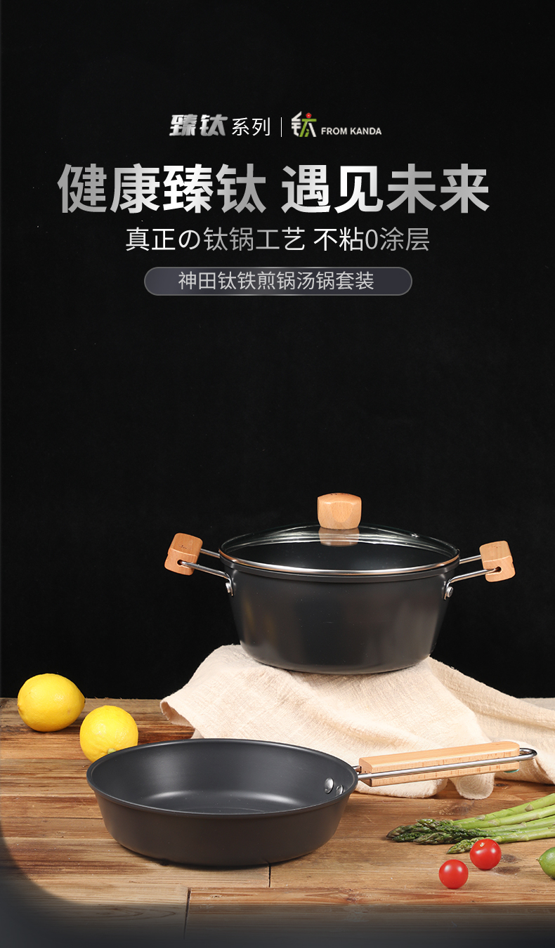 神田钛铁汤锅煎锅套装组合 汤锅煎锅22cm