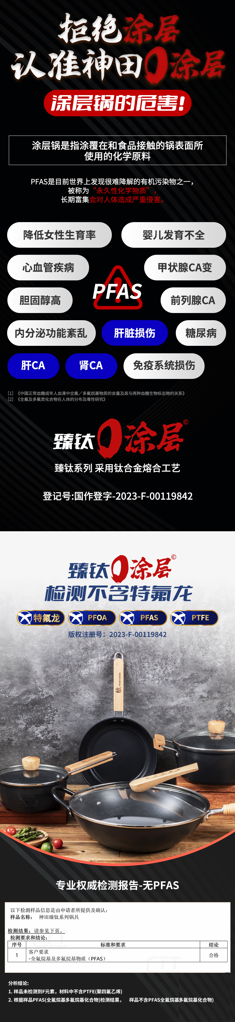 神田(KANDA)铁神云朵款多功能0涂层不粘炒锅32cm云峰白& 富贵红(赠蒸盘+清洁膏/乳)
