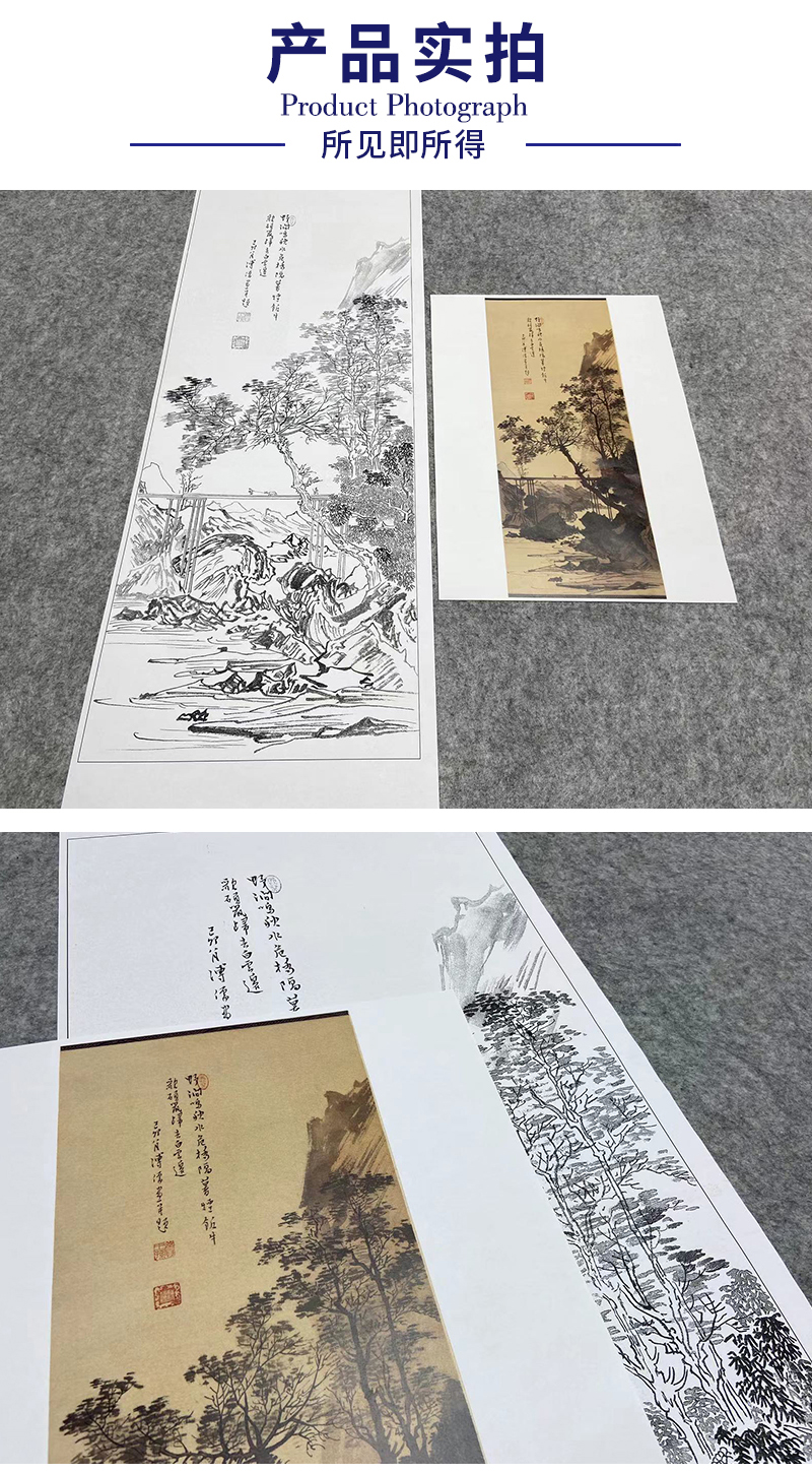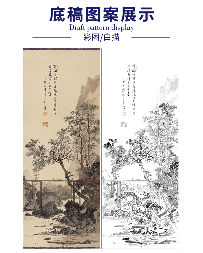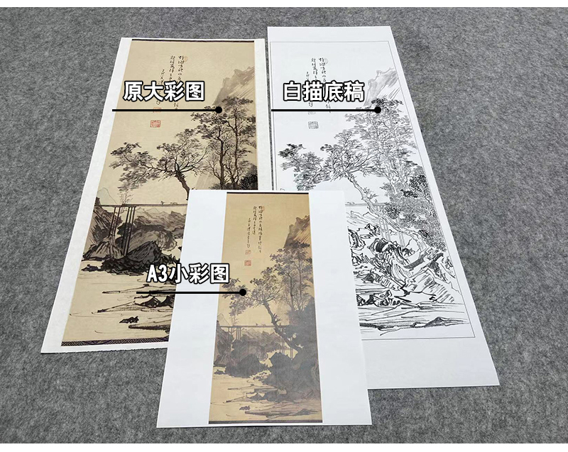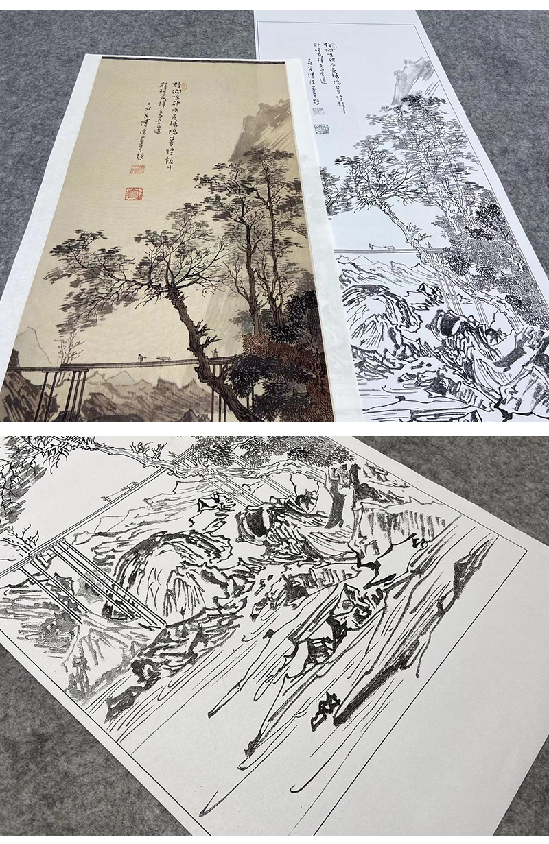傅儒工笔画白描底稿《暮烟归来图 》山水底稿FS21