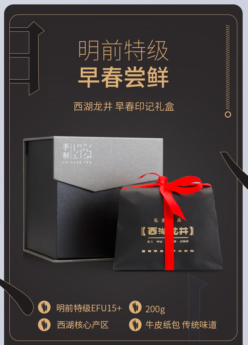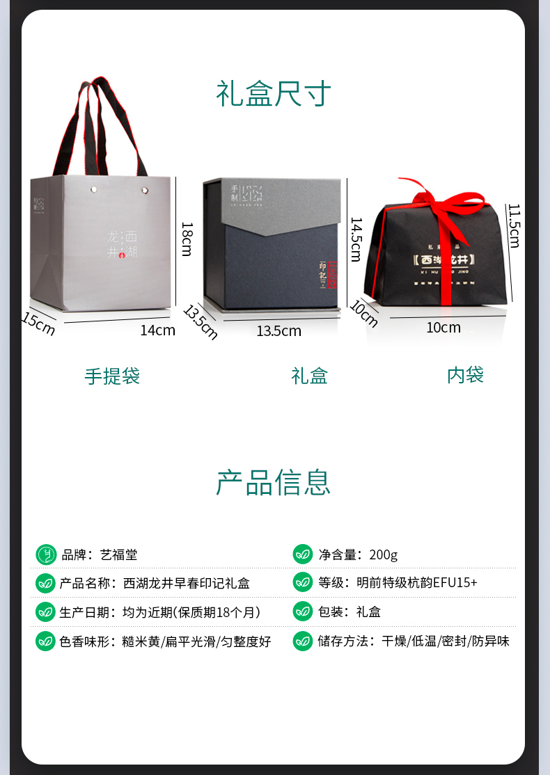 【品牌直发】【新茶上市】艺福堂 明前特级西湖龙井 早春印记礼盒 杭韵EFU15+ 2023新茶 200g/盒