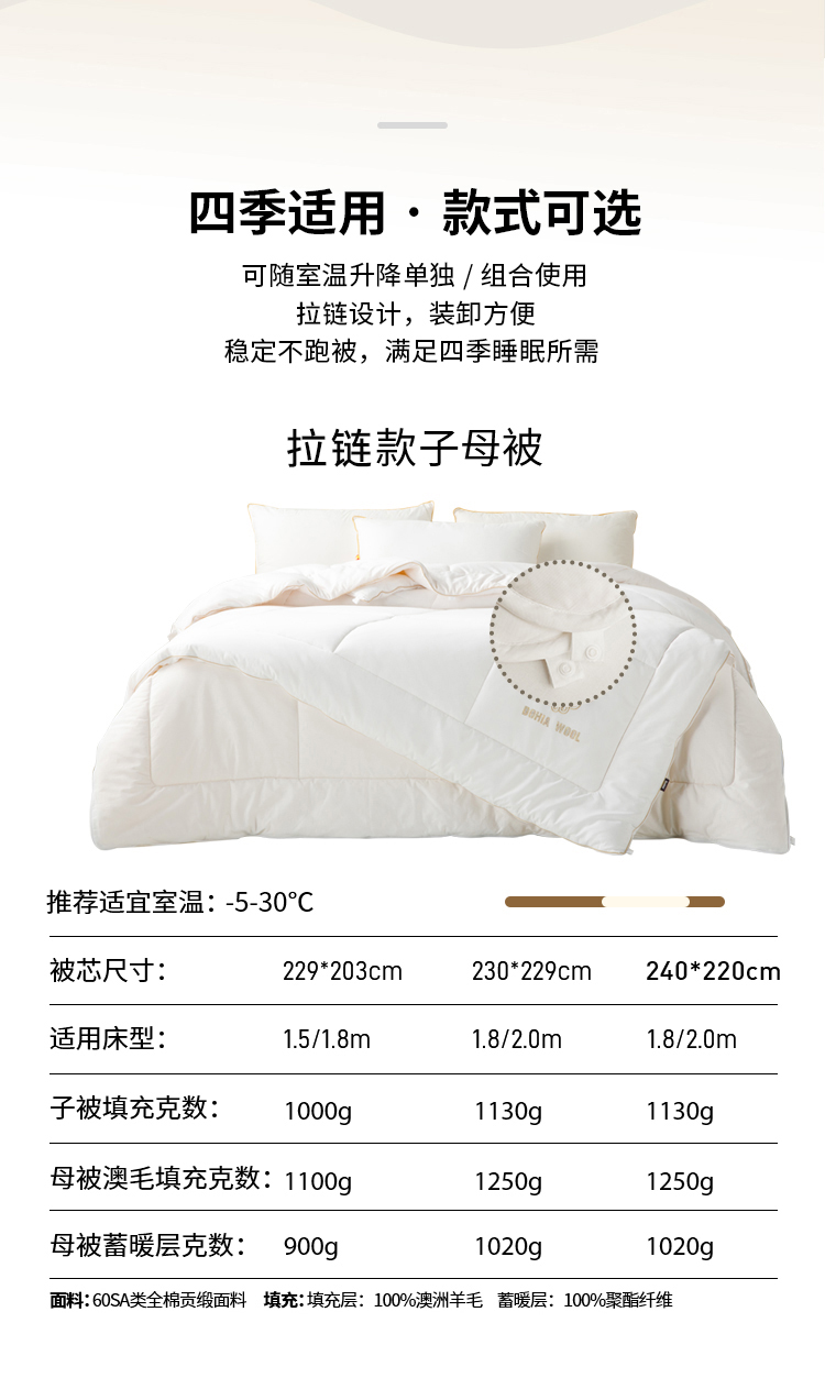 多喜爱 馨柔澳毛蓄热暖肤子母被cs