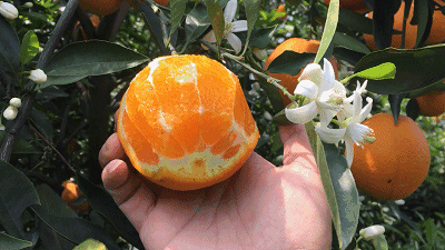 独特的气候使得这里的伦晚橙子可以越过冬天,成熟的果,绽放的花同处一树,有着奇特的花果同枝的现象。也使得孙大哥家一年四季都有橙子:春有伦晚,夏有夏橙,秋有爱媛九月红,冬有长红和中华红,一年四季吃上新鲜脐橙不是梦~
